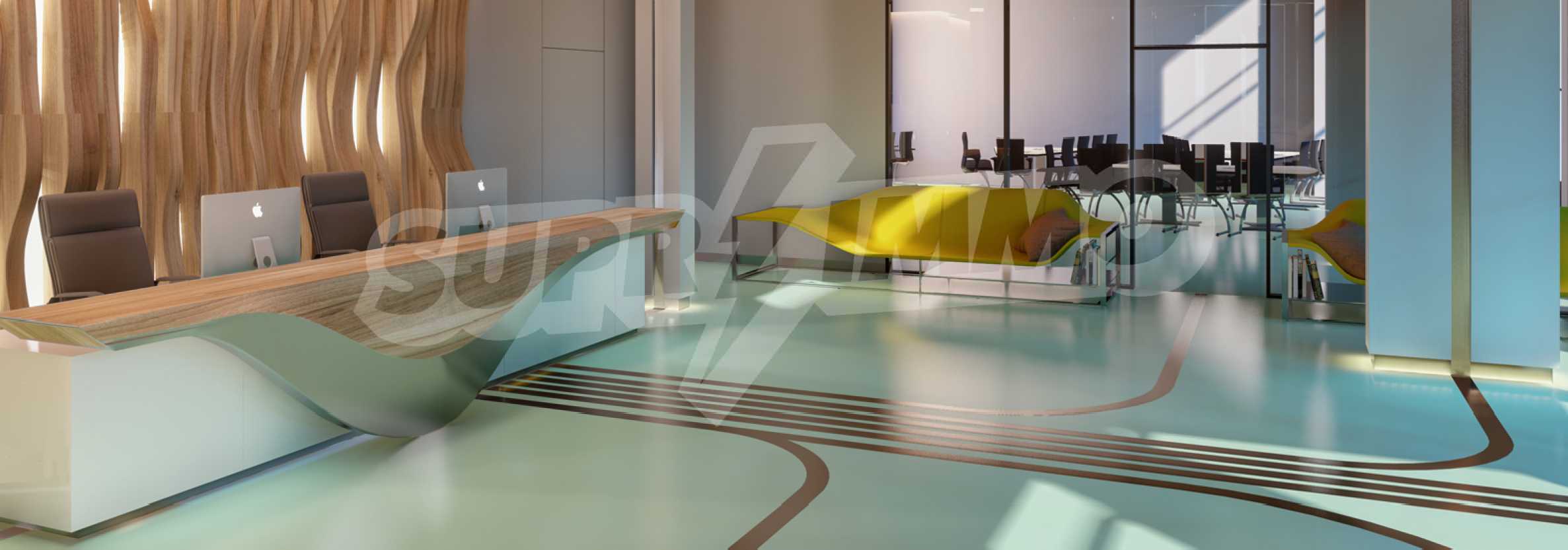 There are 4 types of office floors, each of which has 3 separate office units. The layout of the offices is flexible and allows unification and division of the premises by means of interior movable partitions. The sizing of the working premises is approximately 5 m2 / workplace. Each office has private bathrooms, a server room, a meeting room and a kitchen office.
