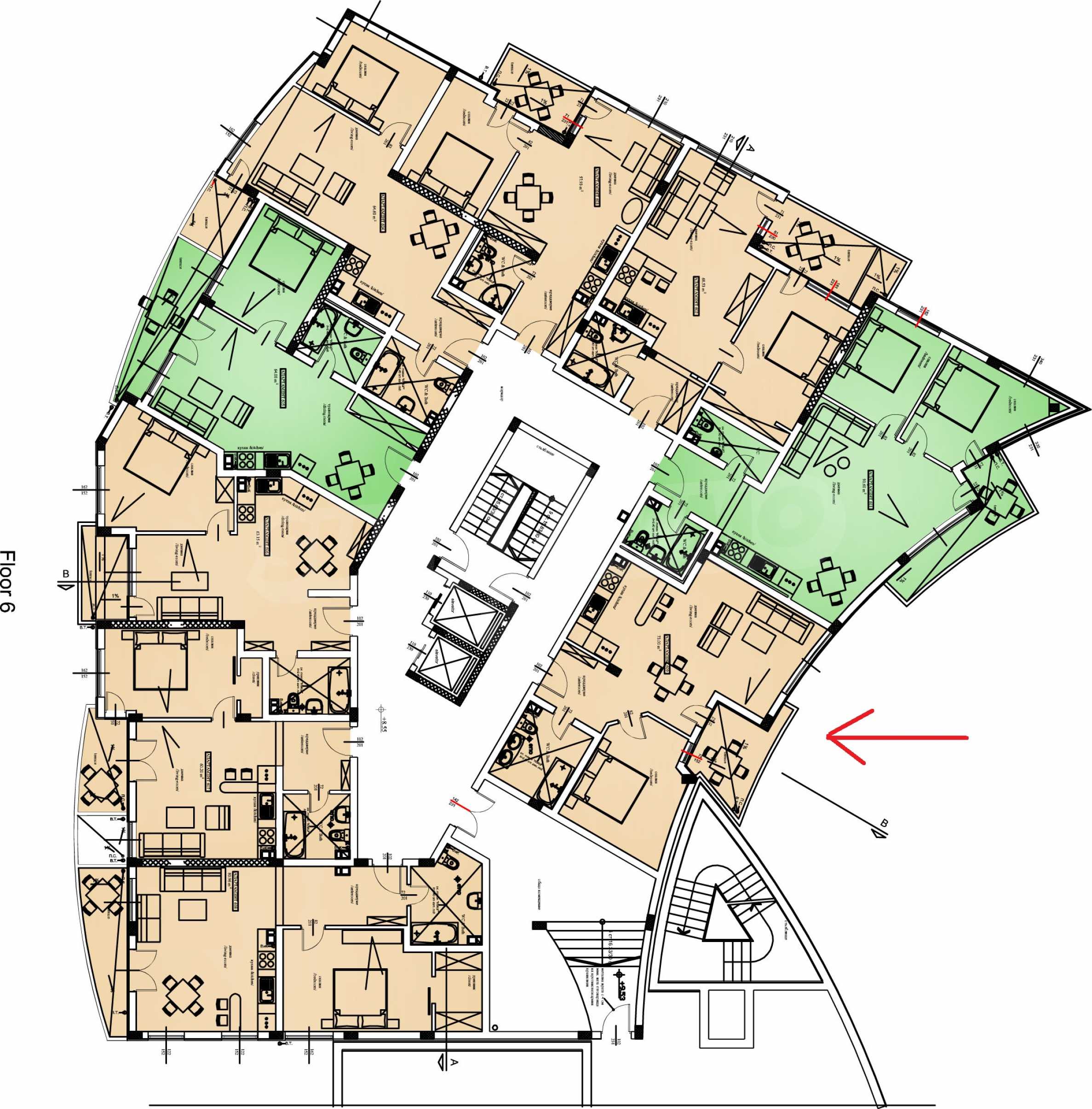 The complex offers year-round security and maintenance of the property, as well as the opportunity to rent it out. It consists of 9 floors with a total of 74 apartments, some of which have a sea view.