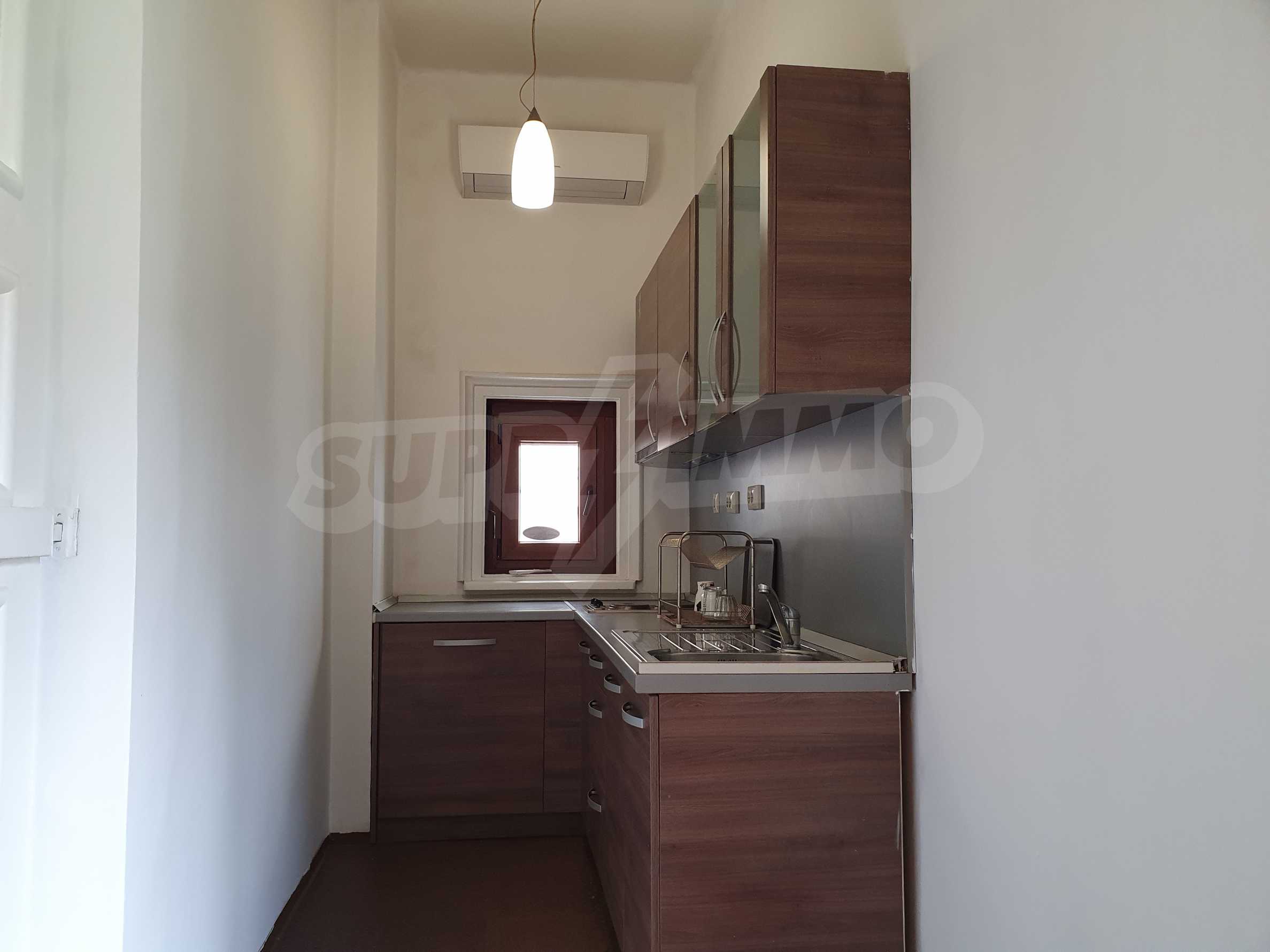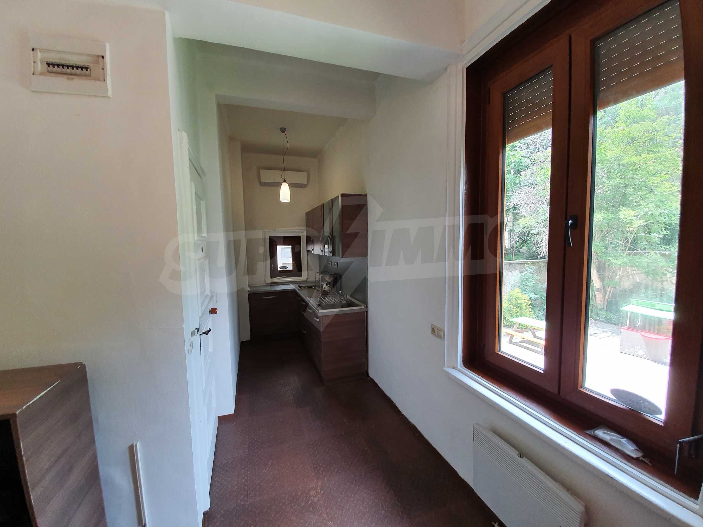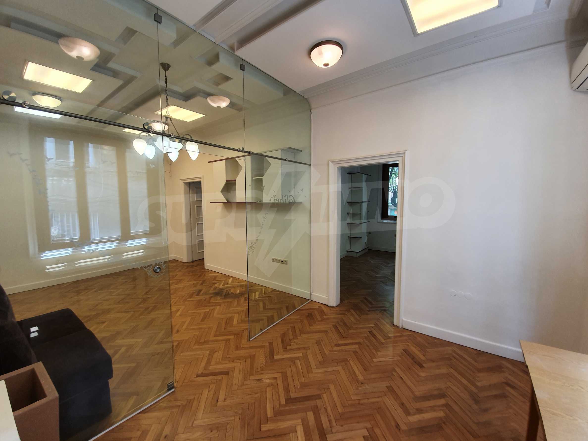 The office has an area of 116 square meters and is located on the first floor above the ground floor. It consists of an entrance hall, four office rooms that can be divided into a reception, a secretarial office and two separate offices with a walk-through door, a corridor with a niche, a visitor's toilet, a bathroom with shower and toilet, a dining room and an equipped kitchenette with refrigerator. stove and sink. The courtyard of the building can also be used at the office. The heating is with air conditioners and convector radiators. The windows are made of PVC profiles with double glazing.