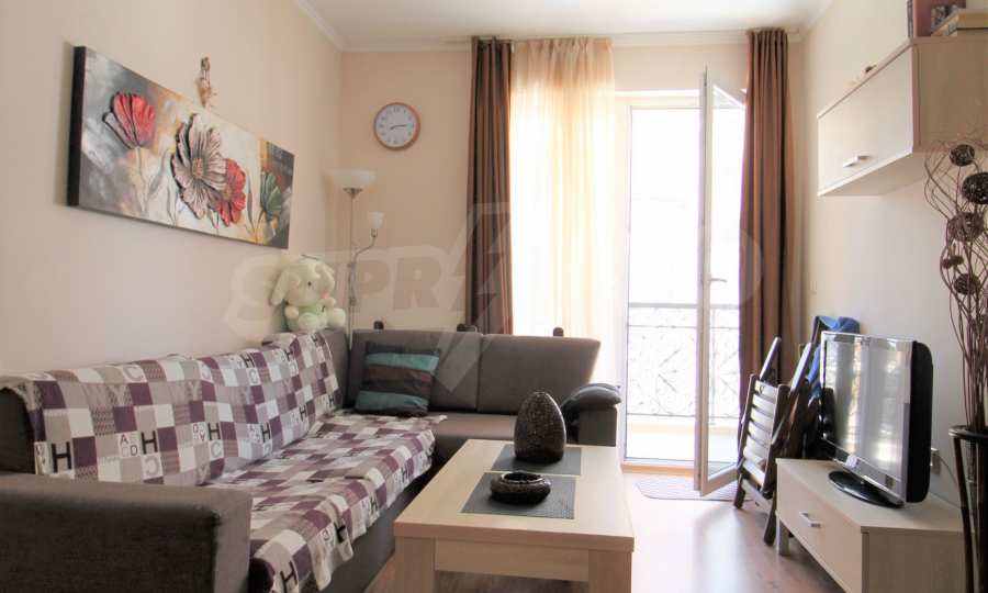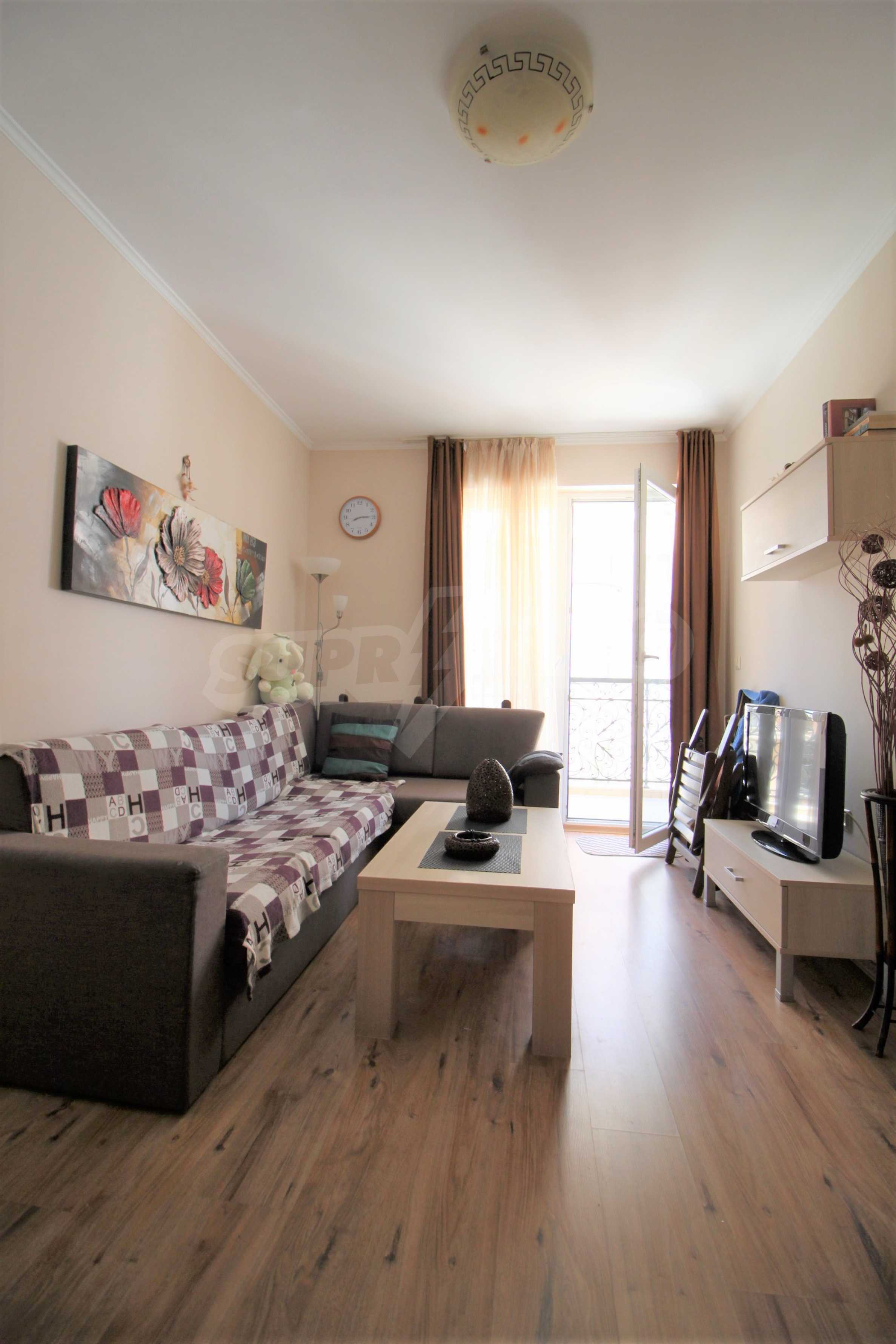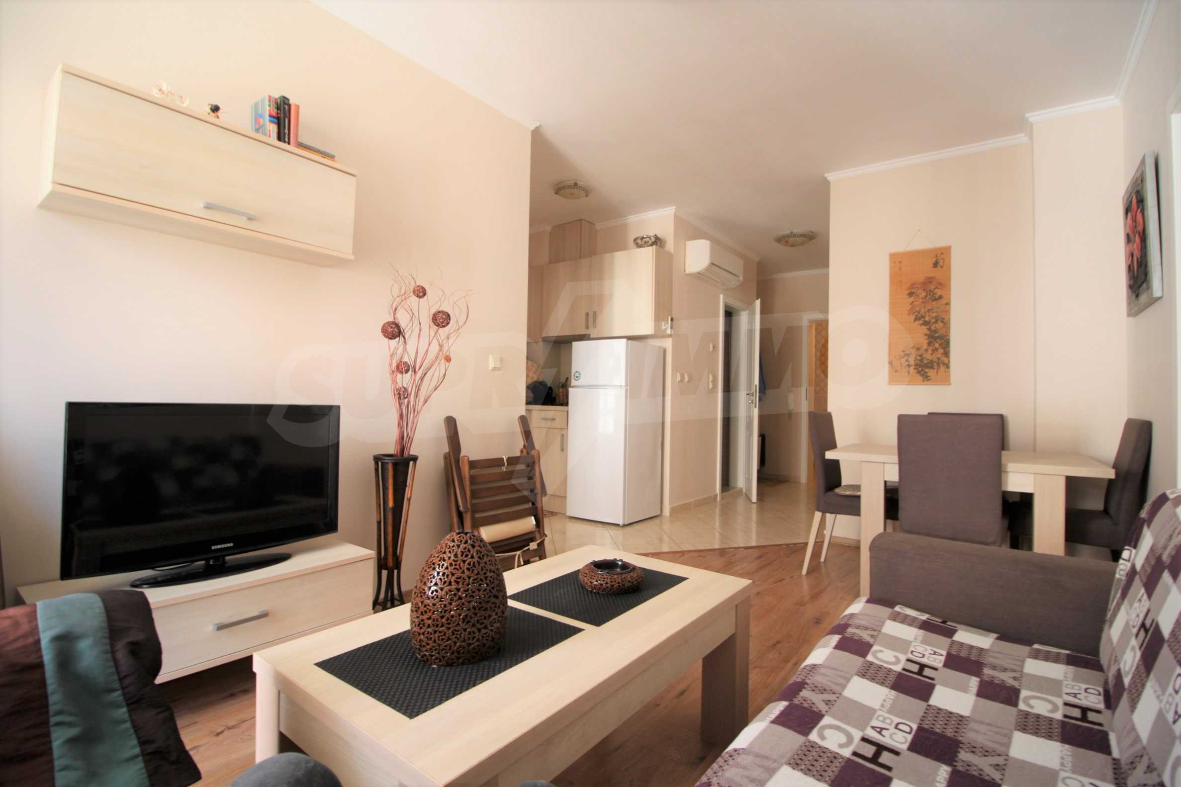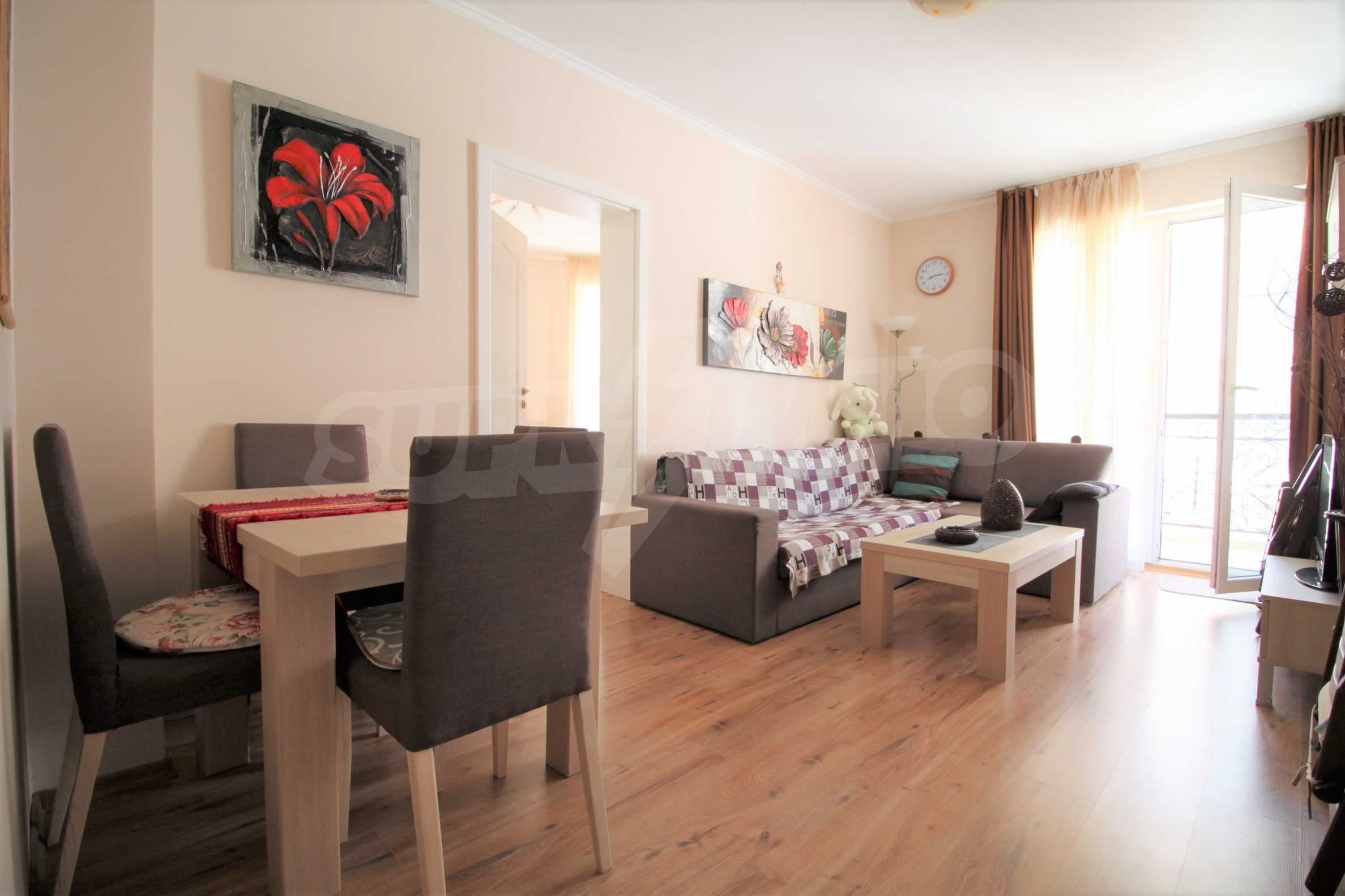 Beautiful and well-furnished two-bedroom apartment of 60 m2 for sale in an elite complex with first-class amenities in Sunny Beach.