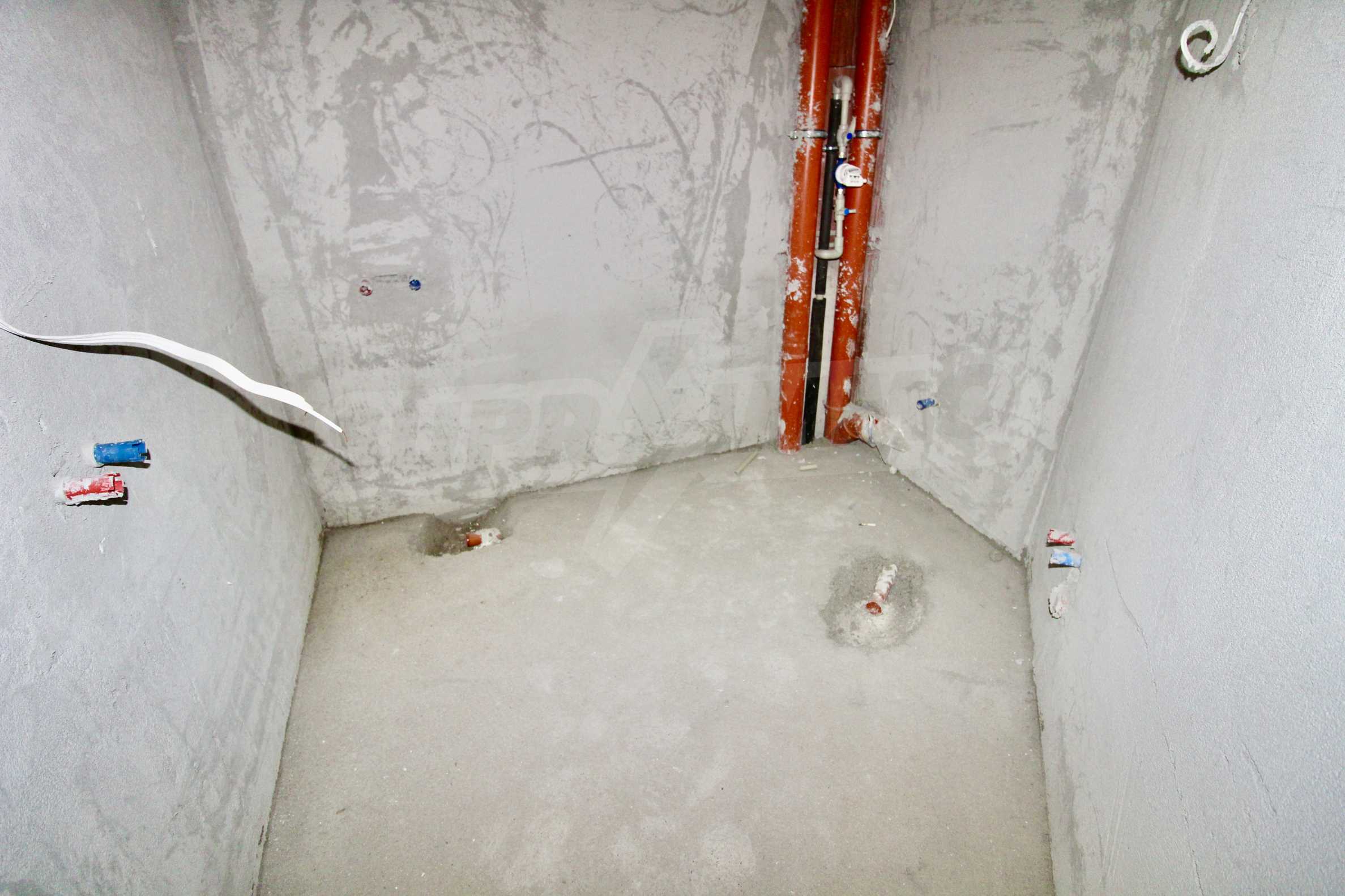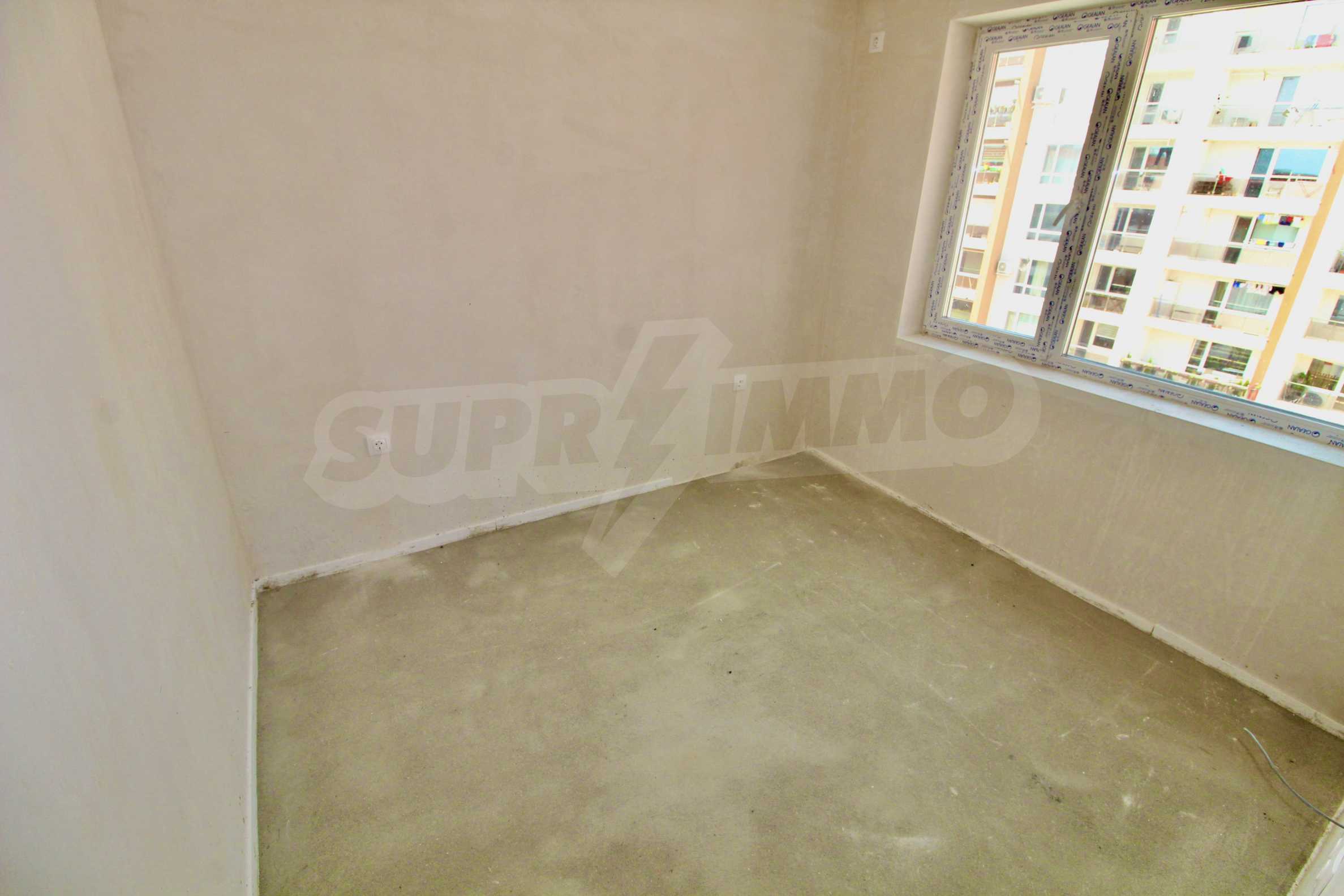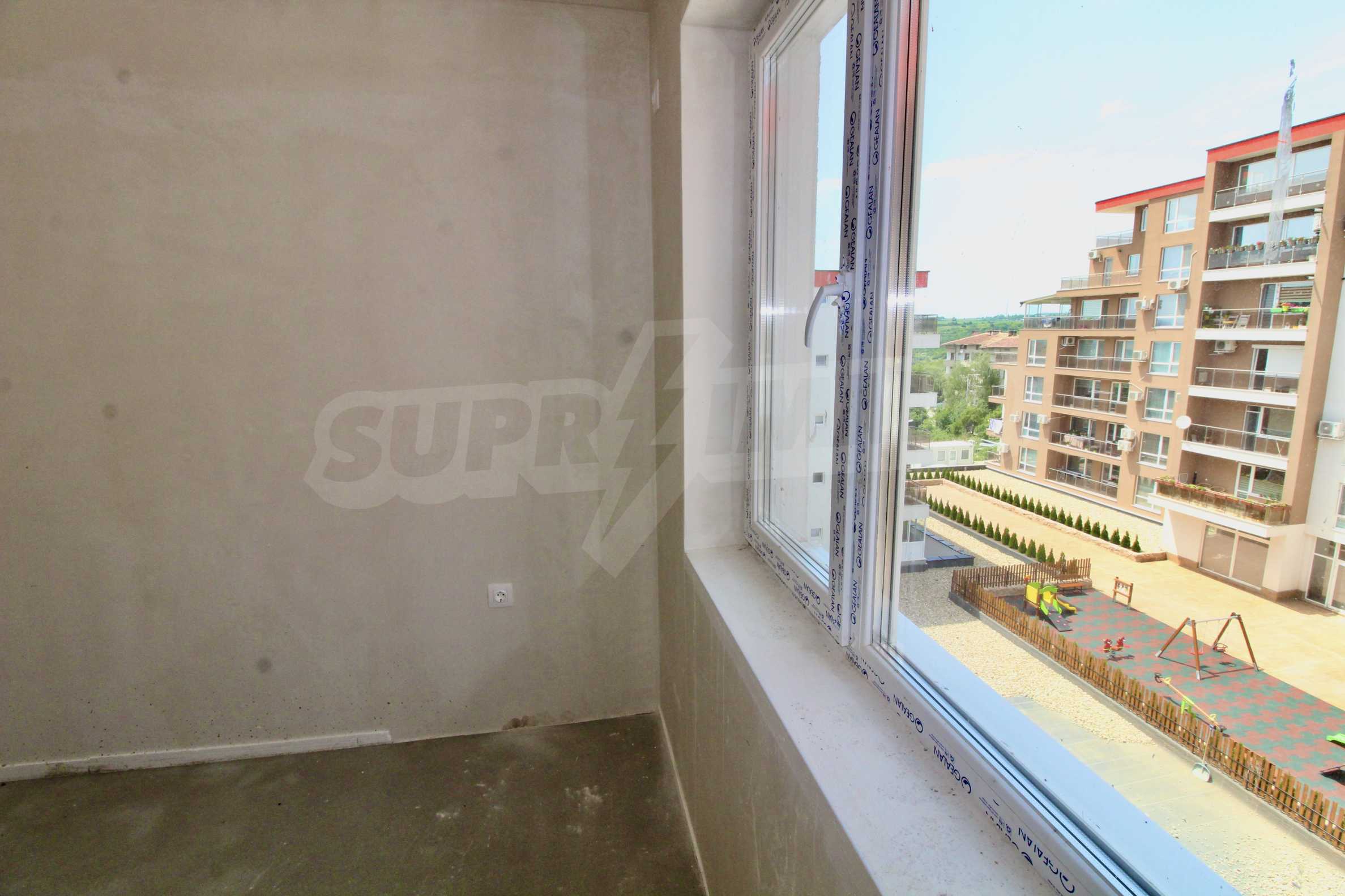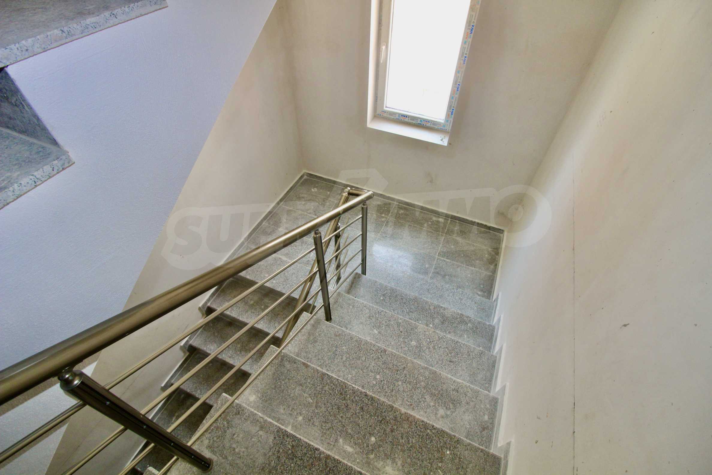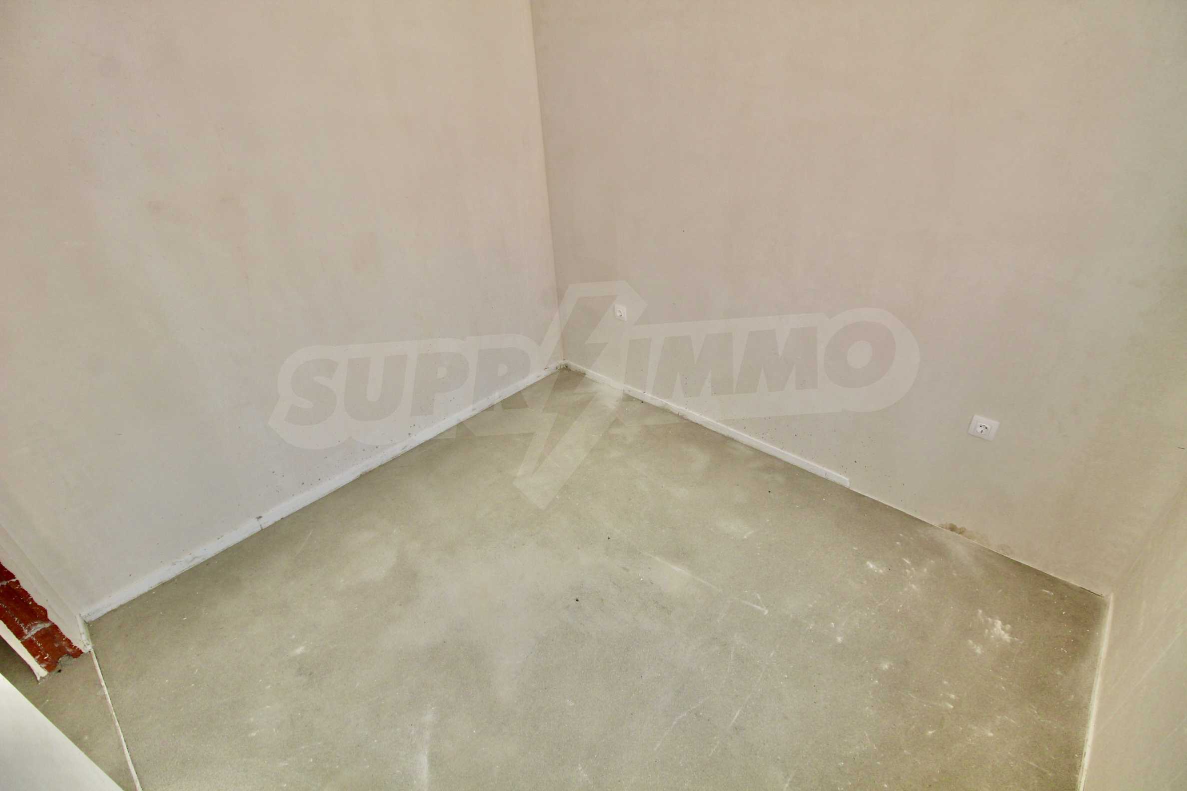 The apartment will have a degree of completion - windows with German profile, 70 mm, triple glazing - 4 mm four seasons, 4 mm white, and 4 mm low-emission (K) glass. The front door is armored with mineral wool filling. The interior doors are by the German company GRADDE, the flooring is plastered, the walls are plastered, and the external insulation provides efficient heating in the winter months and pleasant coolness in the summer.