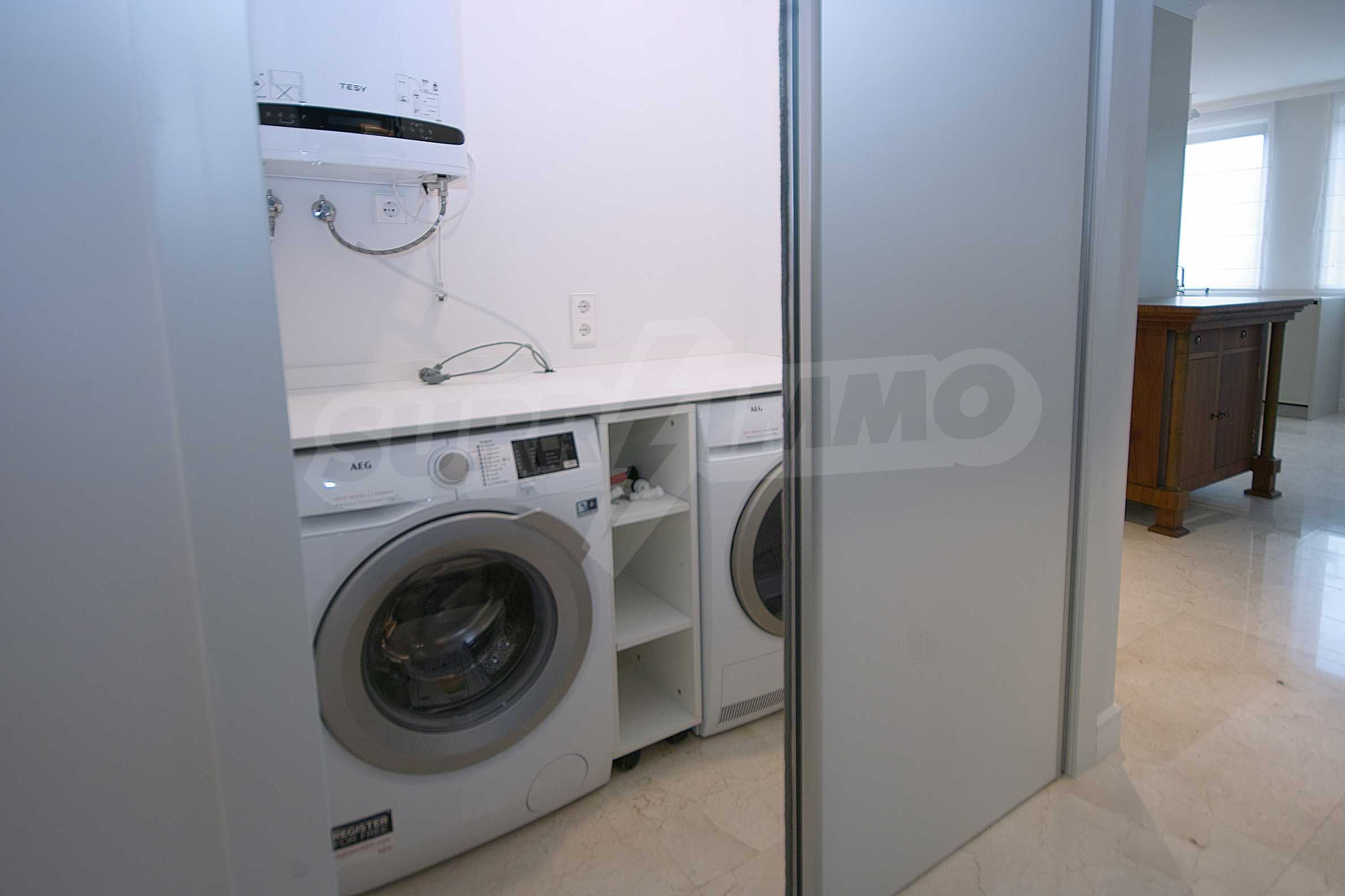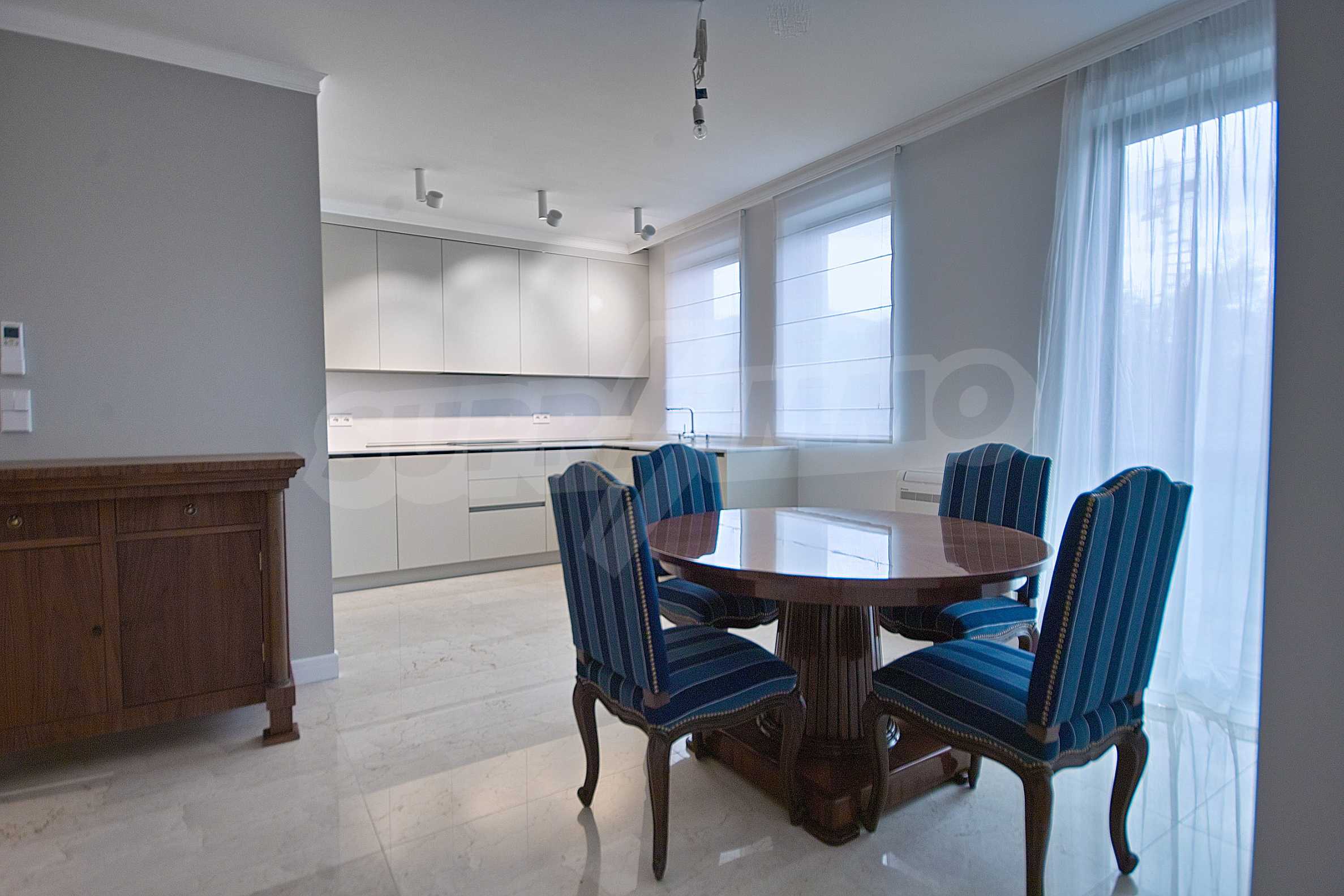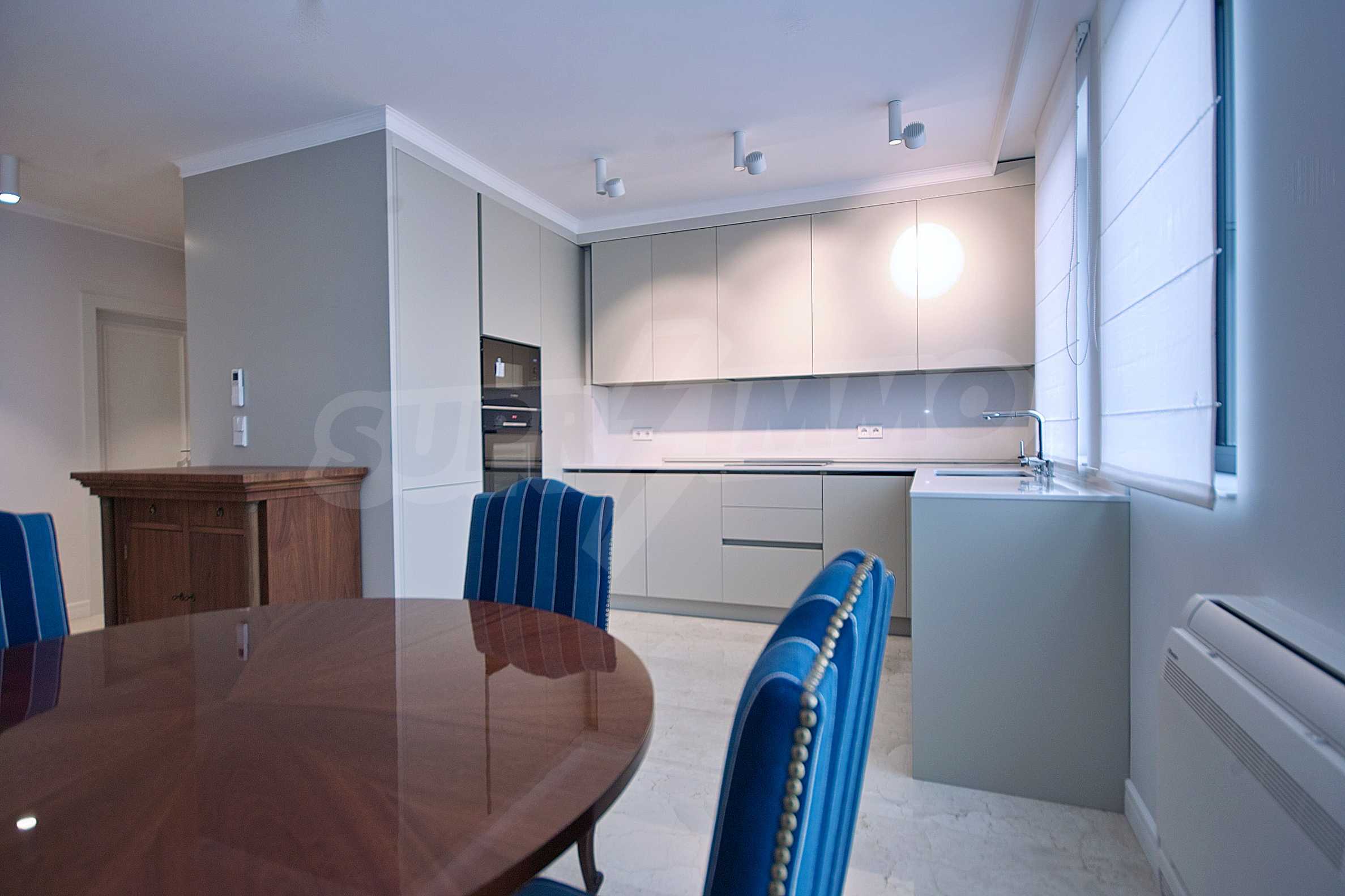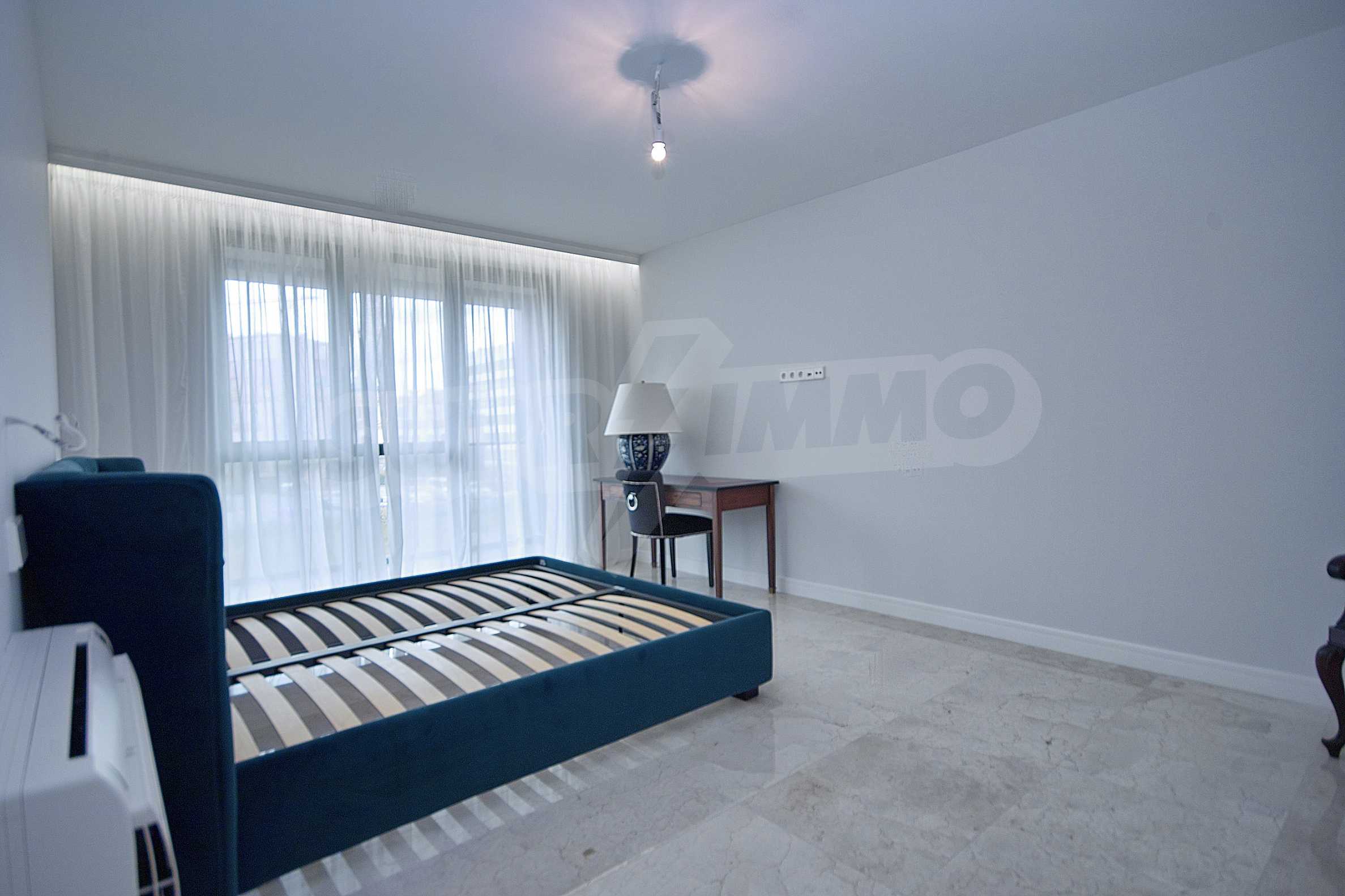 We offer you a brand new, spacious, designer furnished two-bedroom apartment, located in one of the best new residential buildings in Sofia, built according to the latest trends and technologies in the industry. The building impresses with its modern look, representative and luxurious common areas, spacious lobby with reception, 24 hour security and video surveillance.