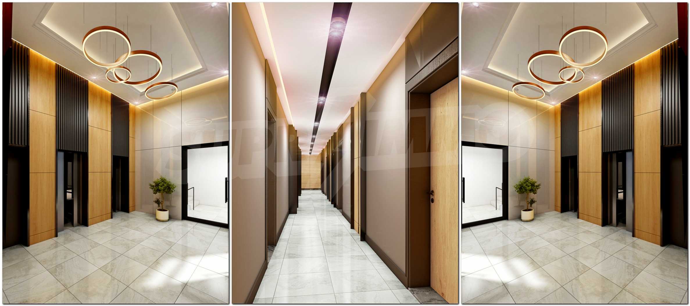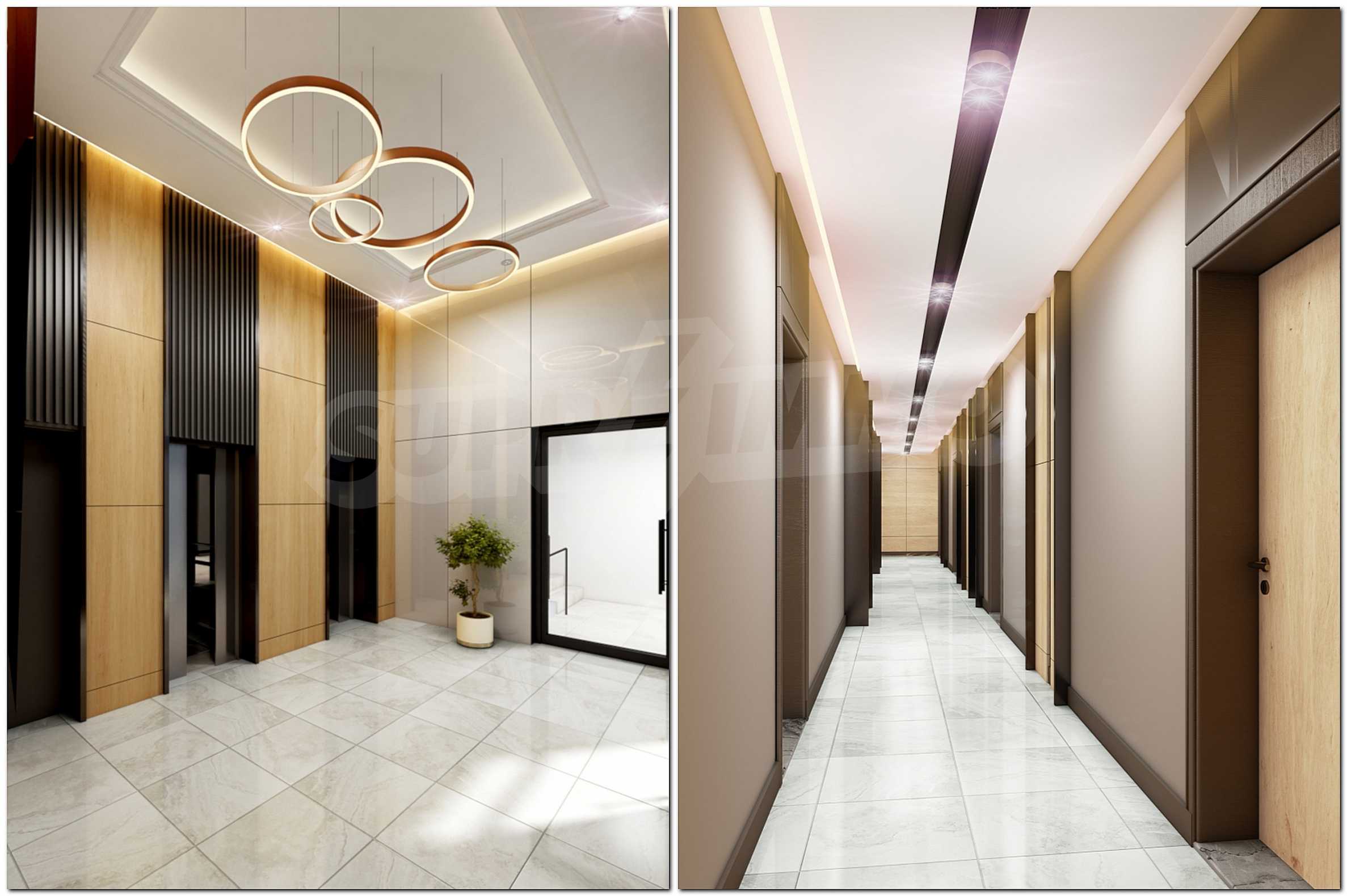 The common parts of the buildings and the terraces will be luxuriously finished with laid granite tiles. There are two elevators in each section.
