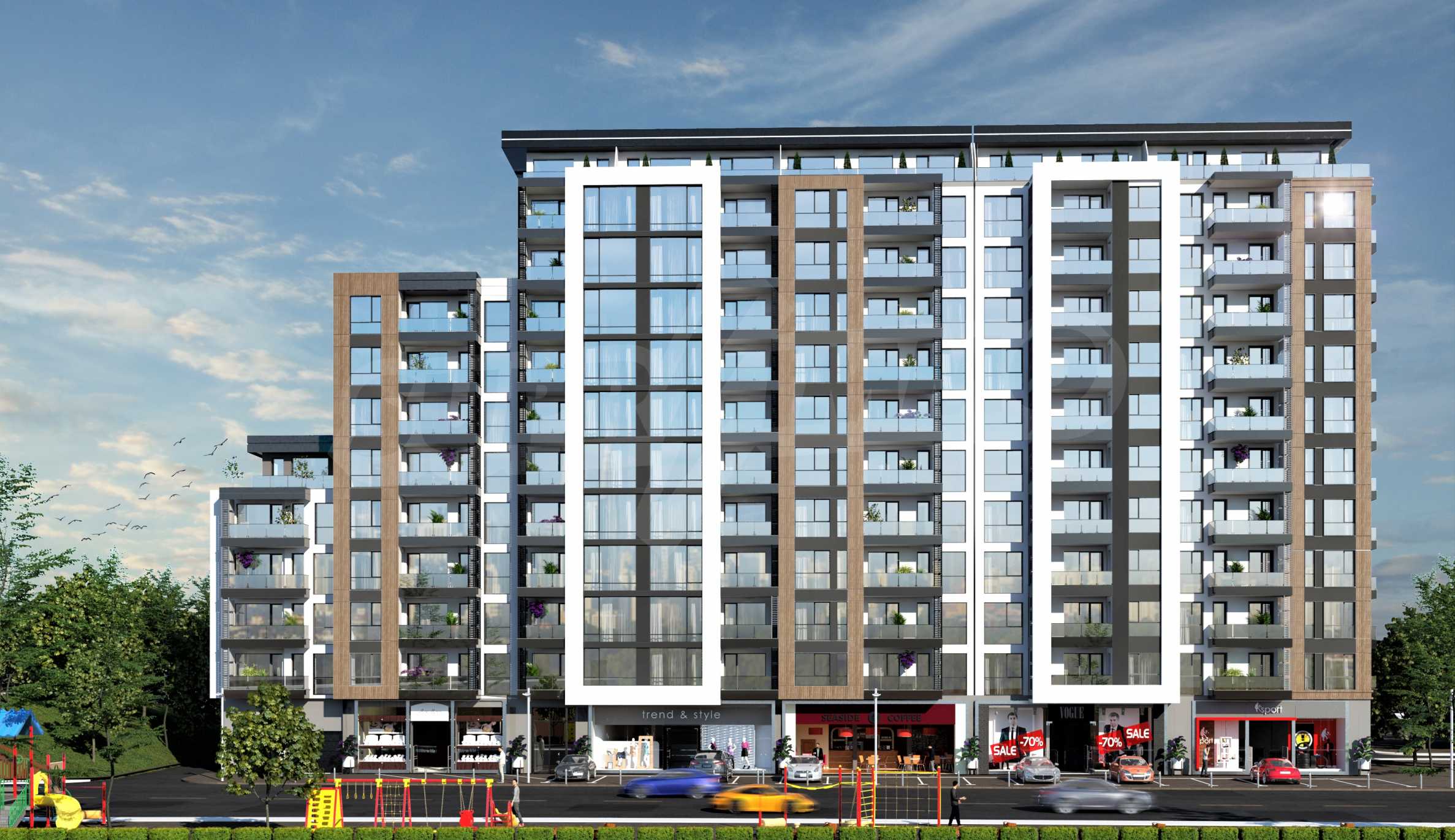 The overall concept of the complex is related to comfort, a good location, and a modern look.