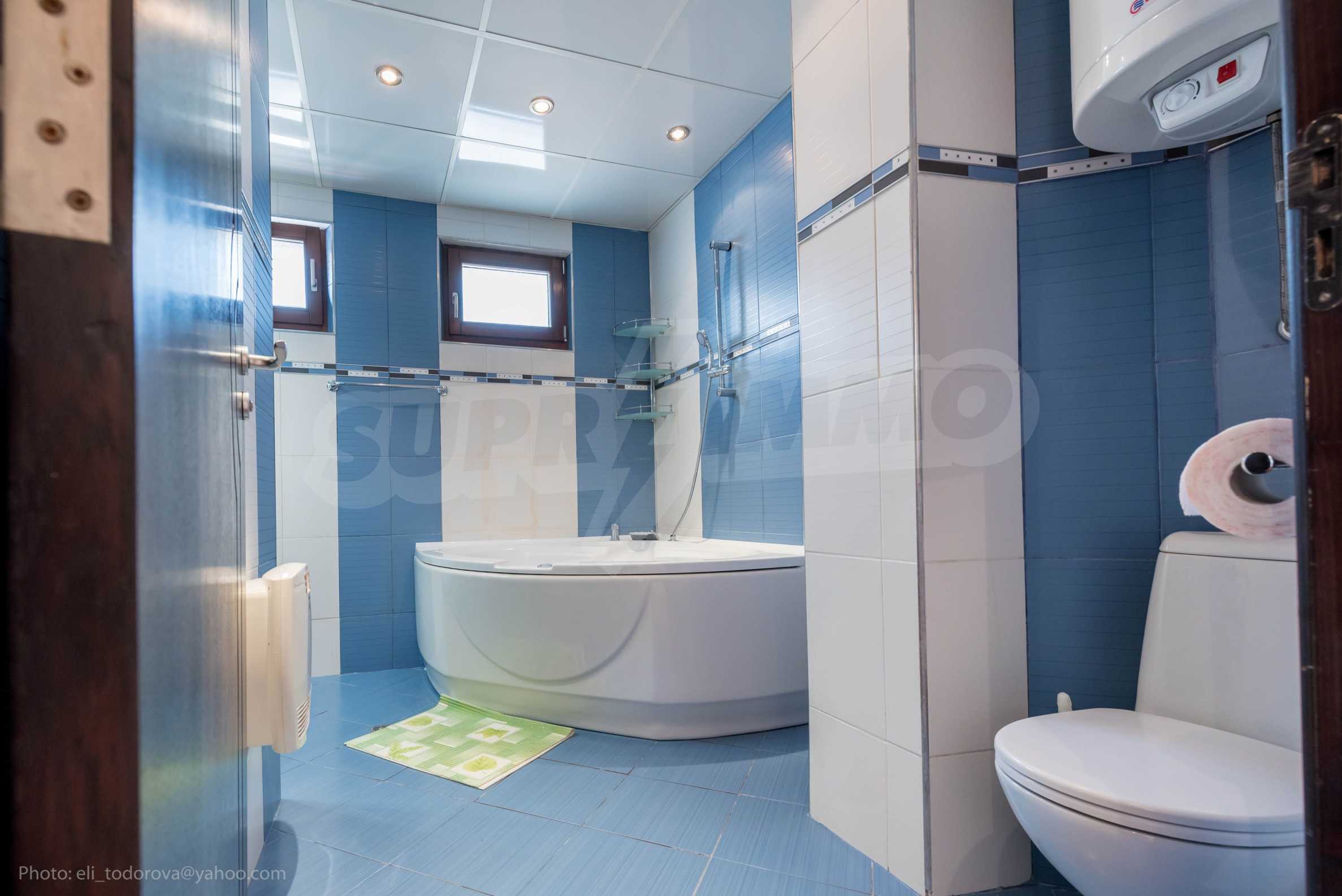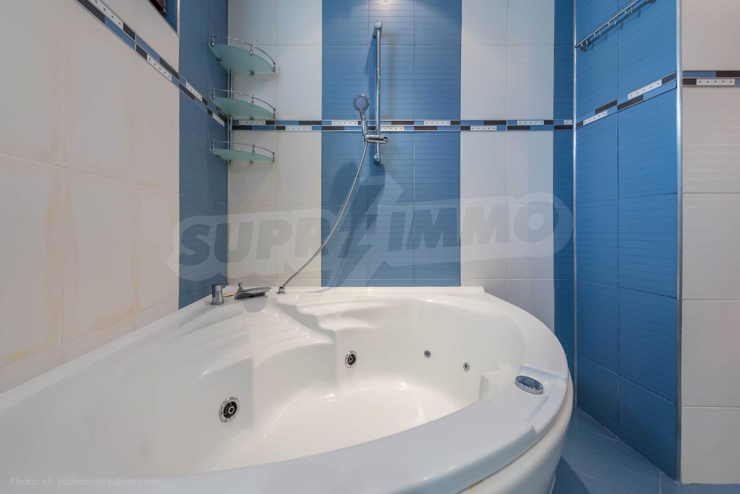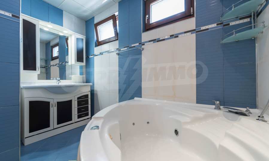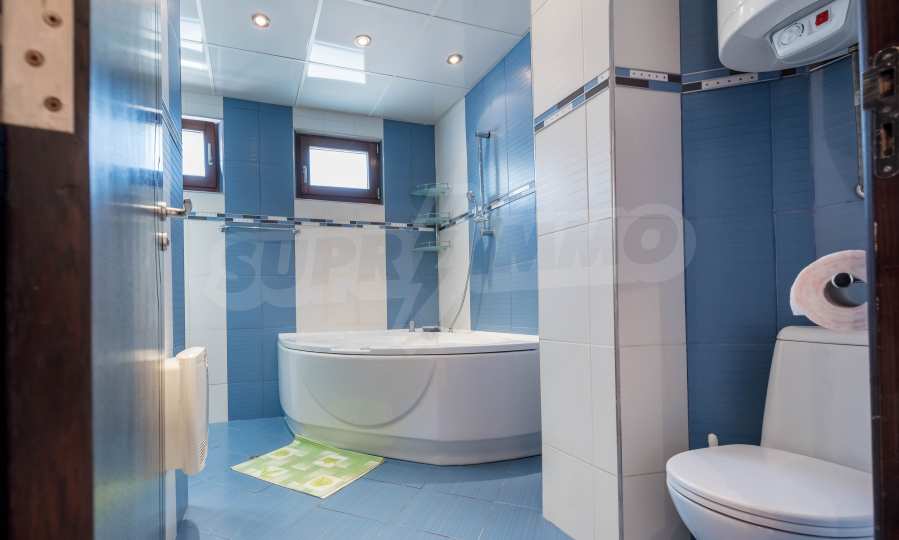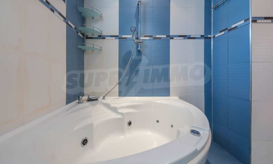 - the bathroom has a Jacuzzi and a shower cabin.