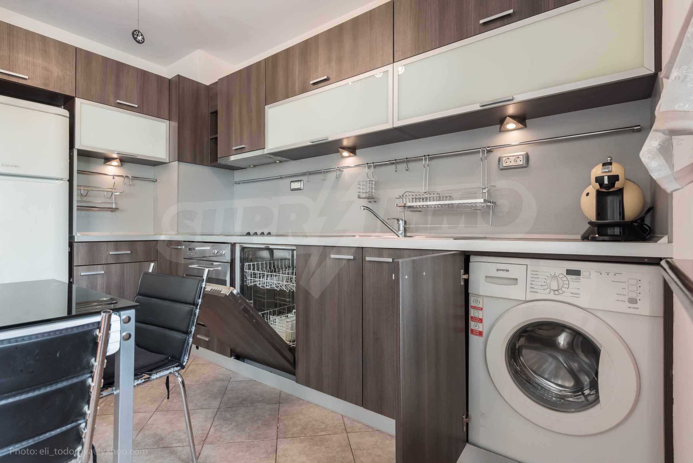 - the kitchen is equipped with stove, dishwasher, washing machine and dining area;