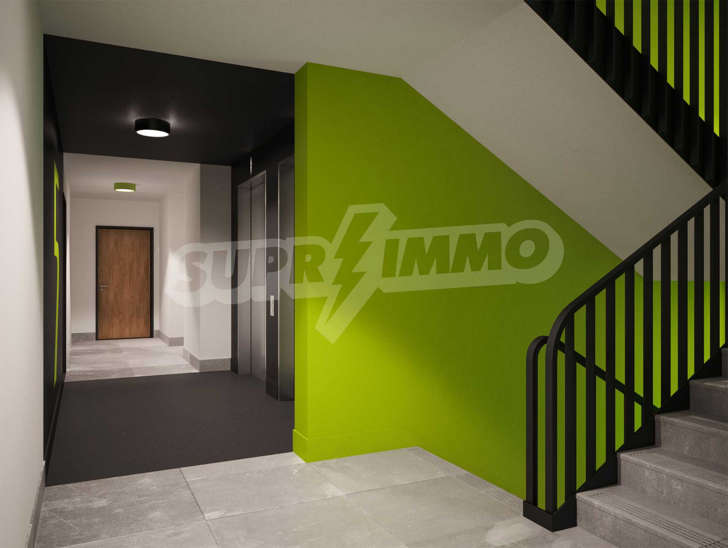 The 100 apartments, mainly one-bedroom apartments and studios, are divided into 9 residential floors.