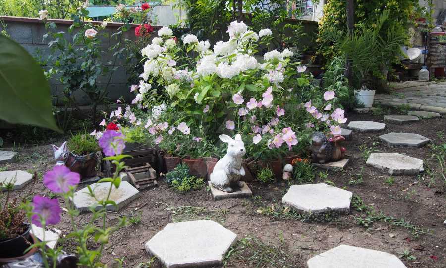 In the lower part of the yard there are four parking spaces.