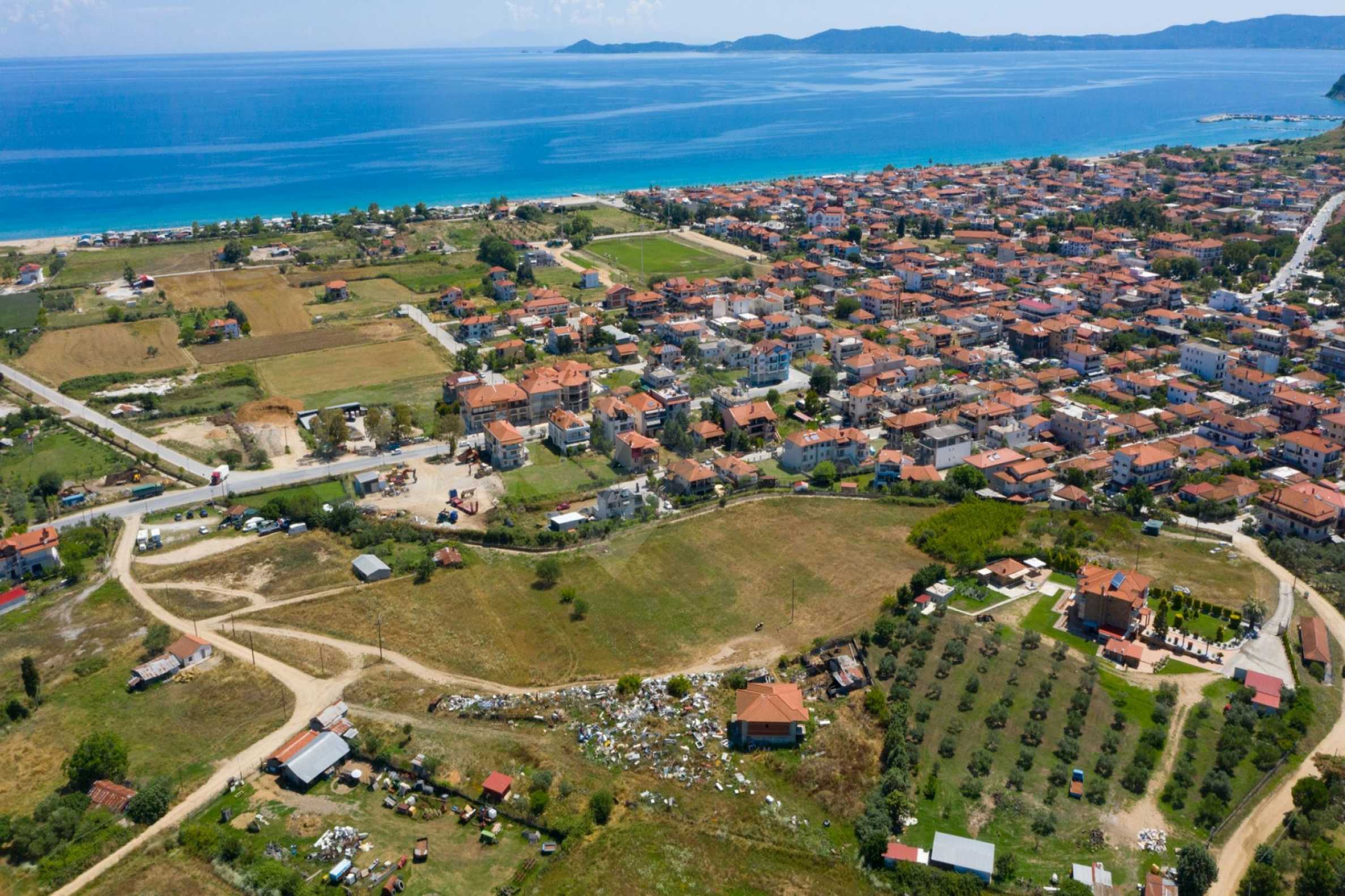 Unique, flat field, 3475 m², in Athos, Halkidiki with unobstructed permanent mountain and sea view, natural beauty and with a northeastern orientation. The property is outside the village, faces the street and it is perfect for photovoltaics.The field is complete and buildable, 880 meters away from a wonderful beach and 200 meters away from the center of the village.The property is perfect for the construction of a villa, detached houses and for professional usage.