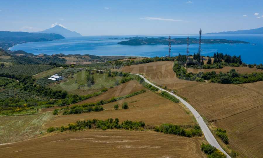 Slanted, panoramic field 14.000 m²,in Athos, Halkidiki with unobstructed permanent sea and mountain view and with perimeter orientation.The property is outside the village, faces the road and has natural beauty.The field, which is complete and buildable, is perfect for the construction of a villa or detached houses and for professional usage.The property is 2.500 meters away from a wonderful beach and 3.000 meters away from the center of the village.