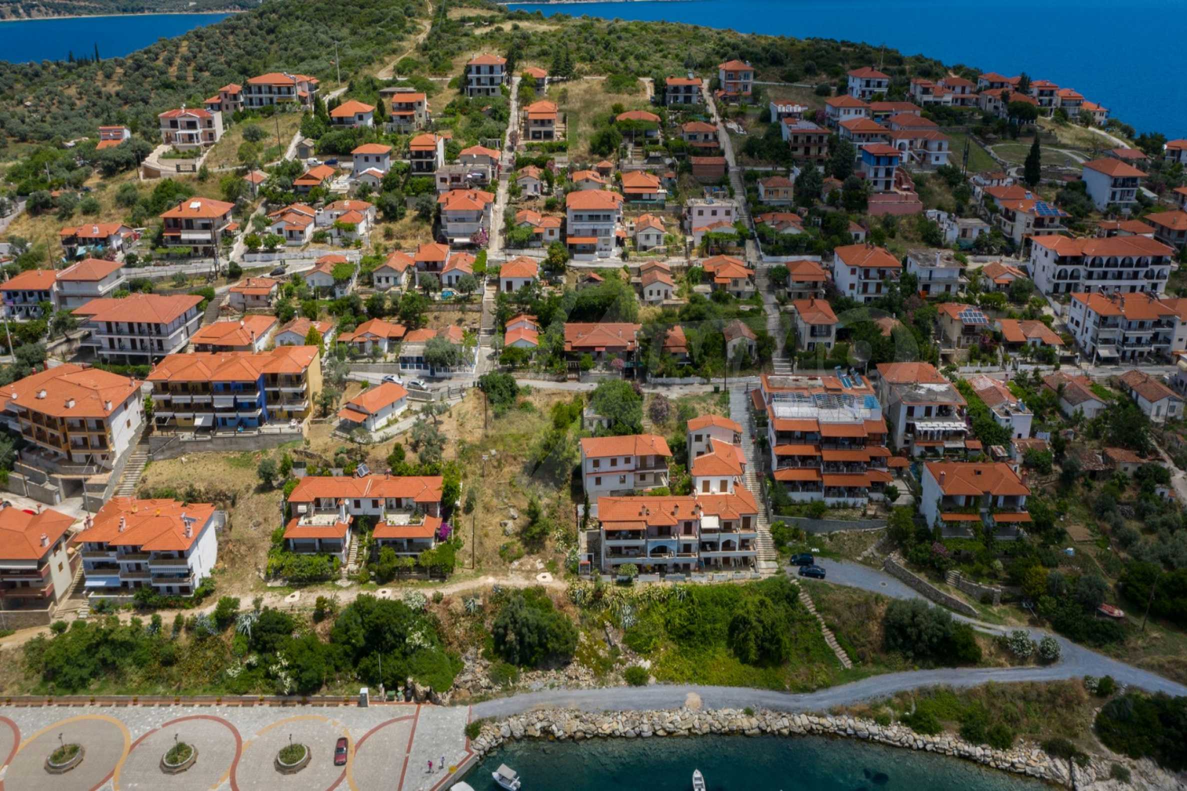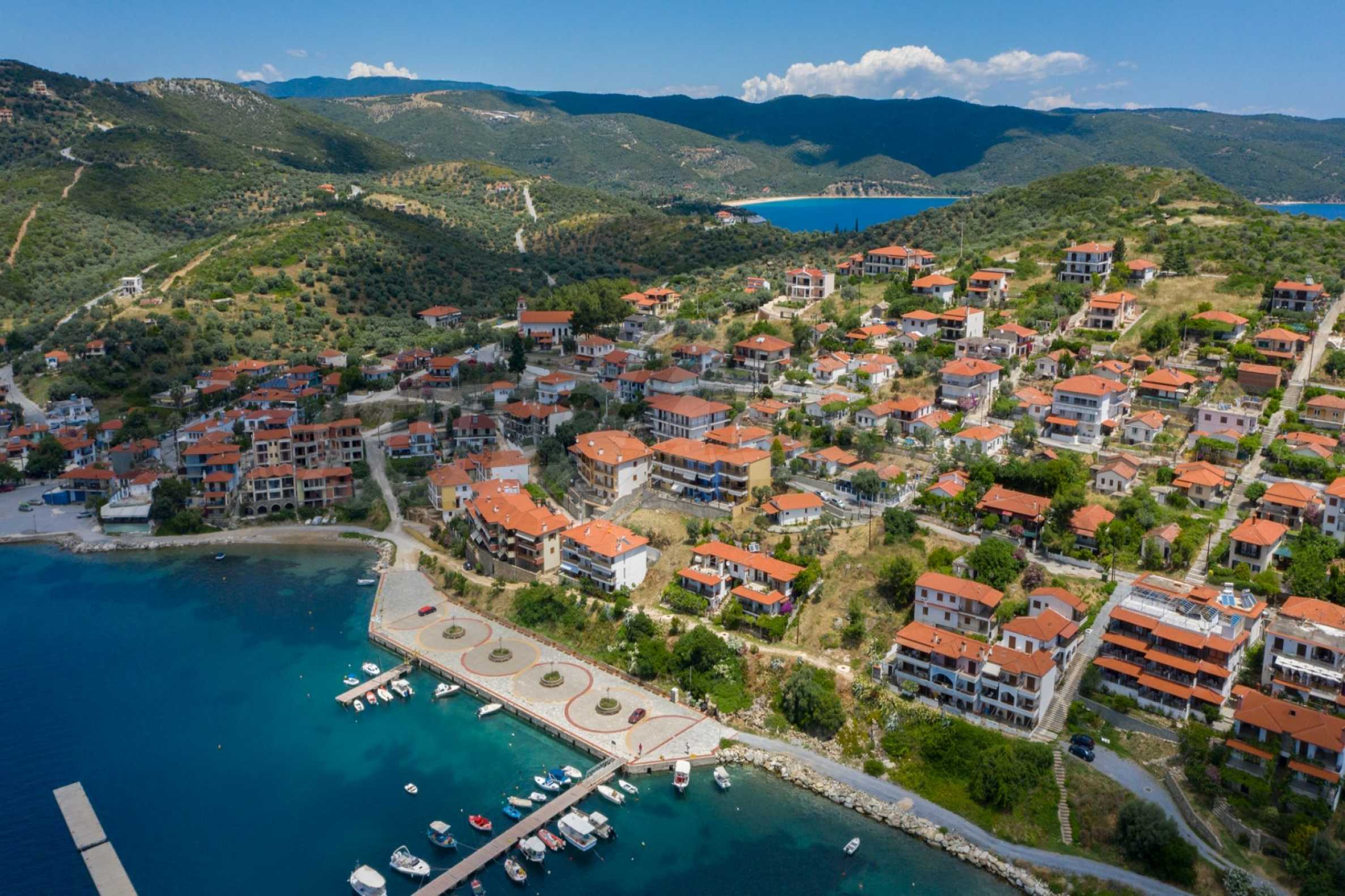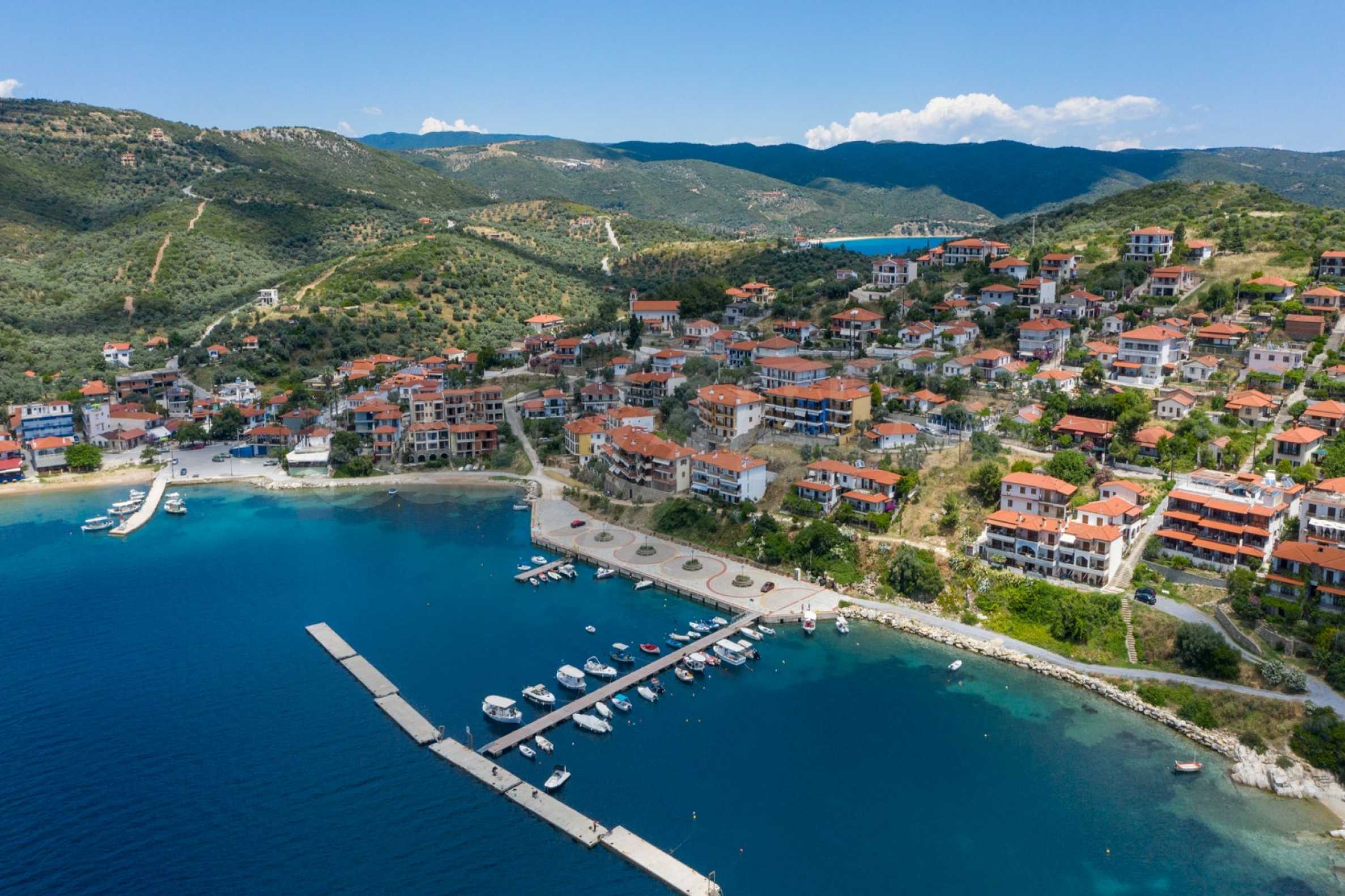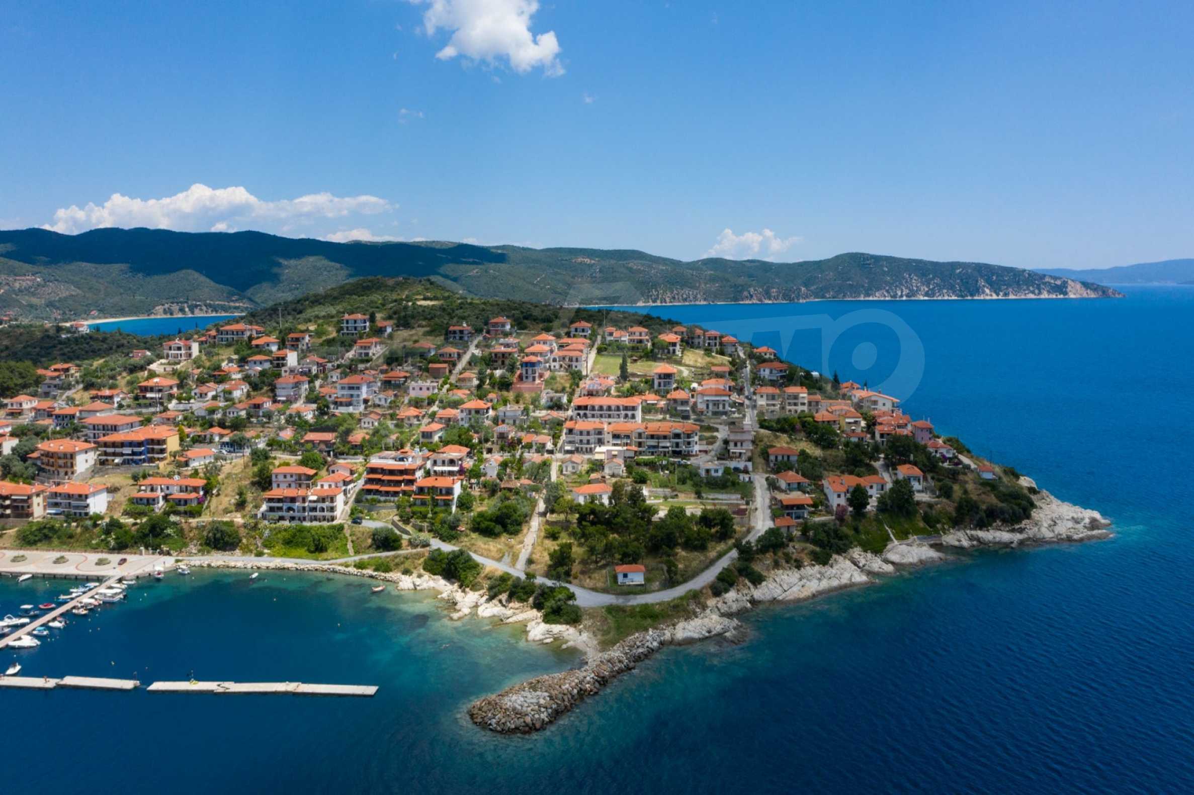 Excellent plot, 380 m², in Athos, Halkidiki, first on the sea. In a position with a southeastern orientation, faces the road, with natural beauty and uninterrupted natural light throughout the day. The plot is slanted, first on a beautiful sea and 100 meters away from the center of the village. It is complete and buildable, perfect for the construction- utilization of a villa and a detached house.