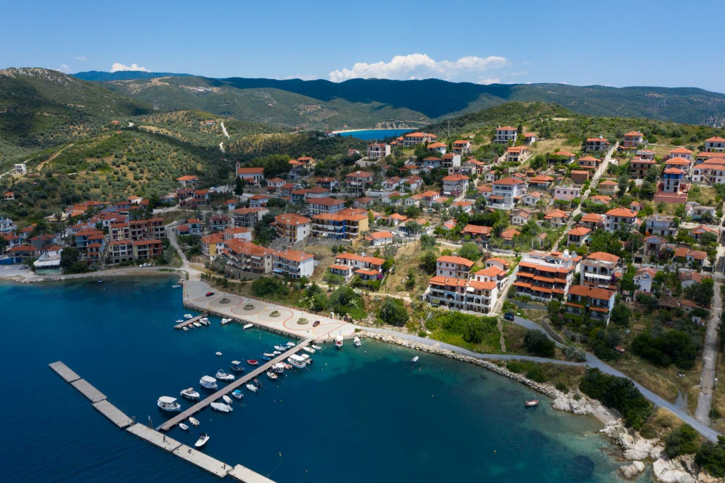 Excellent plot, 380 m², in Athos, Halkidiki, first on the sea. In a position with a southeastern orientation, faces the road, with natural beauty and uninterrupted natural light throughout the day. The plot is slanted, first on a beautiful sea and 100 meters away from the center of the village. It is complete and buildable, perfect for the construction- utilization of a villa and a detached house.