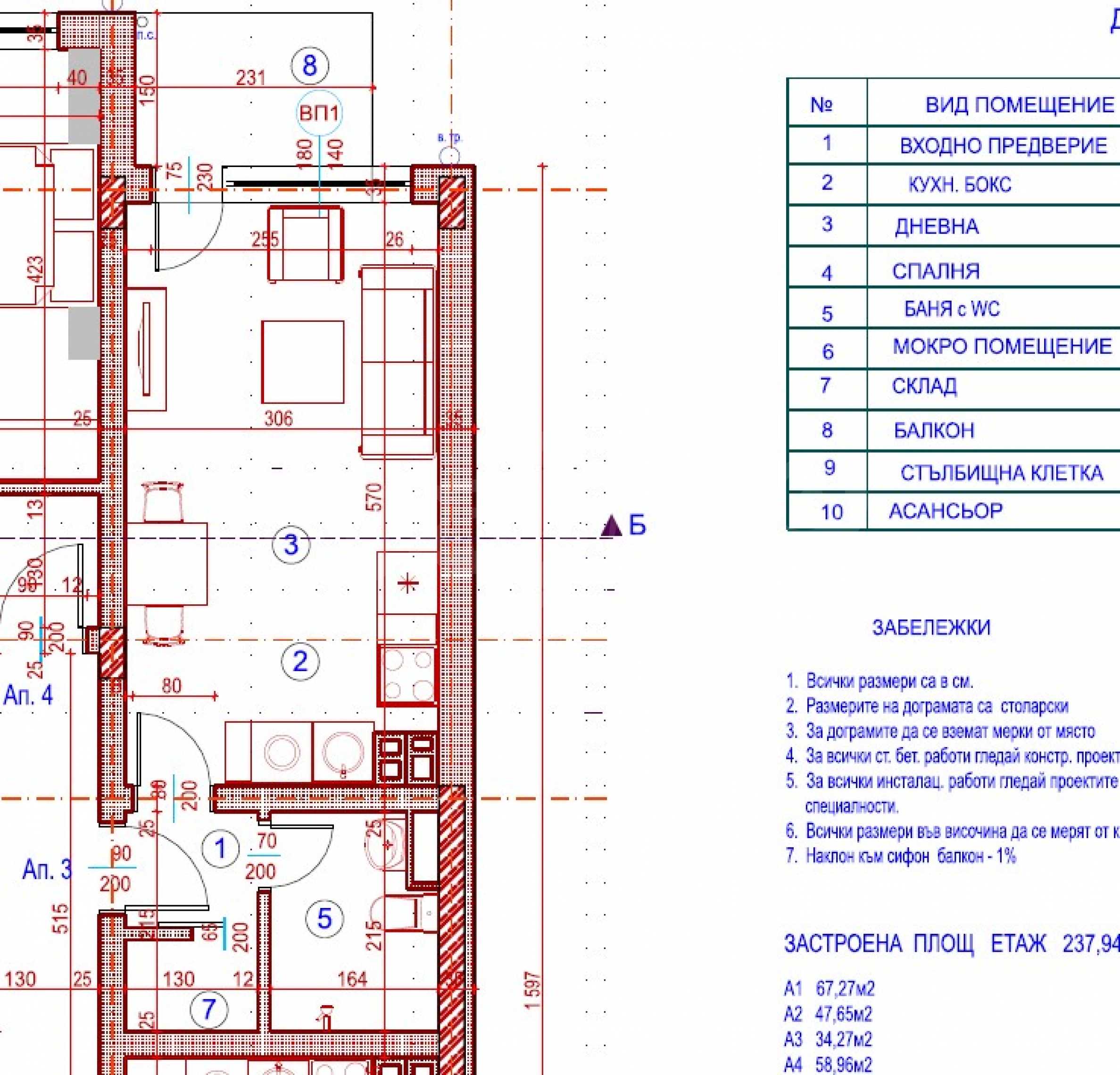 The apartment is offered according to the Bulgarian Standard, on plaster and putty, with an armored front door.
