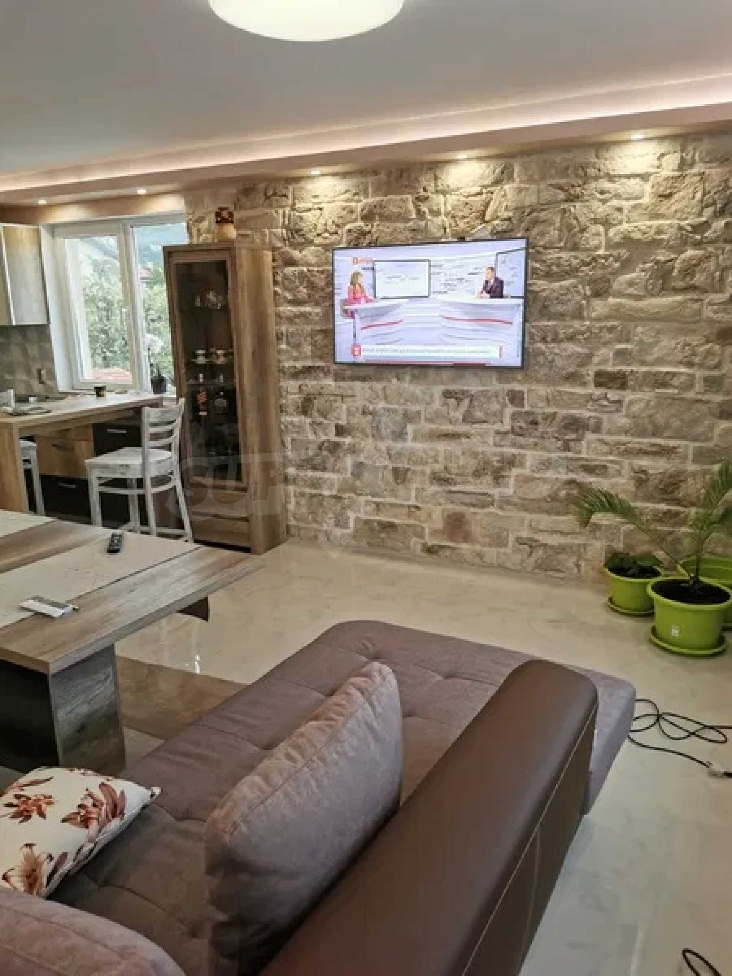 It is located on the 4th floor of a five-storey new building and is for sale with the furniture and a parking space included in the price. The property consists of a living room of about 28 m2, two bedrooms of 13 m2, a spacious corridor, a terrace, a bathroom and a toilet in one. Extremely bright and warm, the apartment has an excellent clean area.