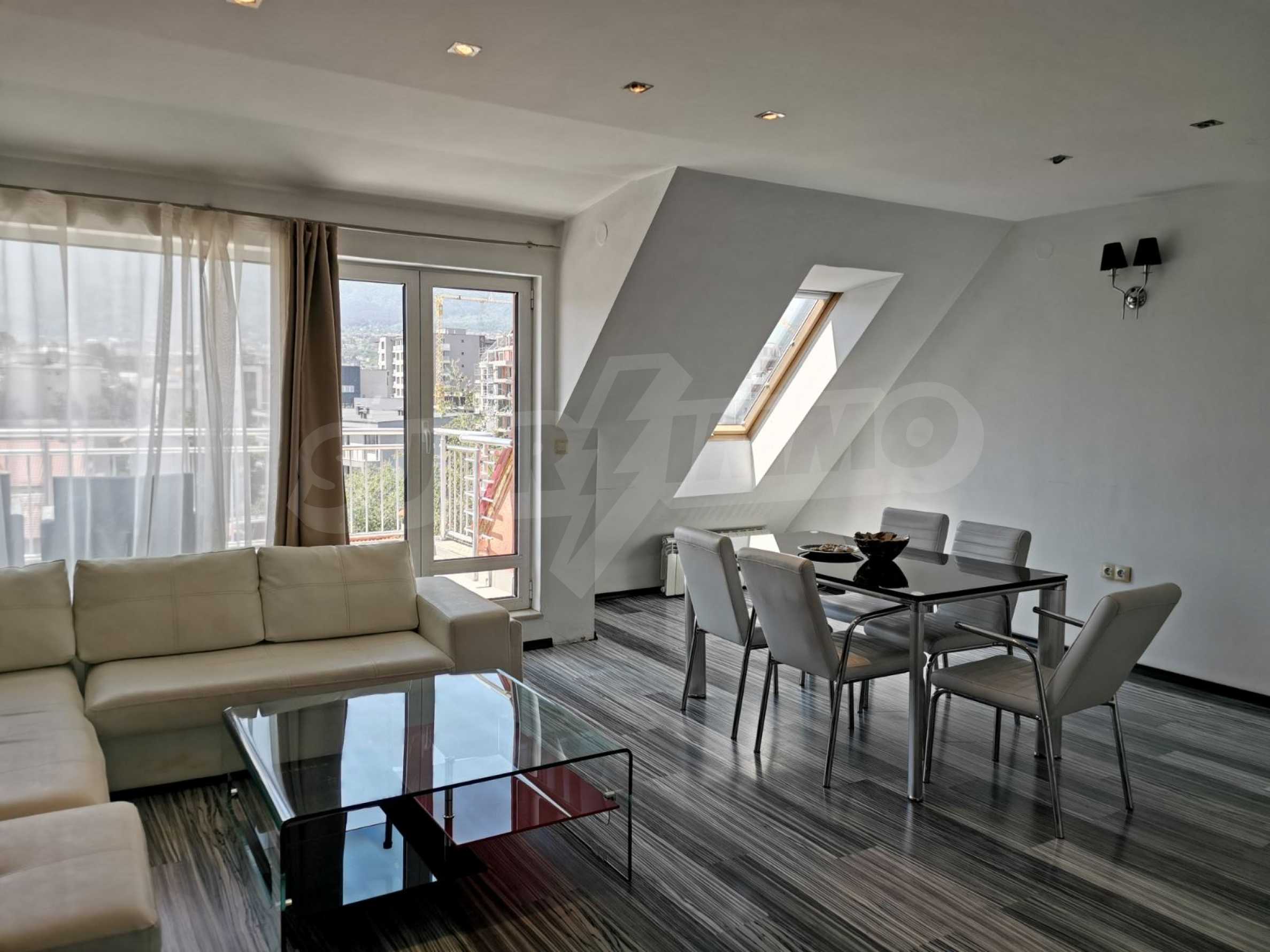 Four-room, furnished apartment with three parking spaces and panoramic mountain views in Vitosha district. The apartment is located in a building with permission for use since 2010. Close by is the communicative boulevard Simeonovsko Shosse, which allows quick access to both the central parts of the city and its periphery.