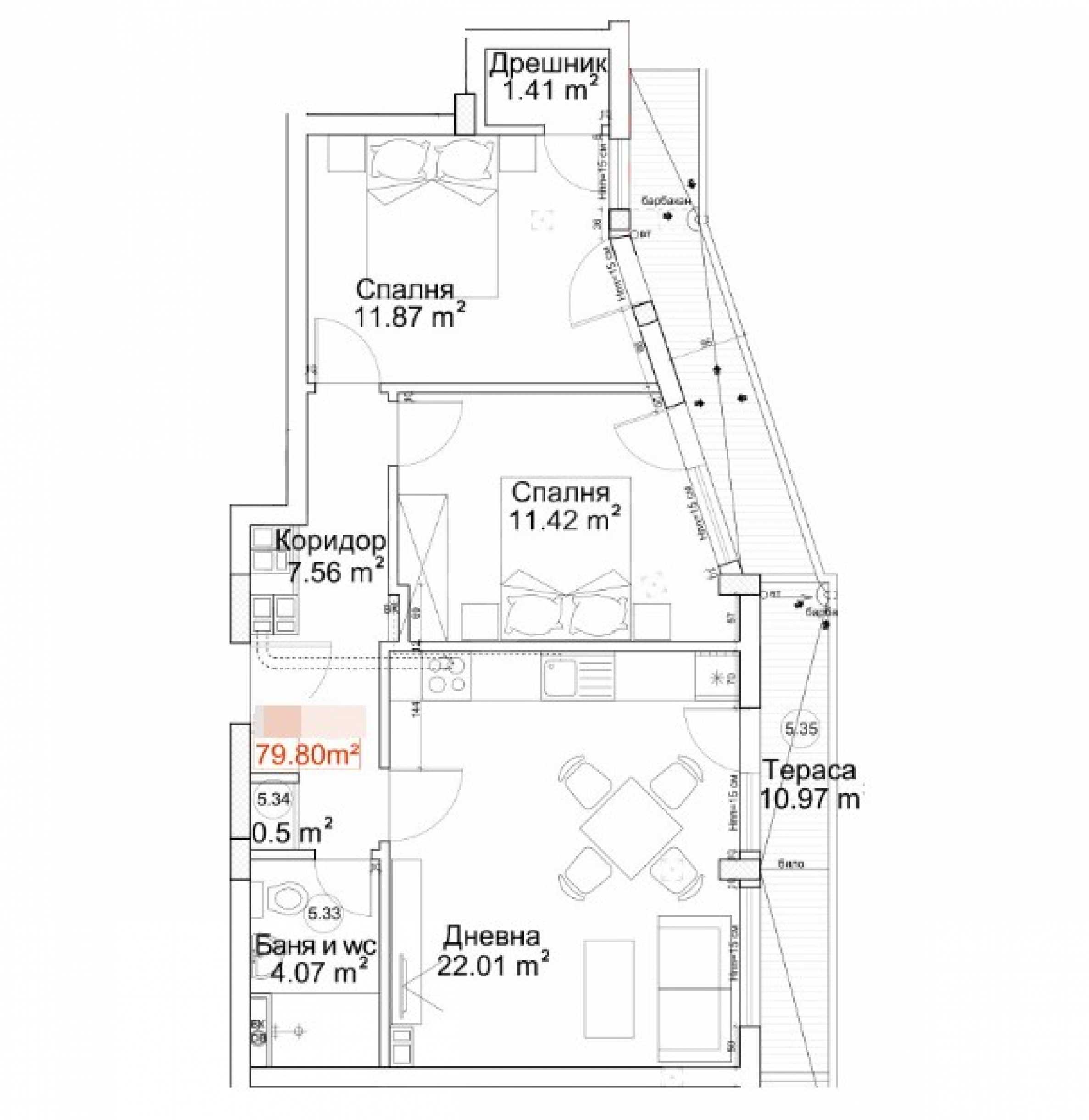 We present to you a two-bedroom apartment of 91.76 m2, located on the 5th floor of a modern building with amenities and location for living in the city of Varna.