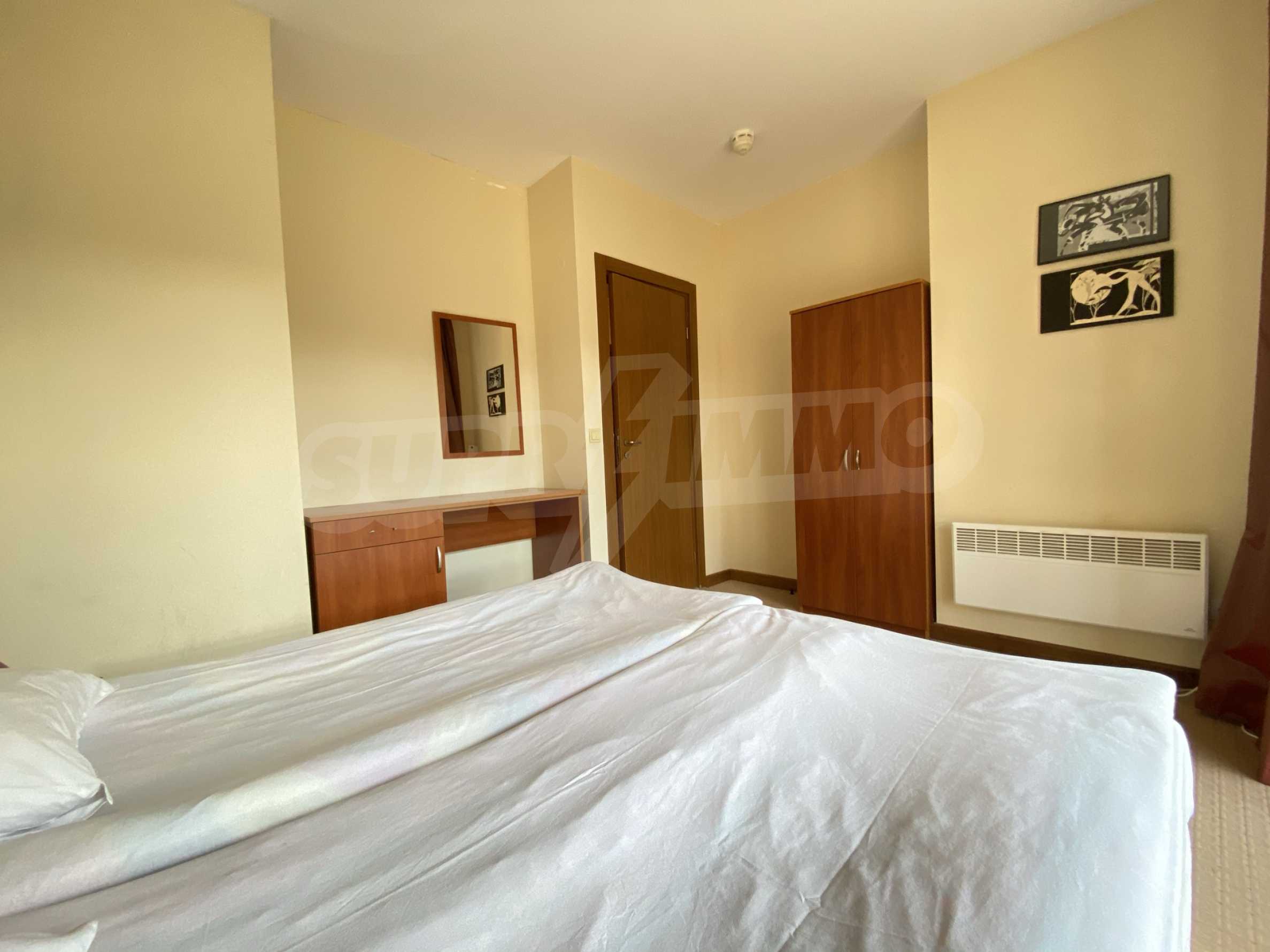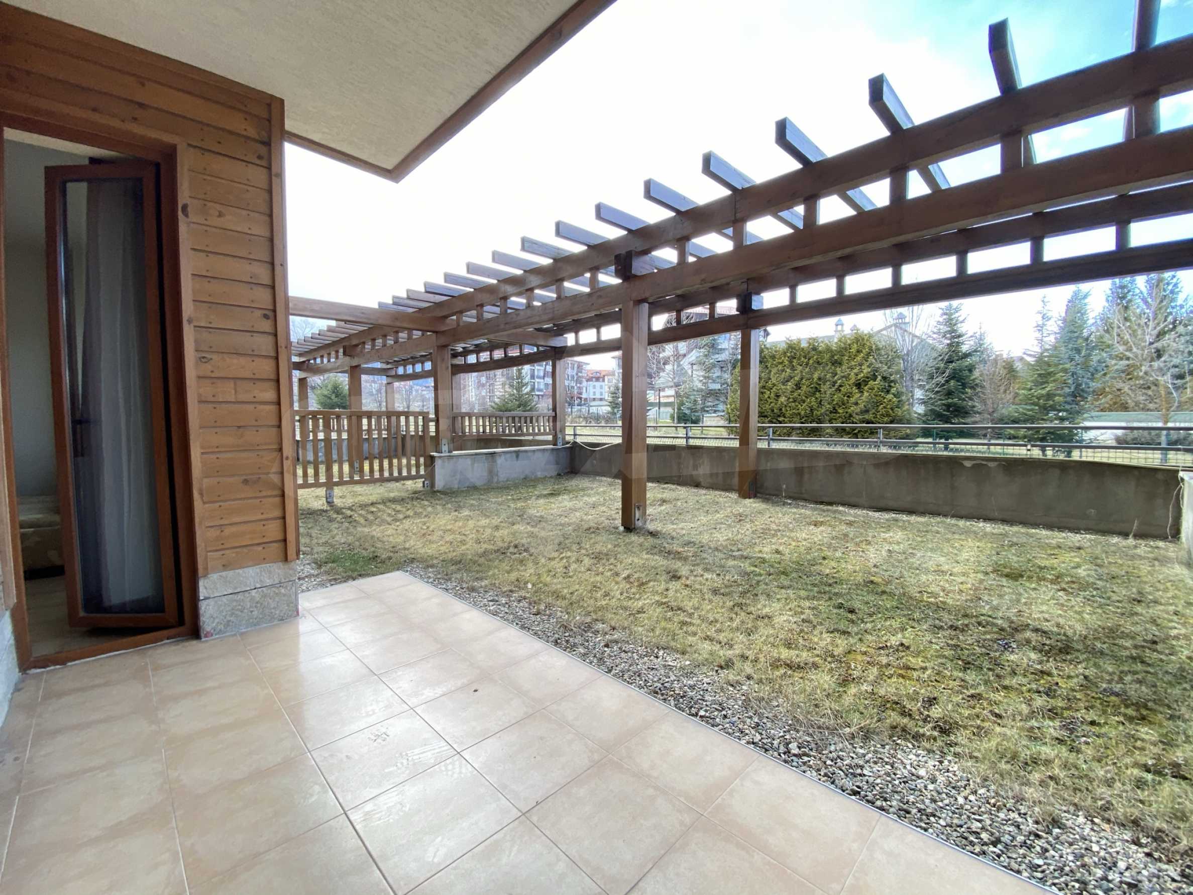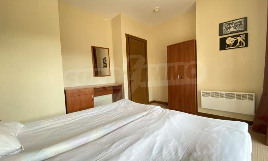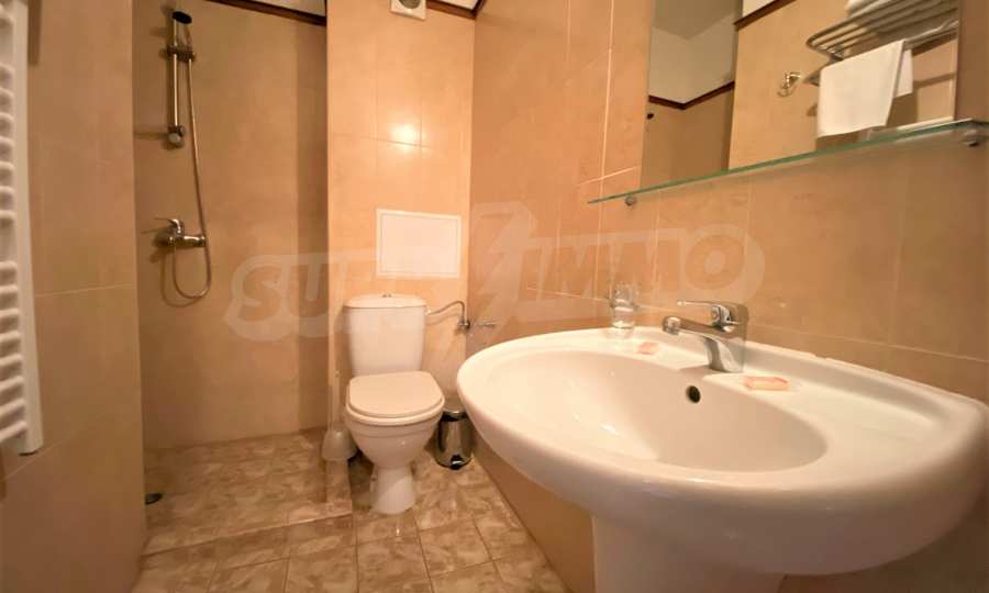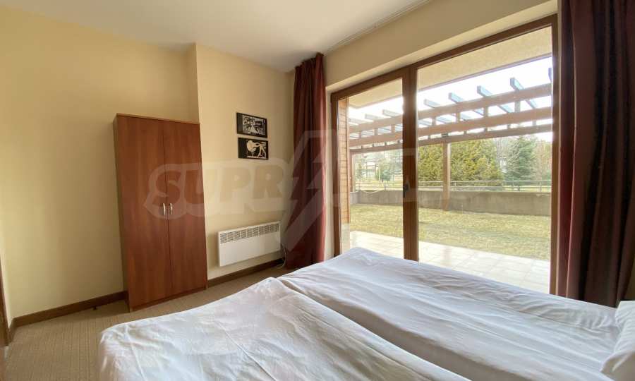 We present a one-bedroom apartment with an area of 105 m2., located in a gated complex meters meters from the ski lift in Bansko. The apartment consists of a kitchen with a living room, one bedroom, a corridor, a closet, a bathroom with a toilet, a terrace with a mountain view. The apartment is facing southwest. The property is suitable for both living and renting. The apartment includes a parking space.