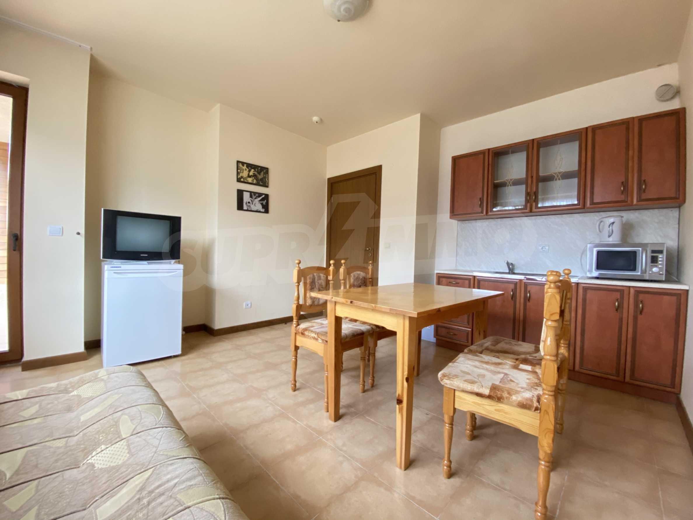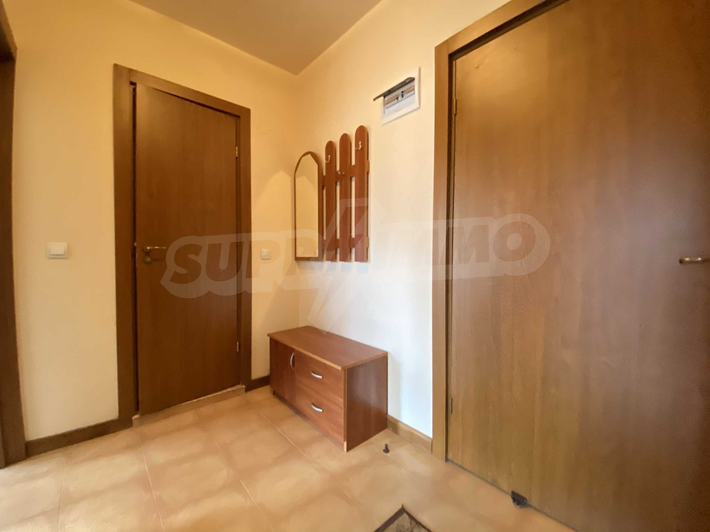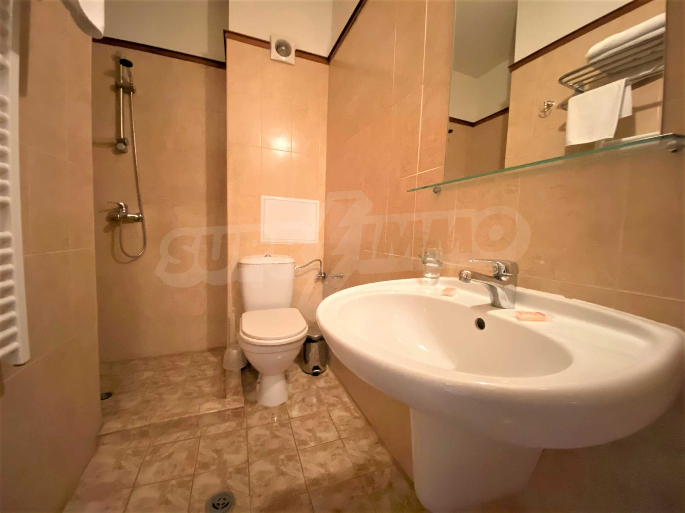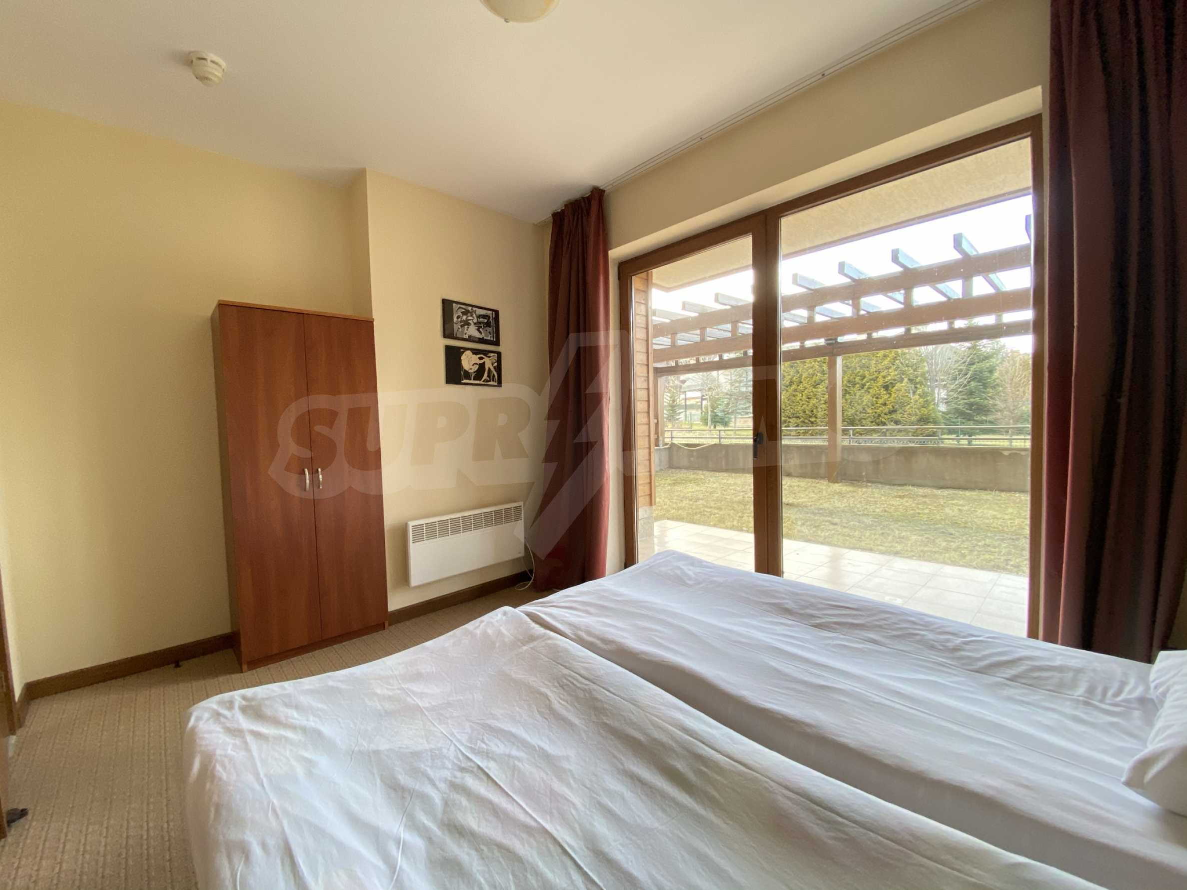 We present a one-bedroom apartment with an area of 105 m2., located in a gated complex meters meters from the ski lift in Bansko. The apartment consists of a kitchen with a living room, one bedroom, a corridor, a closet, a bathroom with a toilet, a terrace with a mountain view. The apartment is facing southwest. The property is suitable for both living and renting. The apartment includes a parking space.