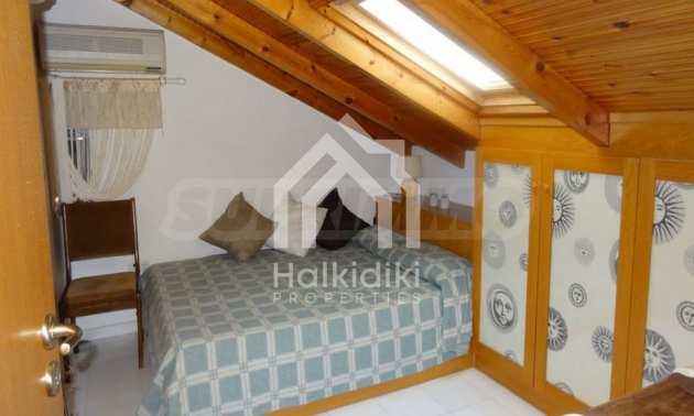 Beautiful maisonette 130 m², in Kassandra, Halkidiki, on a hill, with a wonderful sea view and with an eastern orientation. The property is 80 meters away from the beach and 1.000 meters away from the village center. It is split in three levels, consisted of a living room connected with the kitchen, four bedrooms, two bathrooms and a storage room. It has a large balcony, marble floors, aluminum joinery, security door, parking and alarm system pre-installation.