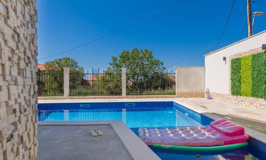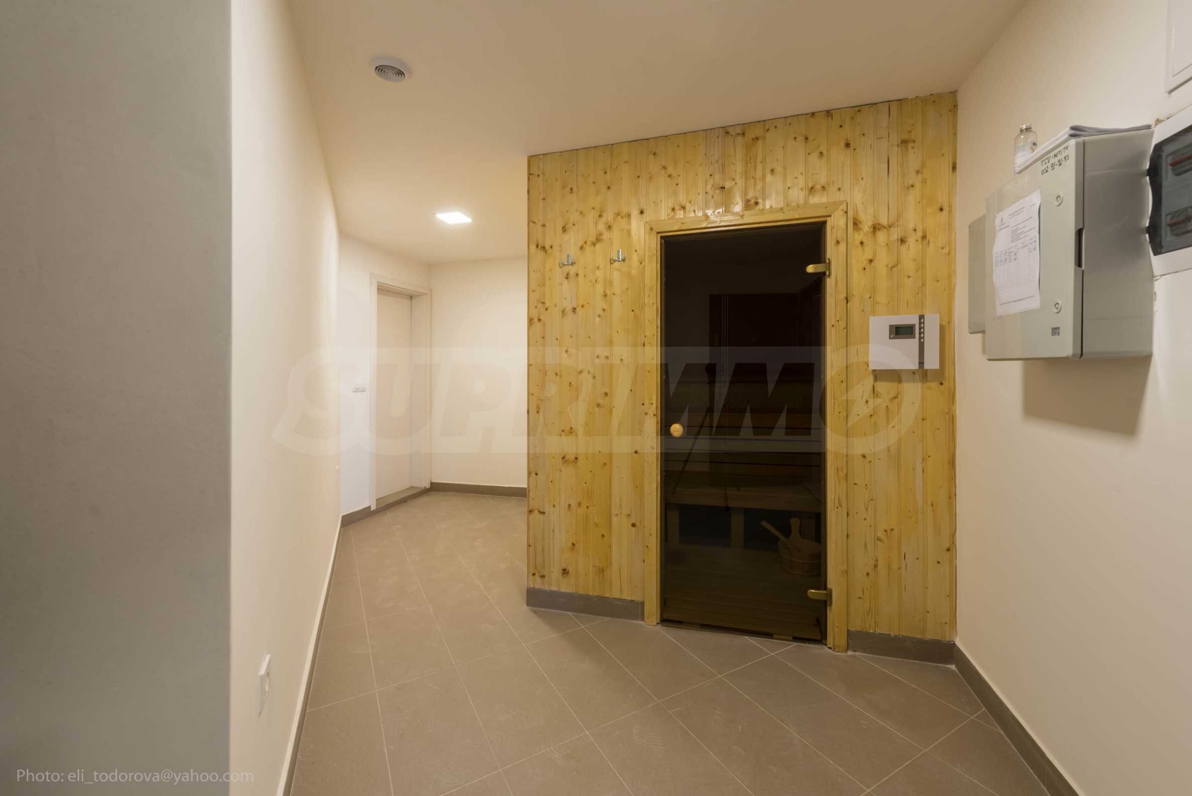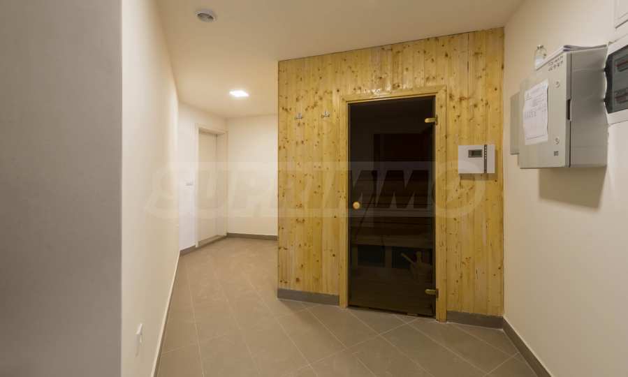The complex has a sauna, a spacious and bright gym and an outdoor pool.