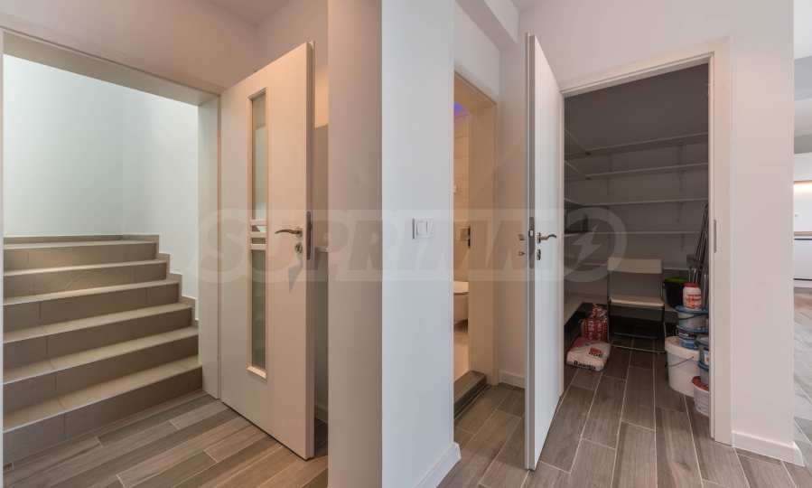 The penthouse has 3 separate bedrooms, two combined bathrooms - one with a bathtub and the other with a shower cabin, a large living room of 50 sq m, from which through the French windows you will be able to enjoy a beautiful view of the sea from morning to evening. There is also a closet, a laundry room, an entrance hall and stairs to access a covered terrace, on which you will surprisingly find a wooden pergola and a 360-degree panorama.