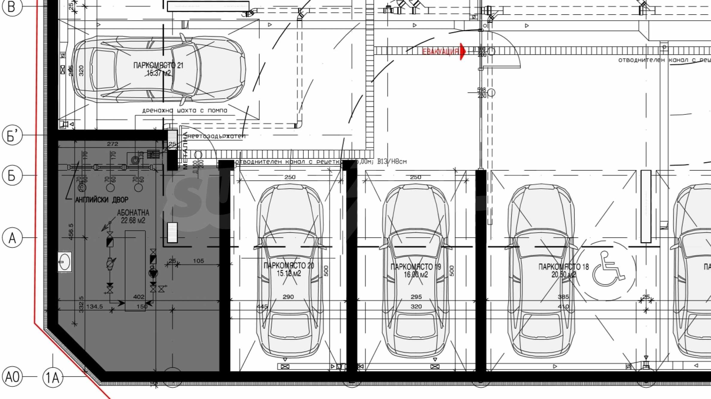 The garage has a total area of 26.89 m2. (net area 15.12 m2. + common parts 11.77 m2.) and is located in the basement of the building. Materials from leading world Austrian and German manufacturers are used, in combination with the best of the Bulgarian brands. We also have covered parking spaces in the basement of the building.
