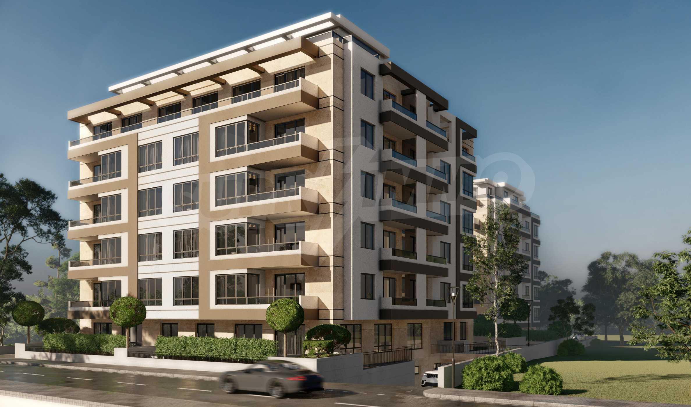 The buildings are 6-storey, with a ground floor and underground parking.