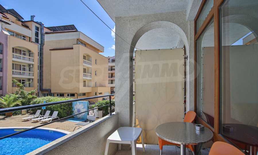The complex is closed, has a nice pool and security. Call us to organize a tour of the studio in this wonderful coastal complex in Primorsko!