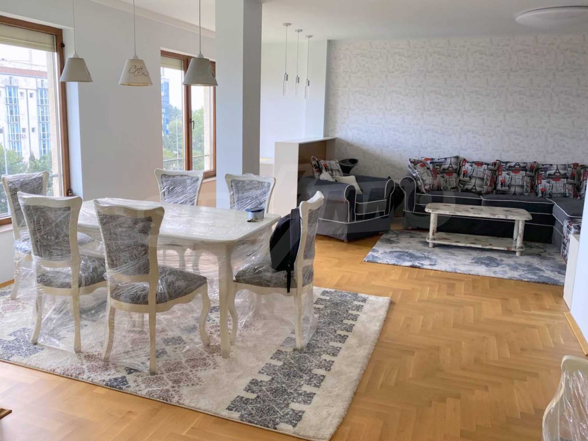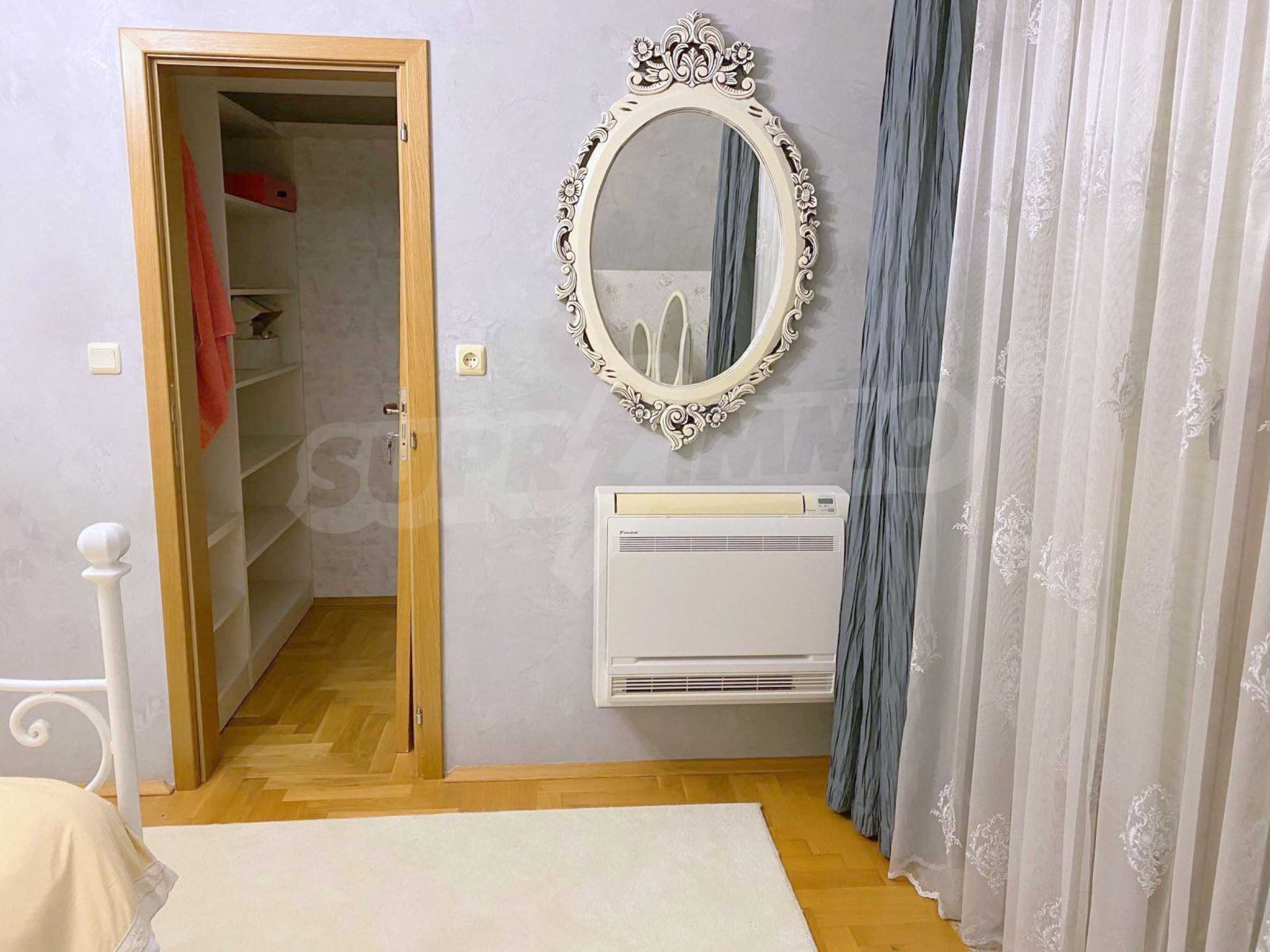 The apartment is offered fully furnished and equipped, with excellent finishing works with high quality materials and first-class furniture. The floor is made of oak parquet.