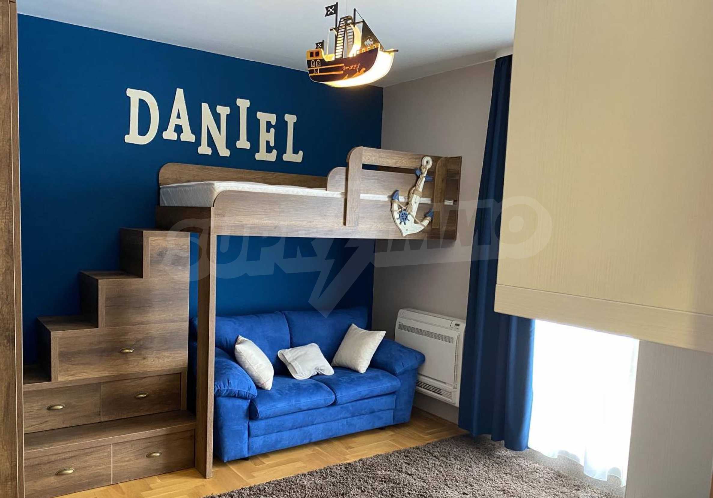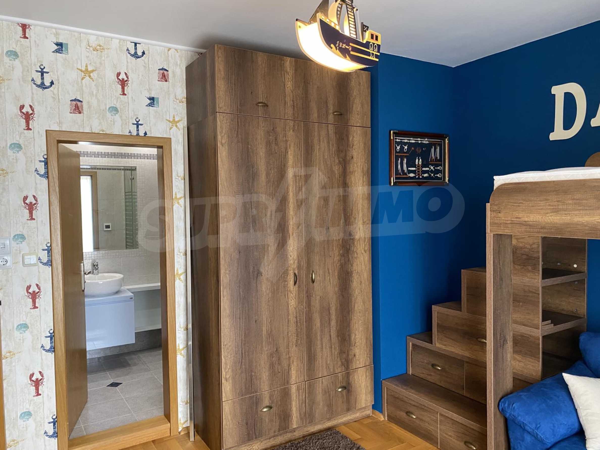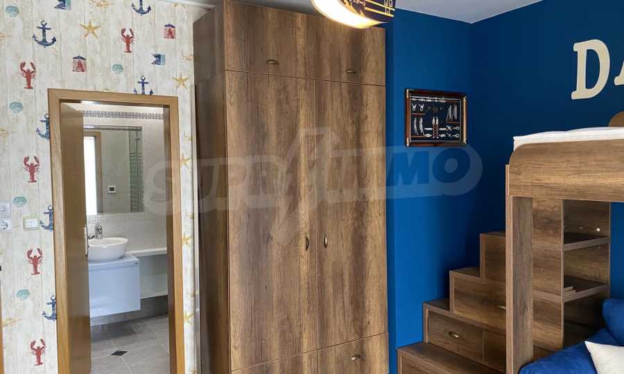 The cozy two-bedroom property on two levels has a parking space and is located in the area of Evksinograd, near the main boulevard and public transport stops.