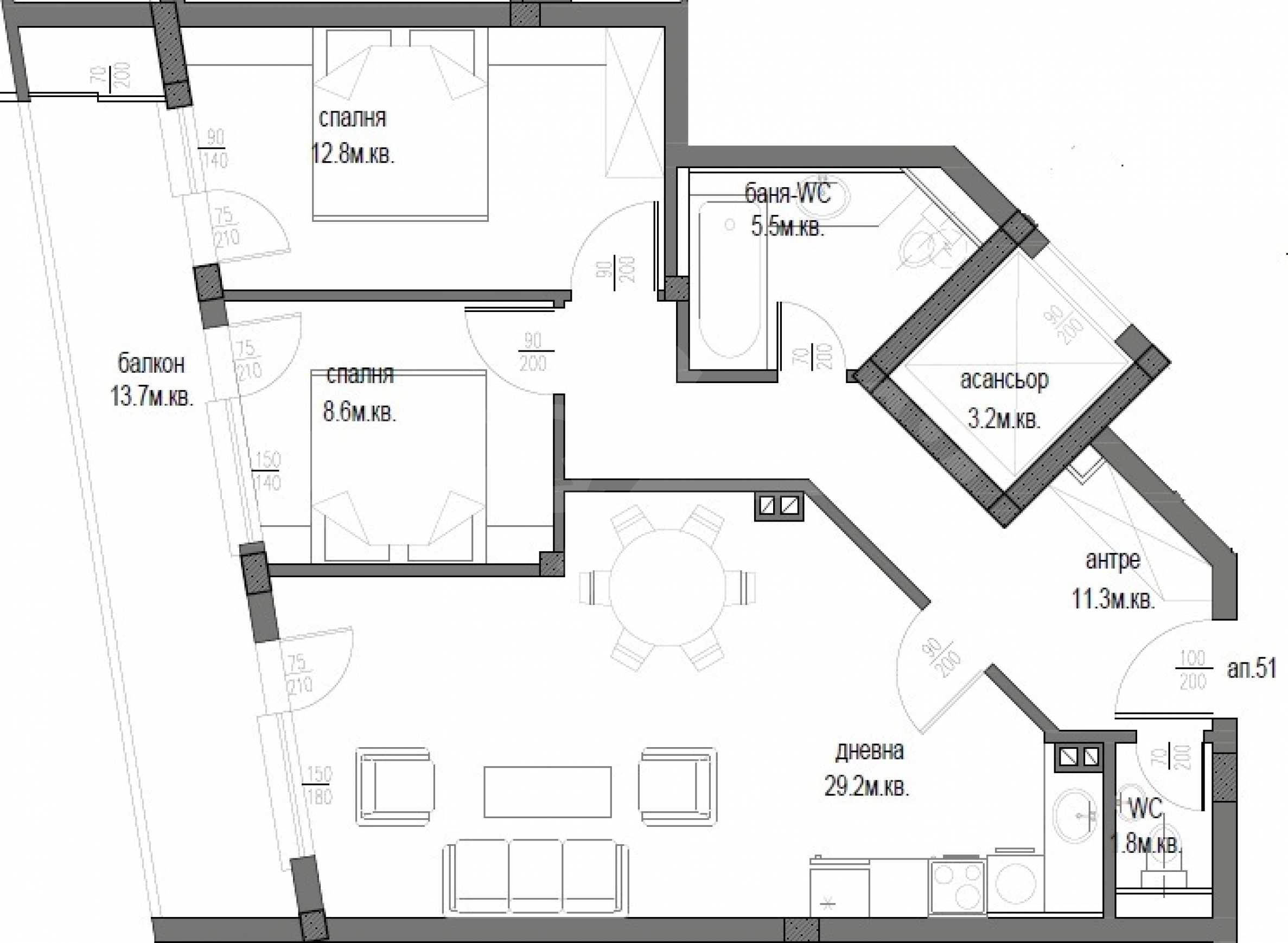 We present for sale a new, two-bedroom apartment in a new building in the preferred area of Varna - Levski, just 3 km from the city center.