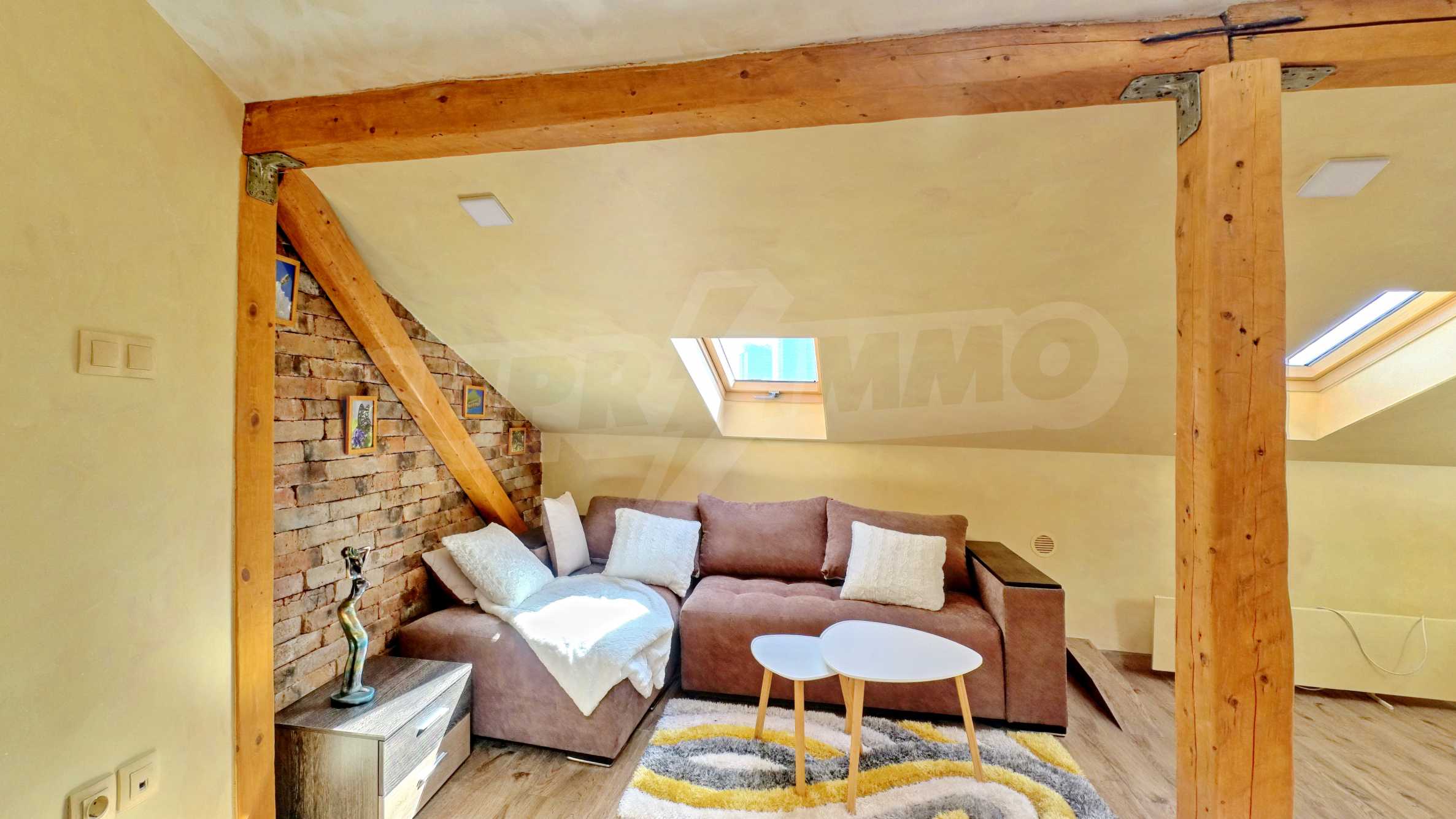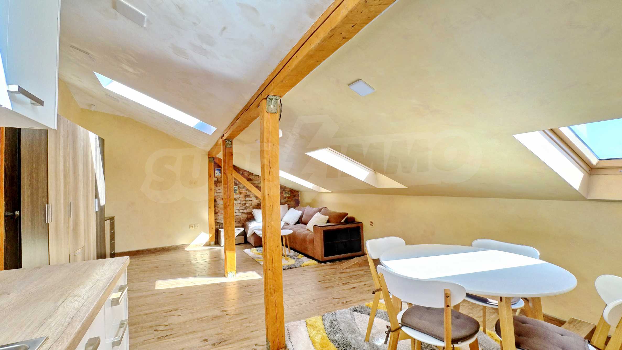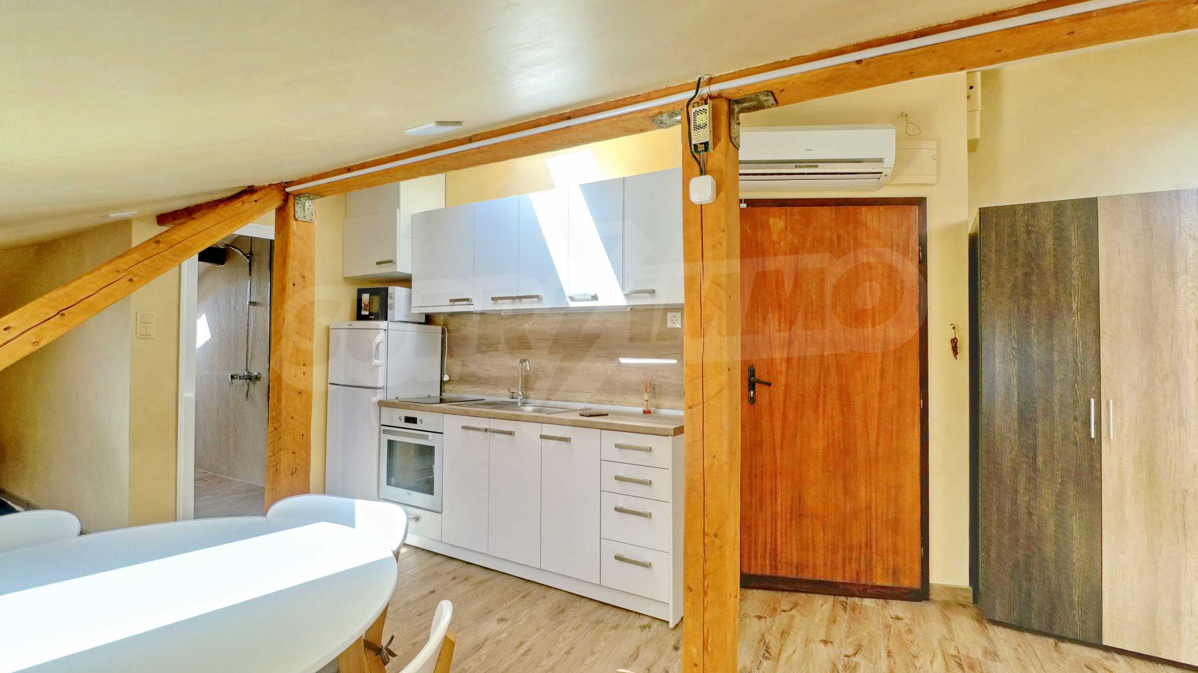 It consists of a spacious room with living room, kitchenette, bedroom and bathroom.