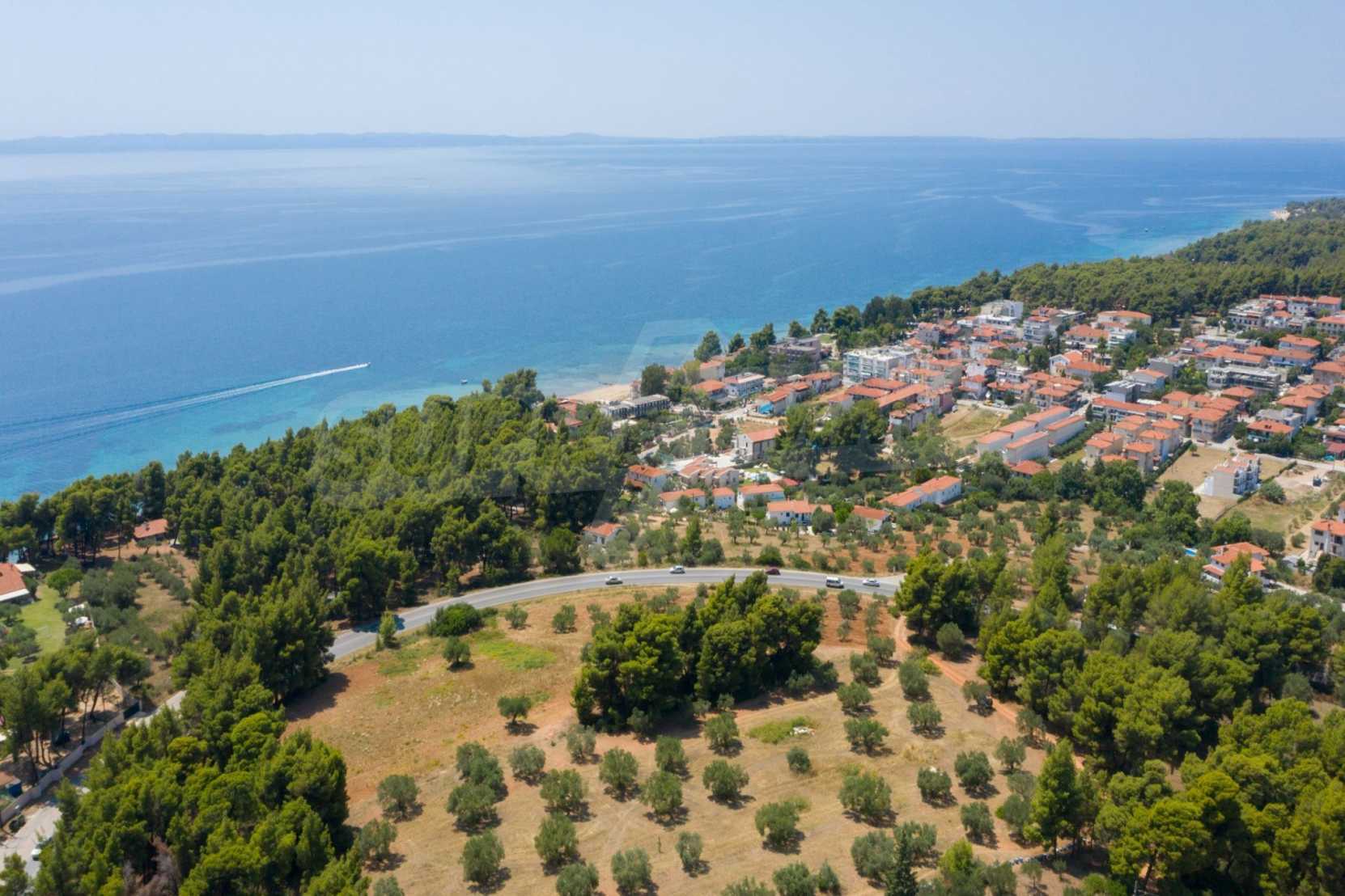 Excellent, flat field, 9.000 m²,in Sithonia, Halkidiki. It is located outside the village and has wonderful natural beauty and sea view. It is 250 meters away from the beach and 400 meters away from the center of the village. It has unobstructed permanent view, a southern orientation and a large olive grove inside. It is complete and buildable and due to its size it is perfect for the construction of detached houses, for professional exploitation but also for the construction of a villa.