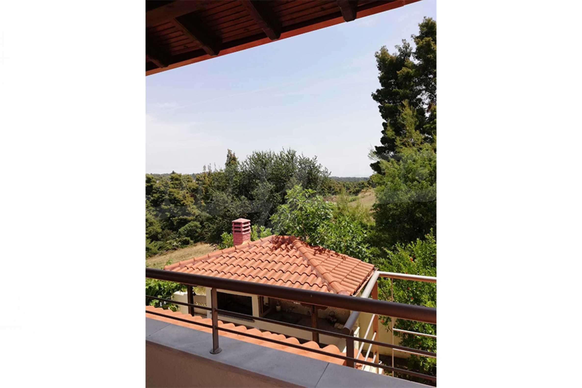 Maisonette, Kassandra, 130 m², sea view, open view, garden view, Unobstructed permanent view, Open field, Western orientation, Outside village, Sea view, Close to sea, Southern orientation, Fenced, Lighted, Parking, Fitted closets, Fitted kitchenware, Furnished, Appliances, Spacious garden, Barbecue, Security door, Window screens, Can be separated into two houses, Big balconies