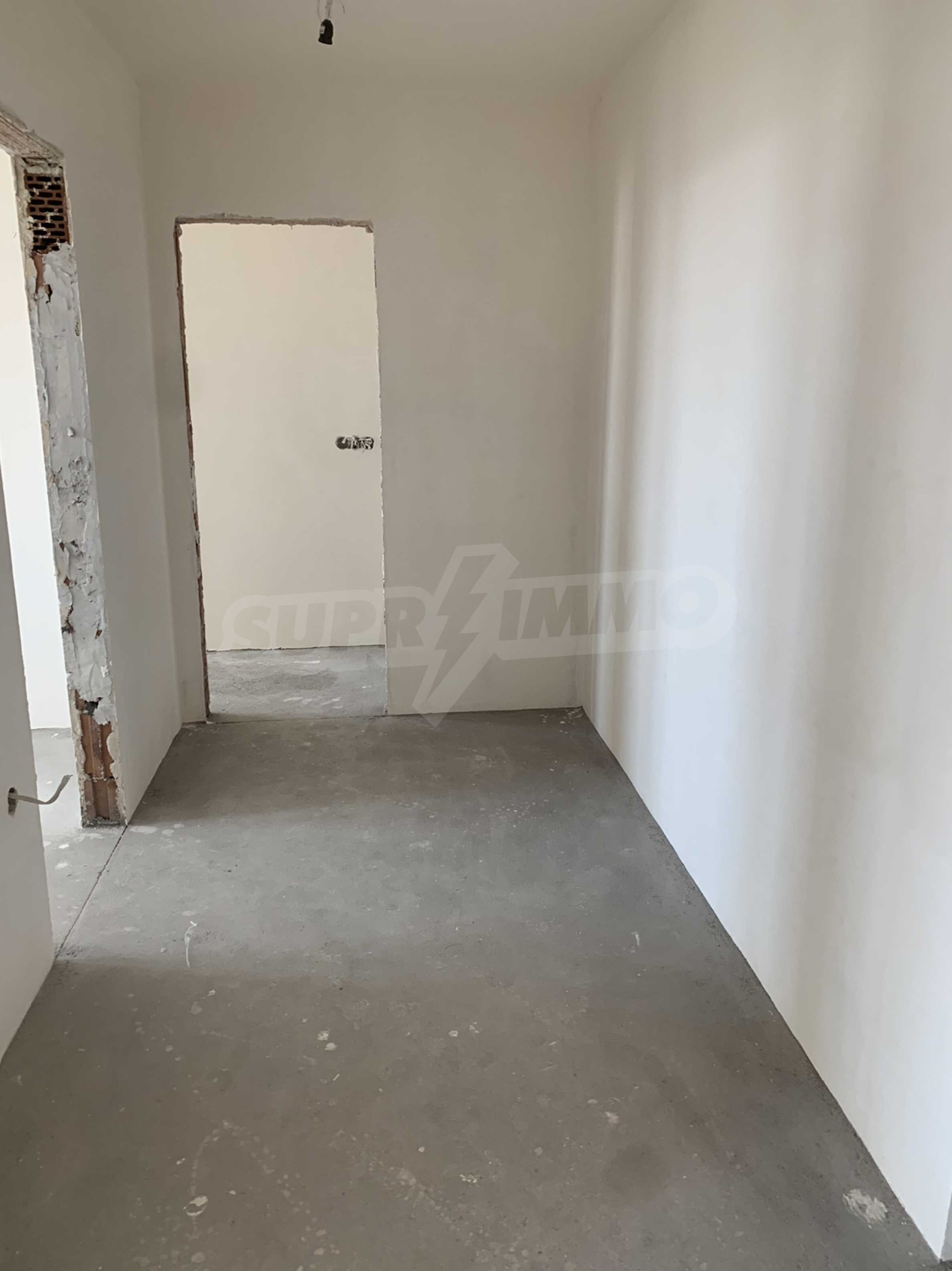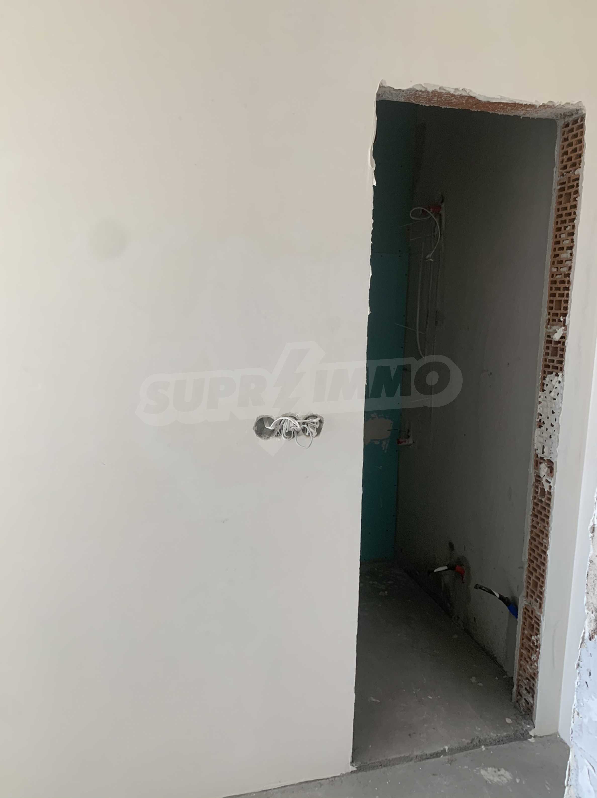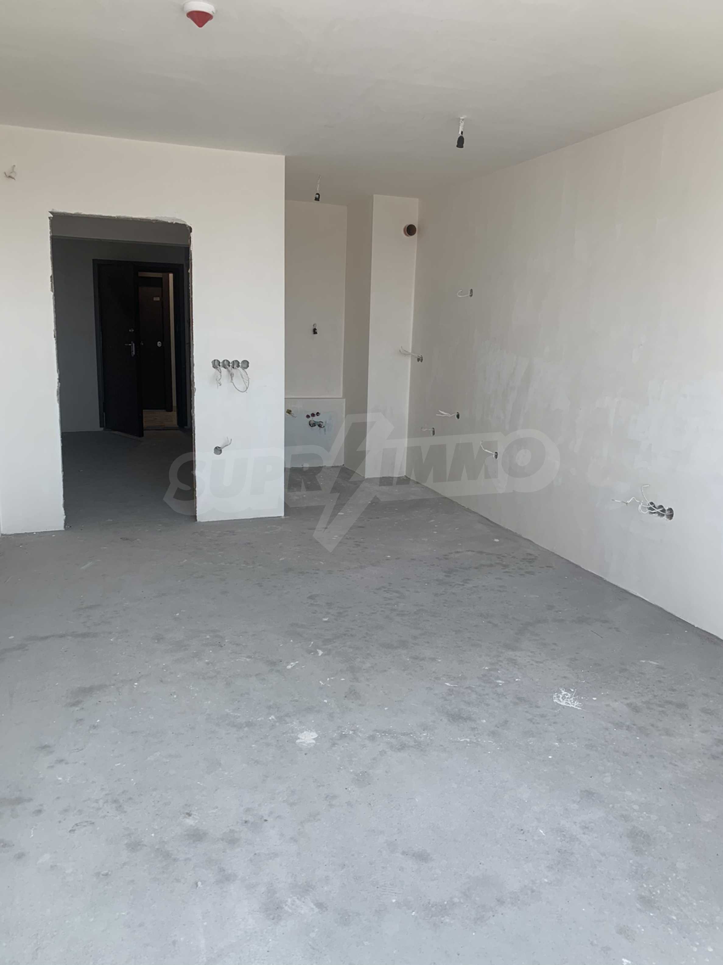 The apartment has a total area of 111 m2 and consists of a spacious living room with kitchen, common terrace, two bedrooms and two bathrooms, corridor. Available in BDS, with attractive French windows, high-class PVC windows, central heating, communications, plastered walls and screed floors.
