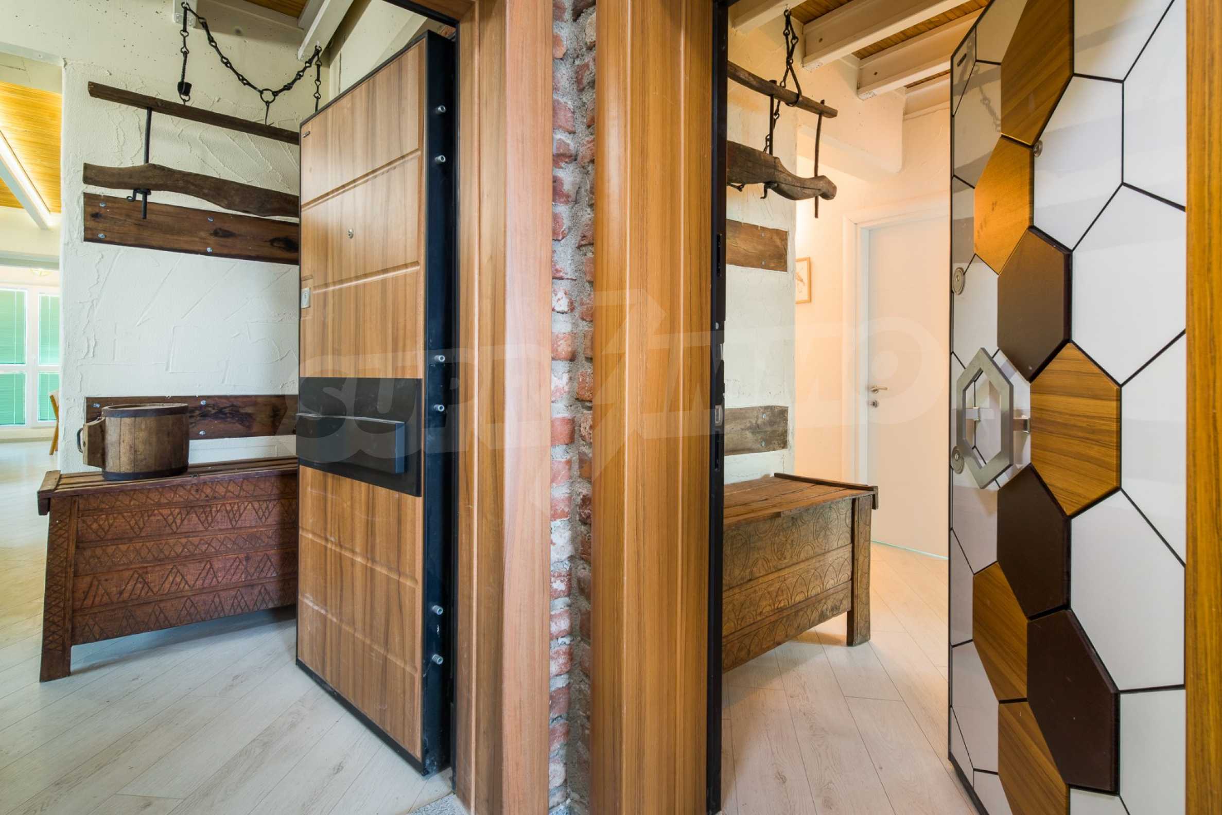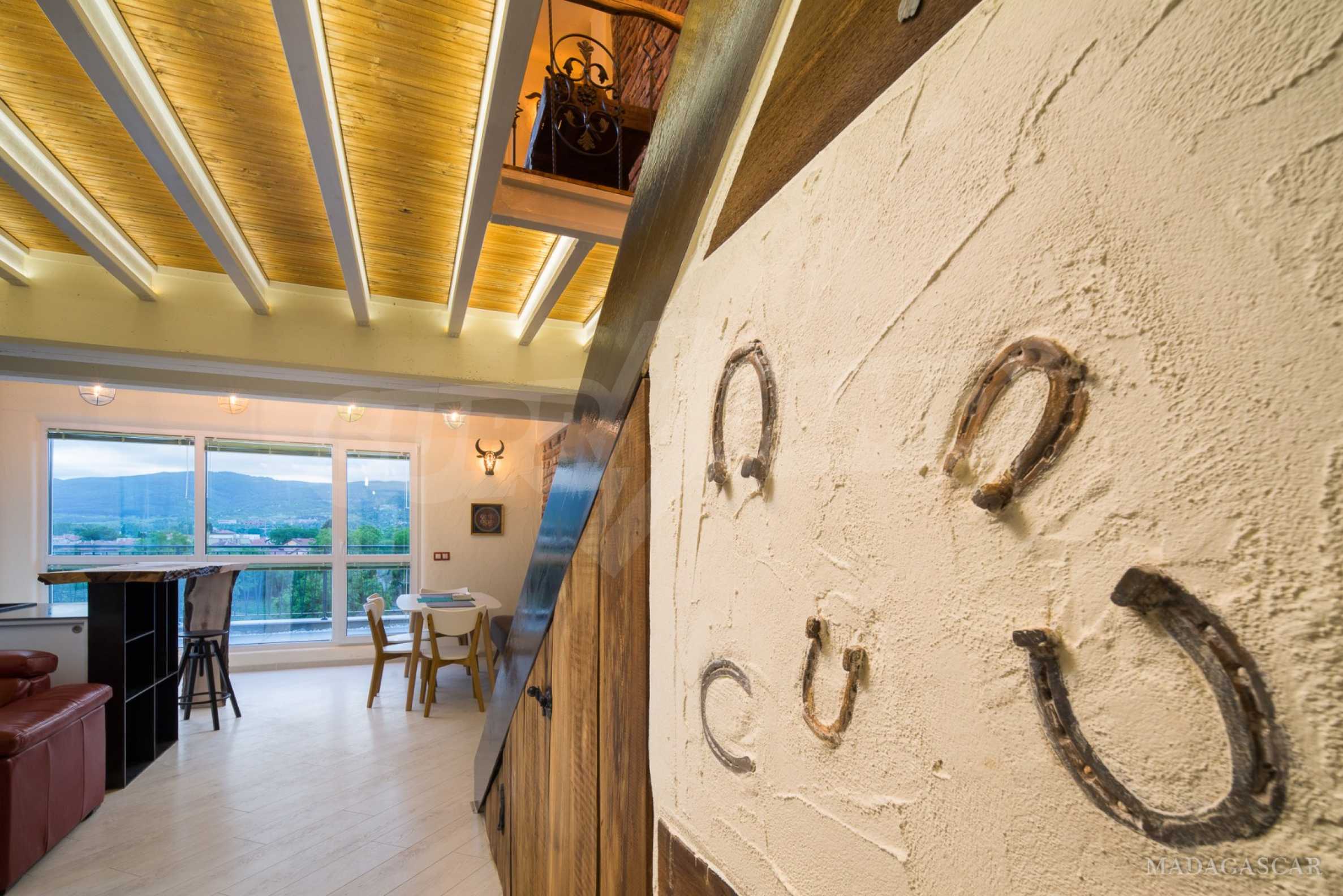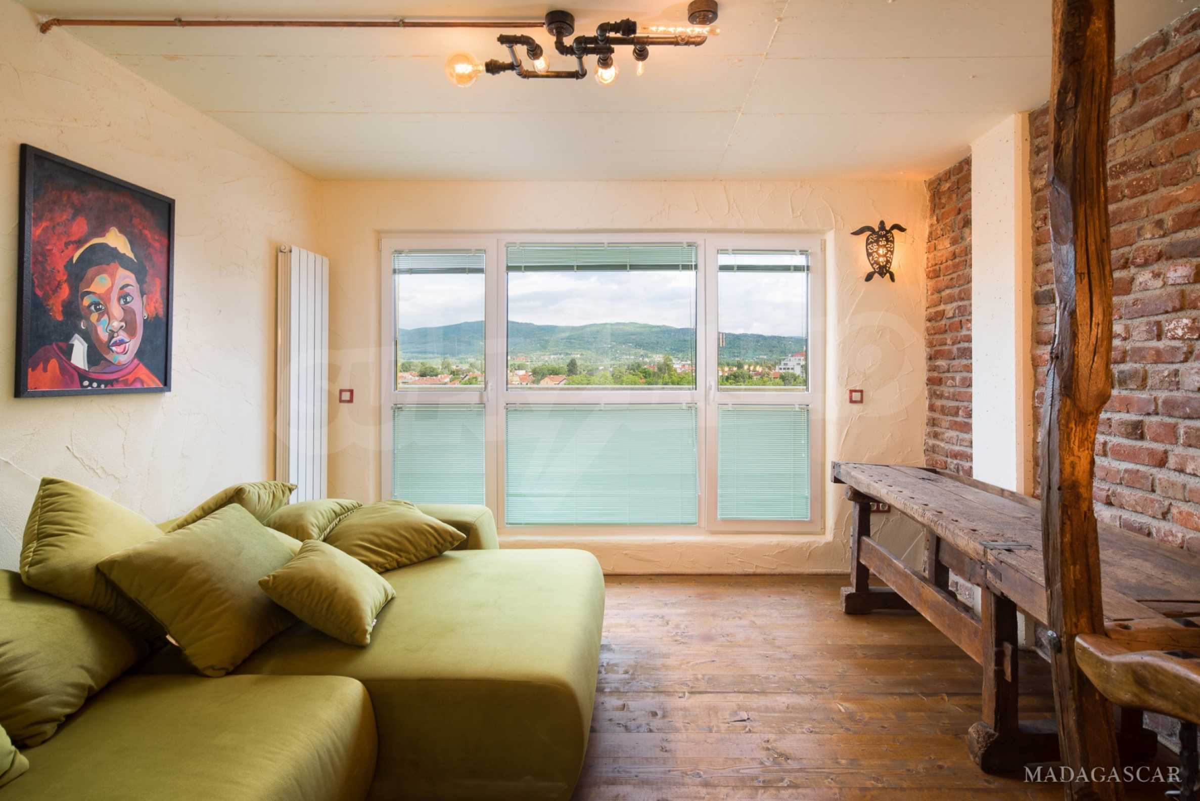 Art, bright, stylish, unique are just some of the things that can be said about this impressive apartment. The apartment is located on the fourth and fifth floor of a five-storey residential building. The exposure of the apartment is south / west / north / east, with beautiful panoramic views of the mountains and the city.