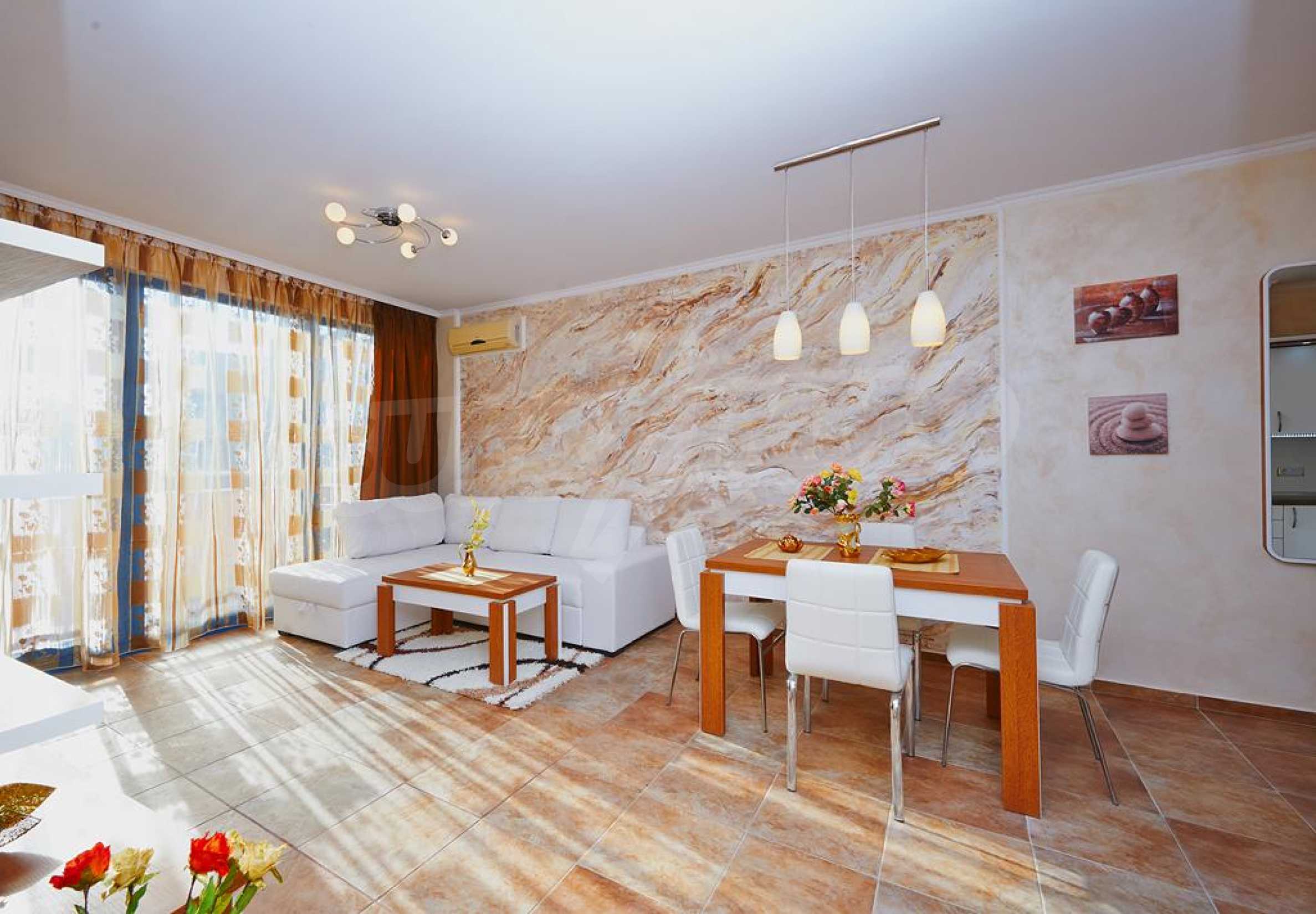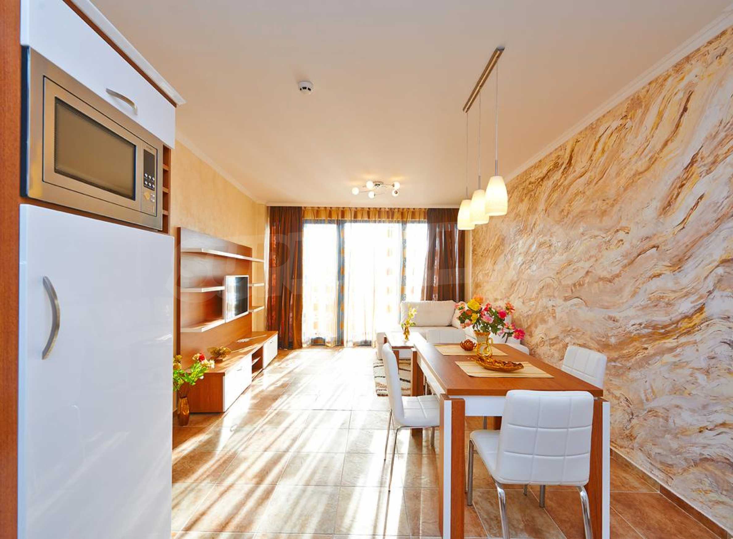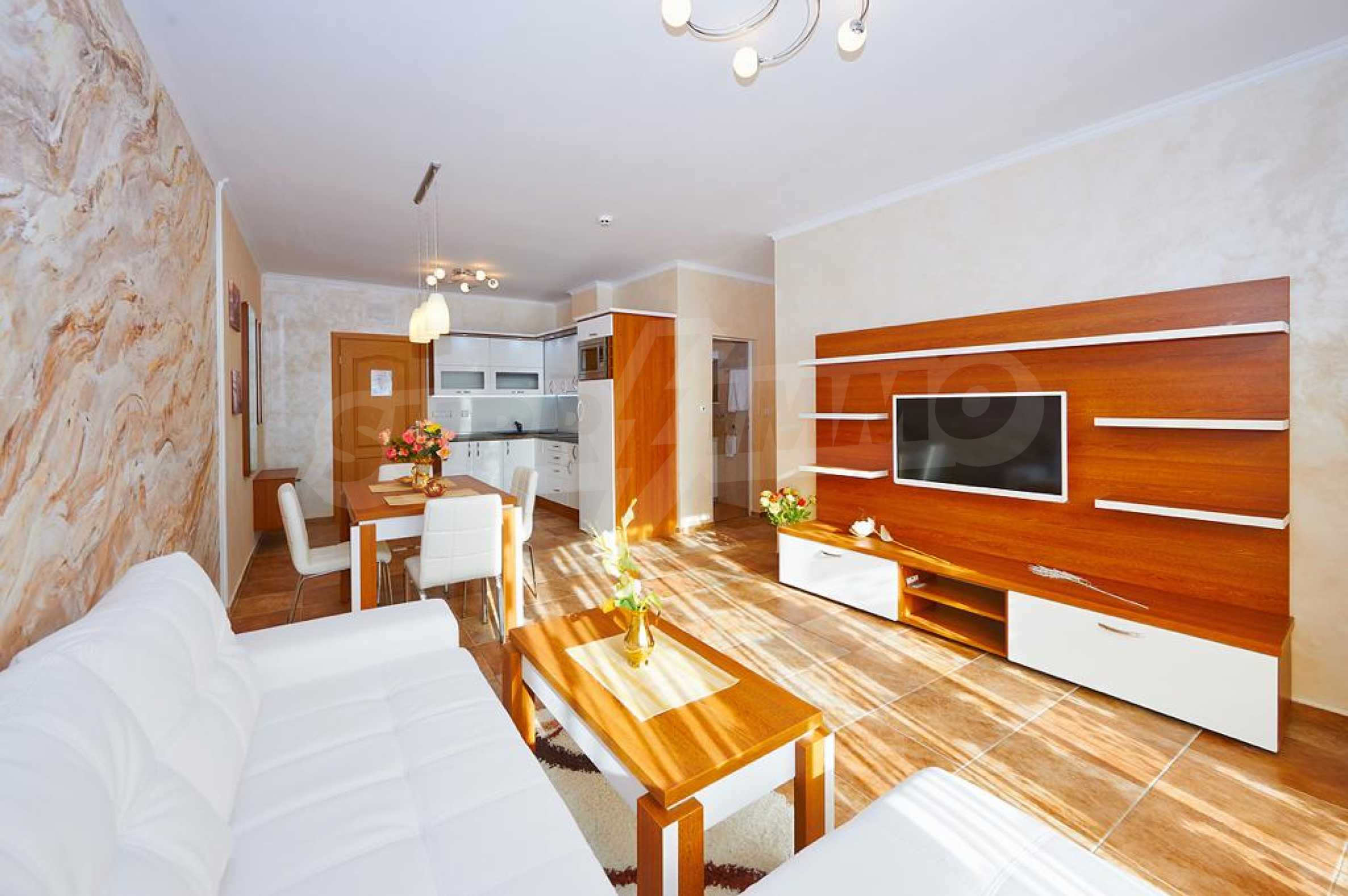 We present to you a first-class and quality furnished one-bedroom apartment of 83 m2 for sale, in a complex with amenities, located only 250 meters from the beach of Sunny Beach.