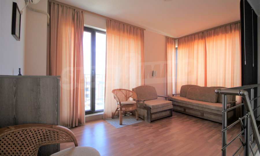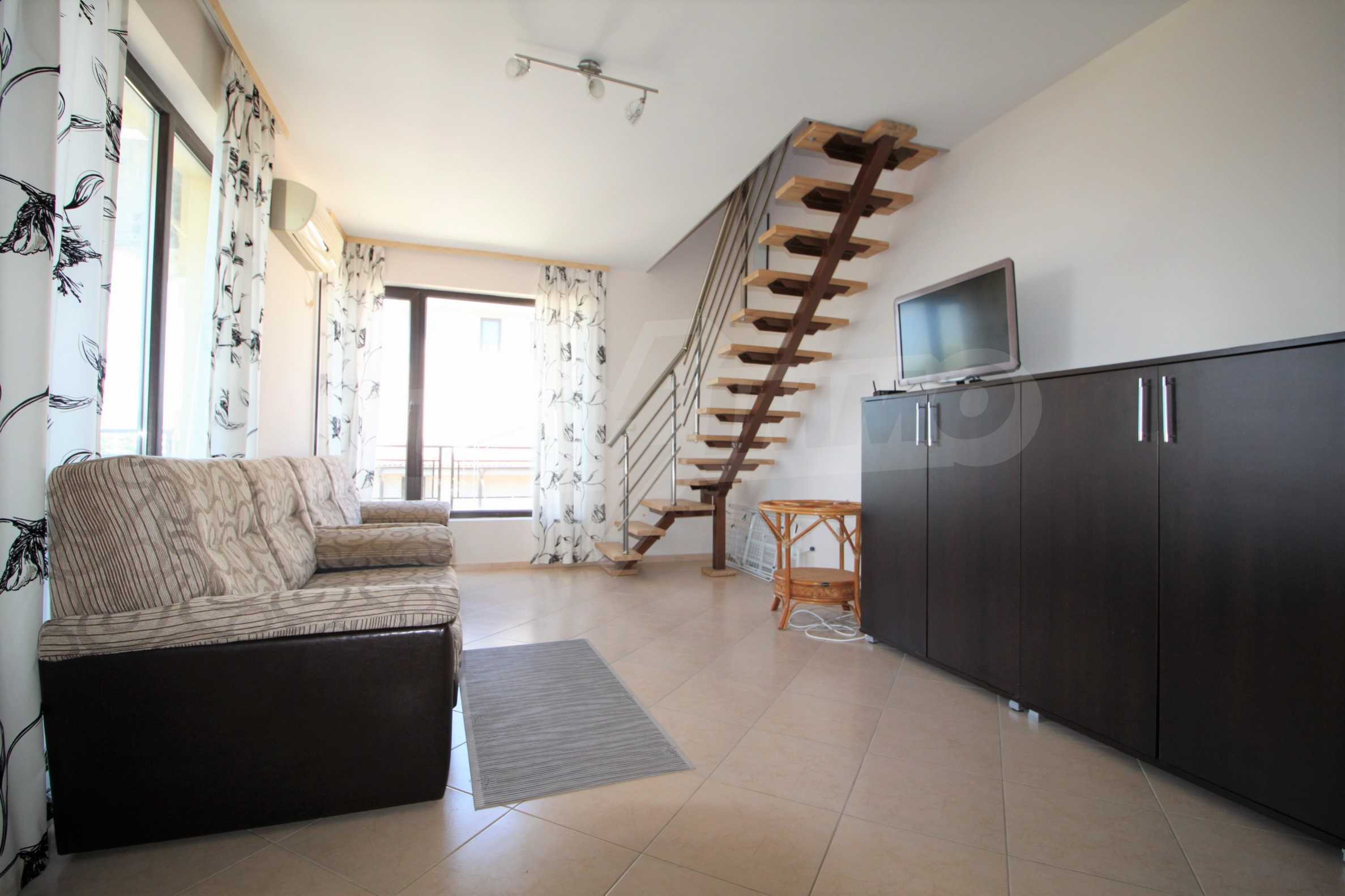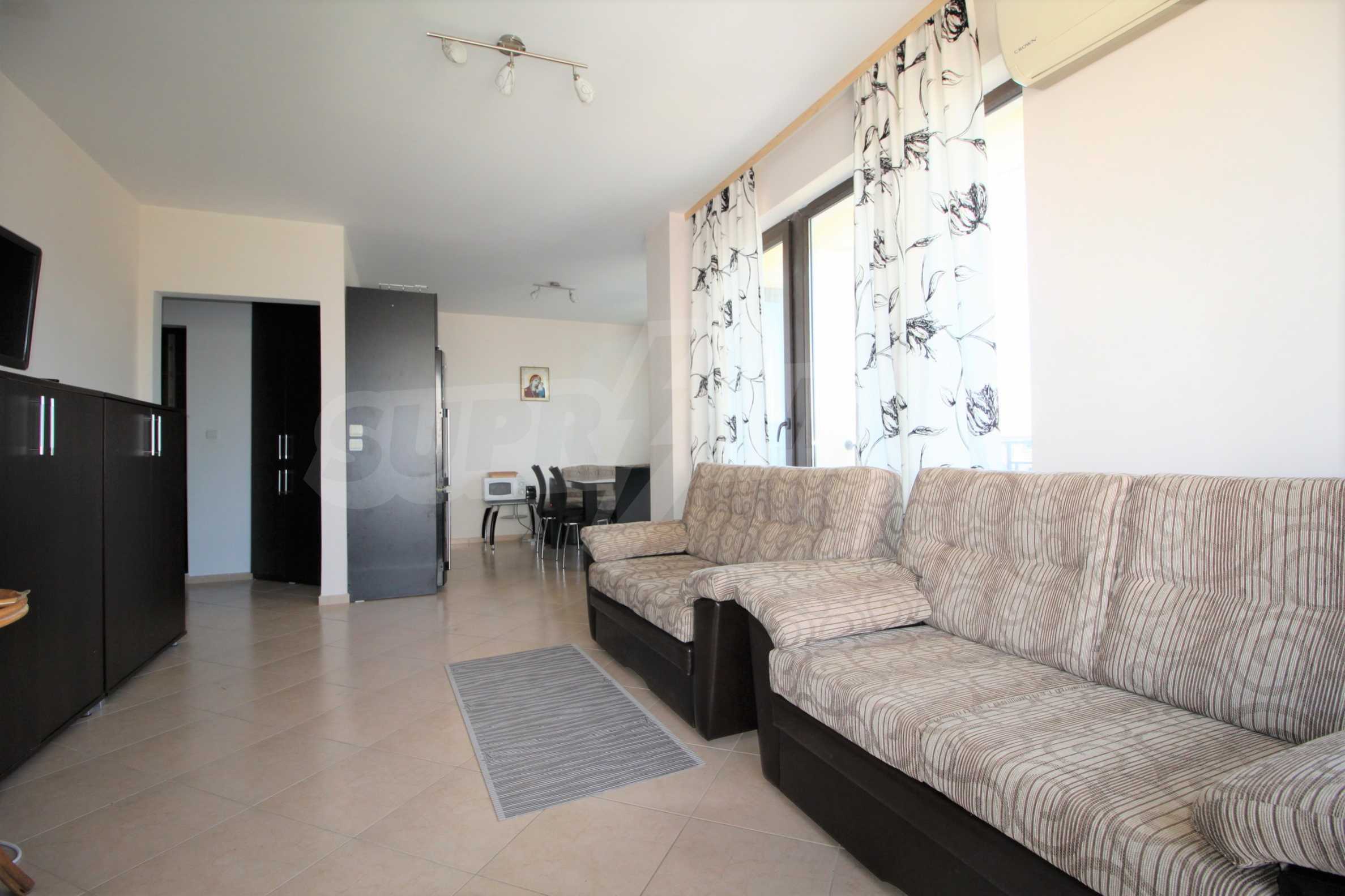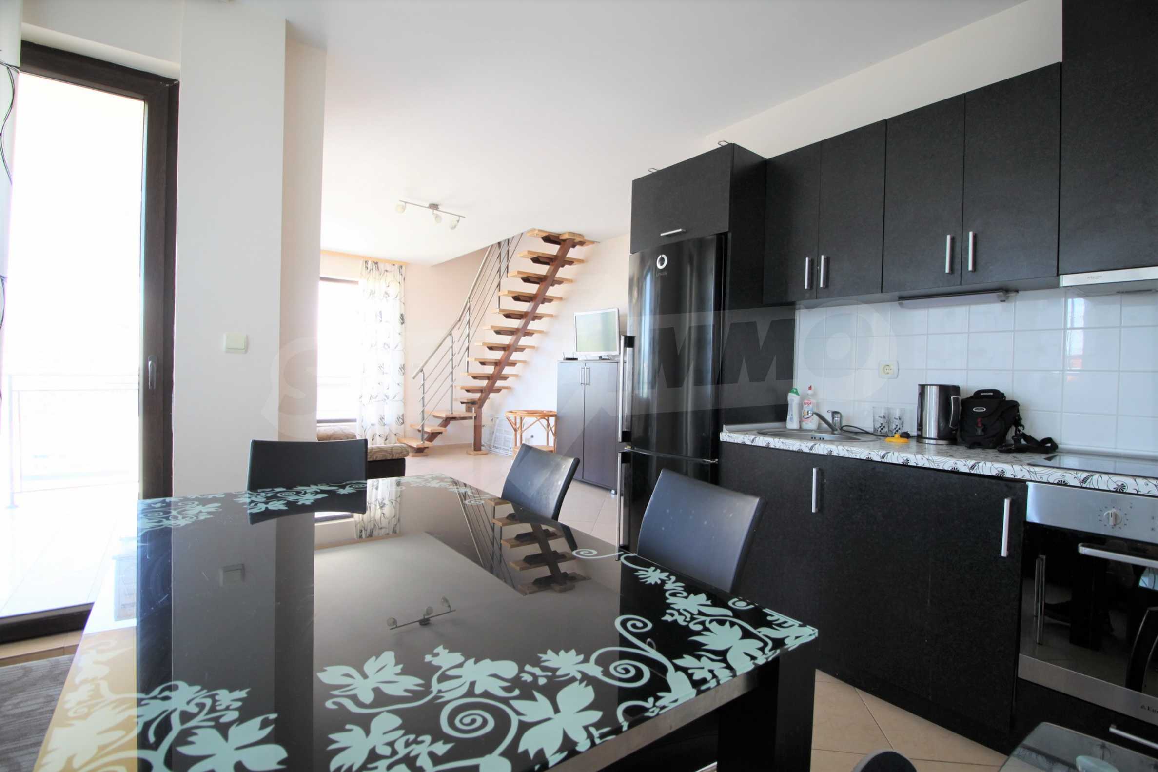 The apartment of 105 m2, which we present for sale, is a penthouse with two comfortable bedrooms, located on the 5th floor in a complex in the area of the water park on Sunny Beach.