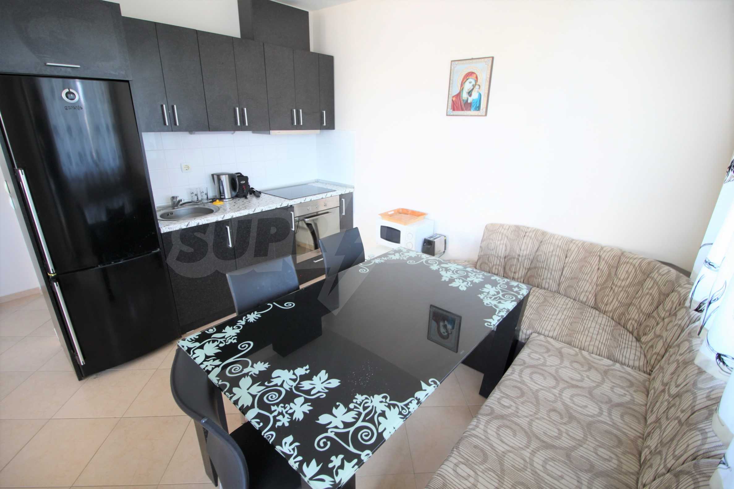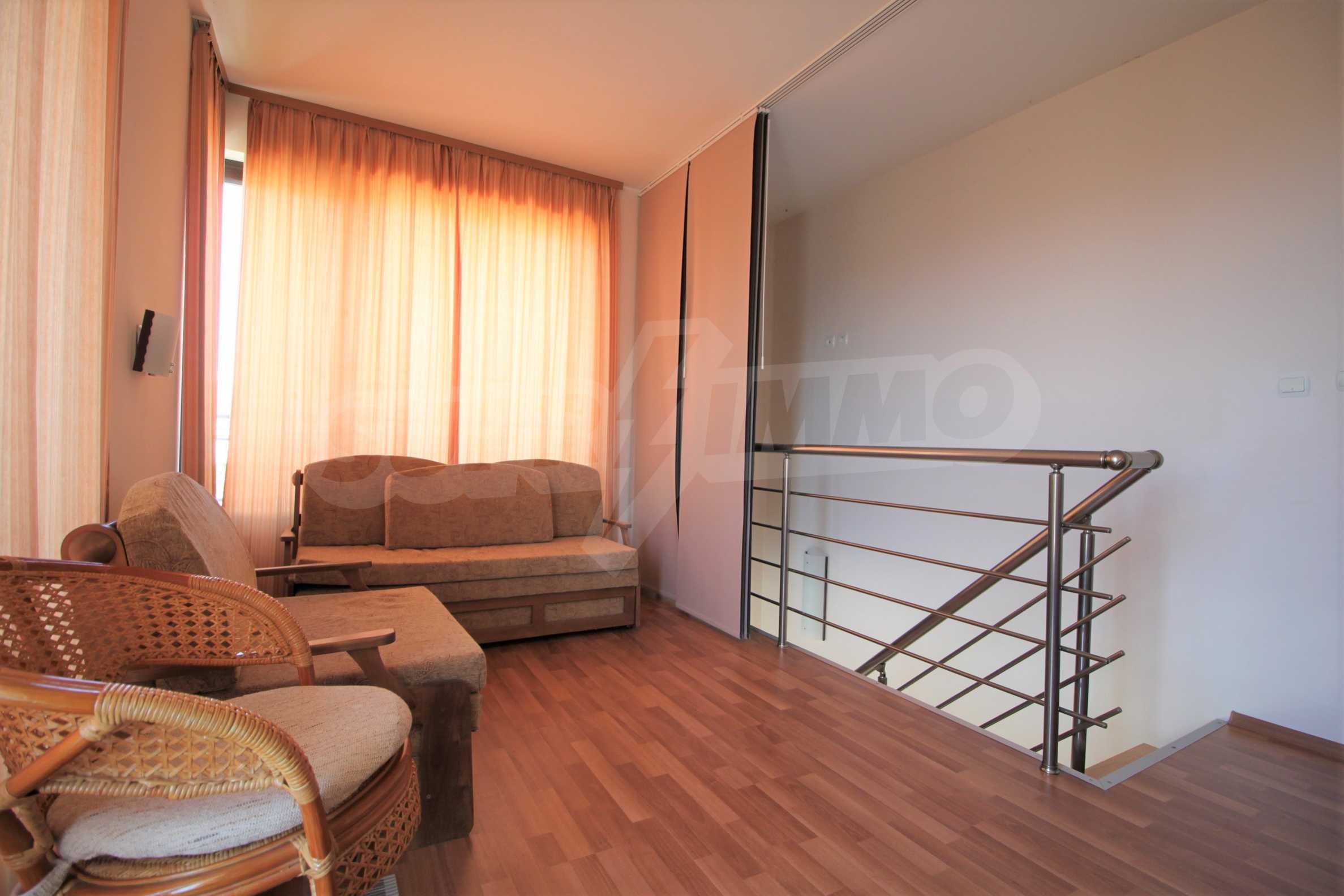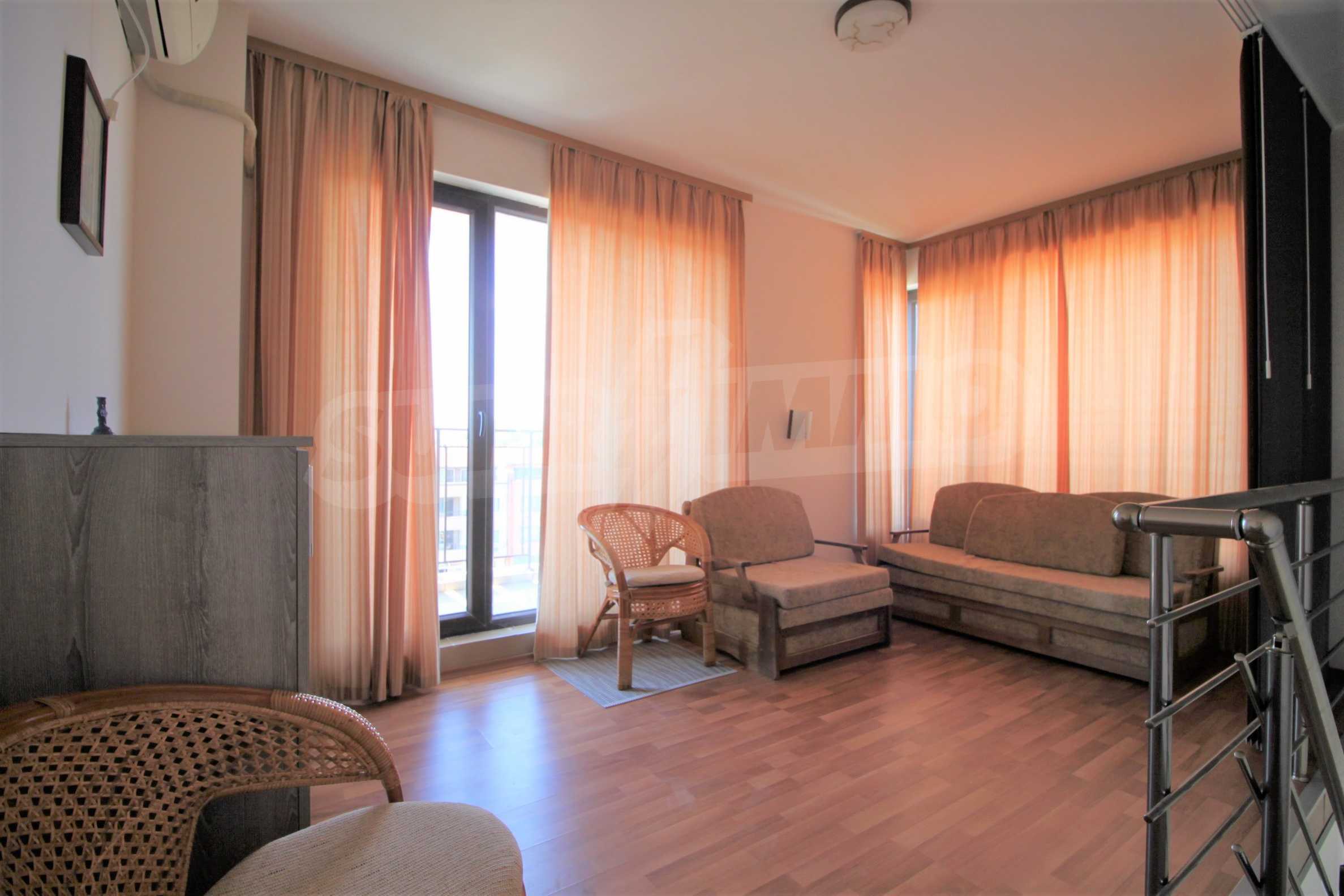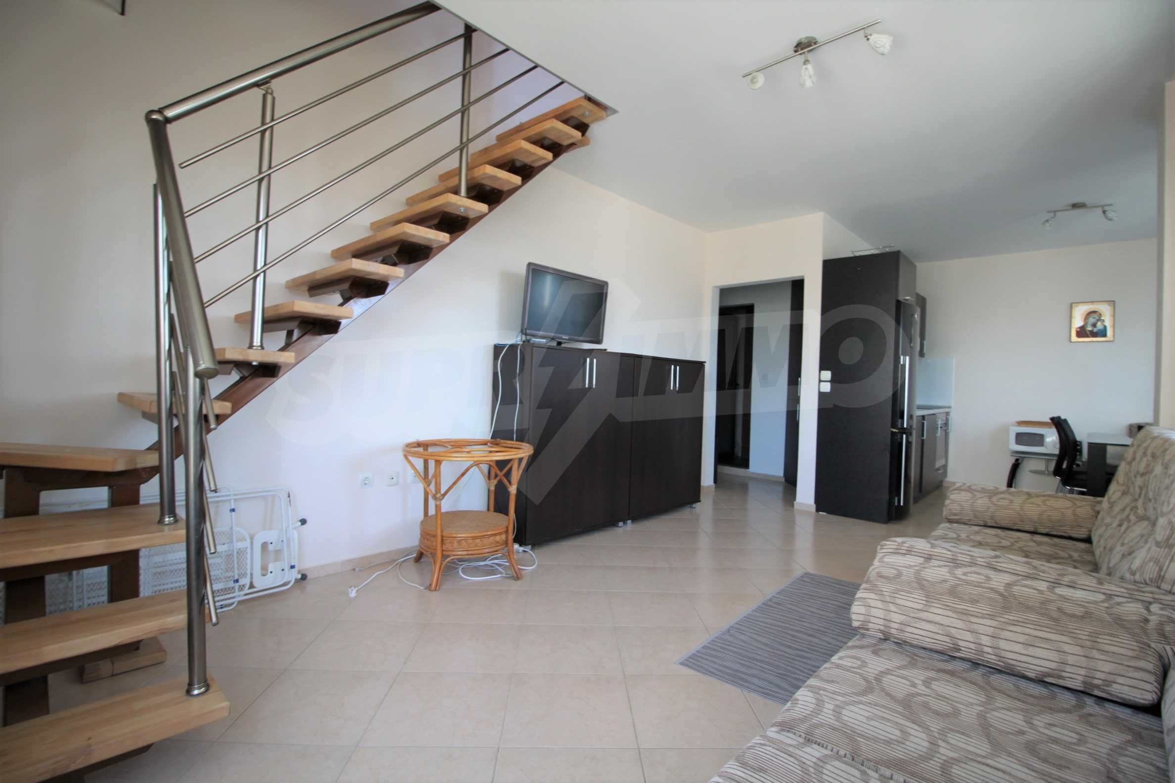 The apartment of 105 m2, which we present for sale, is a penthouse with two comfortable bedrooms, located on the 5th floor in a complex in the area of the water park on Sunny Beach.