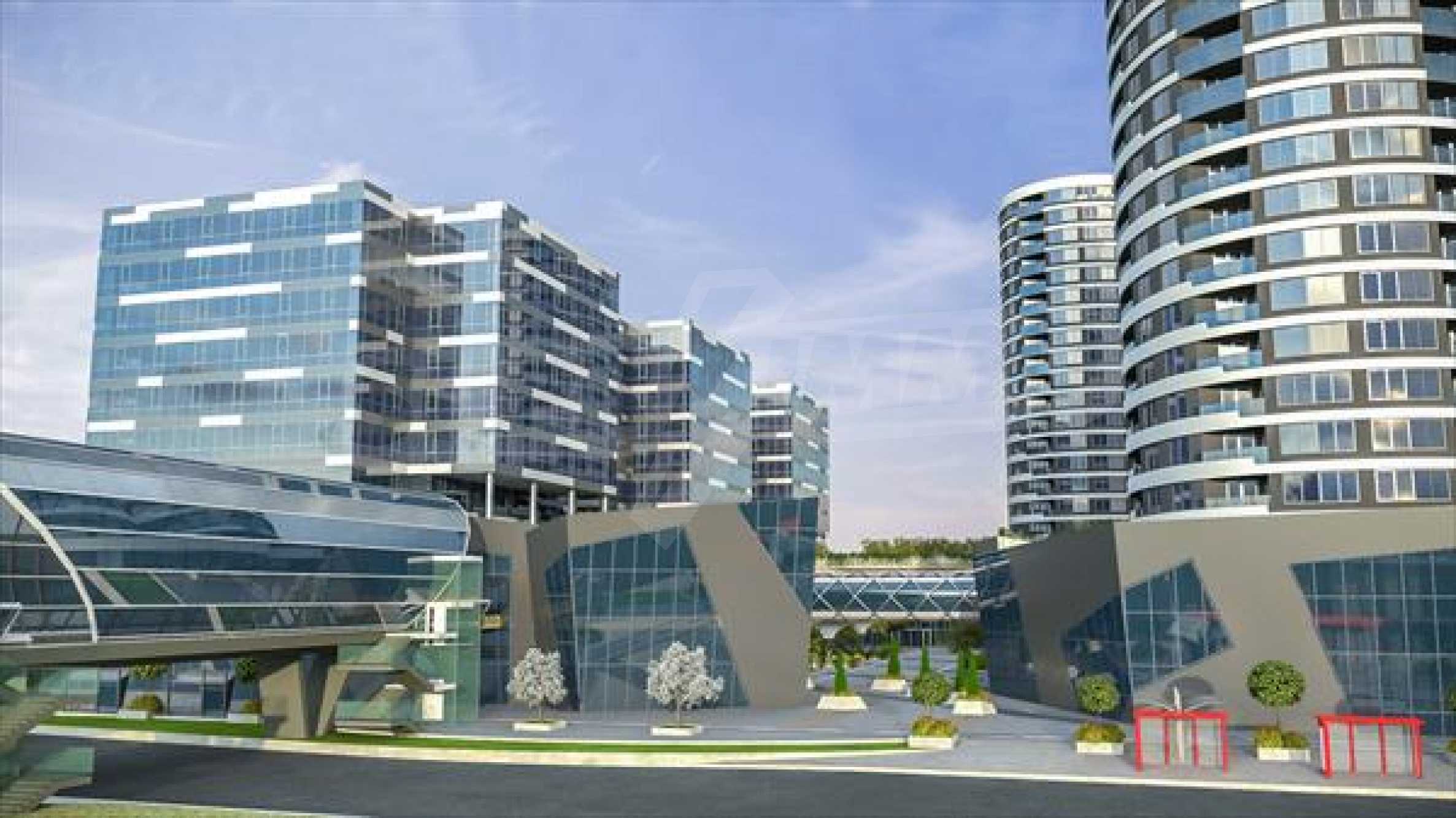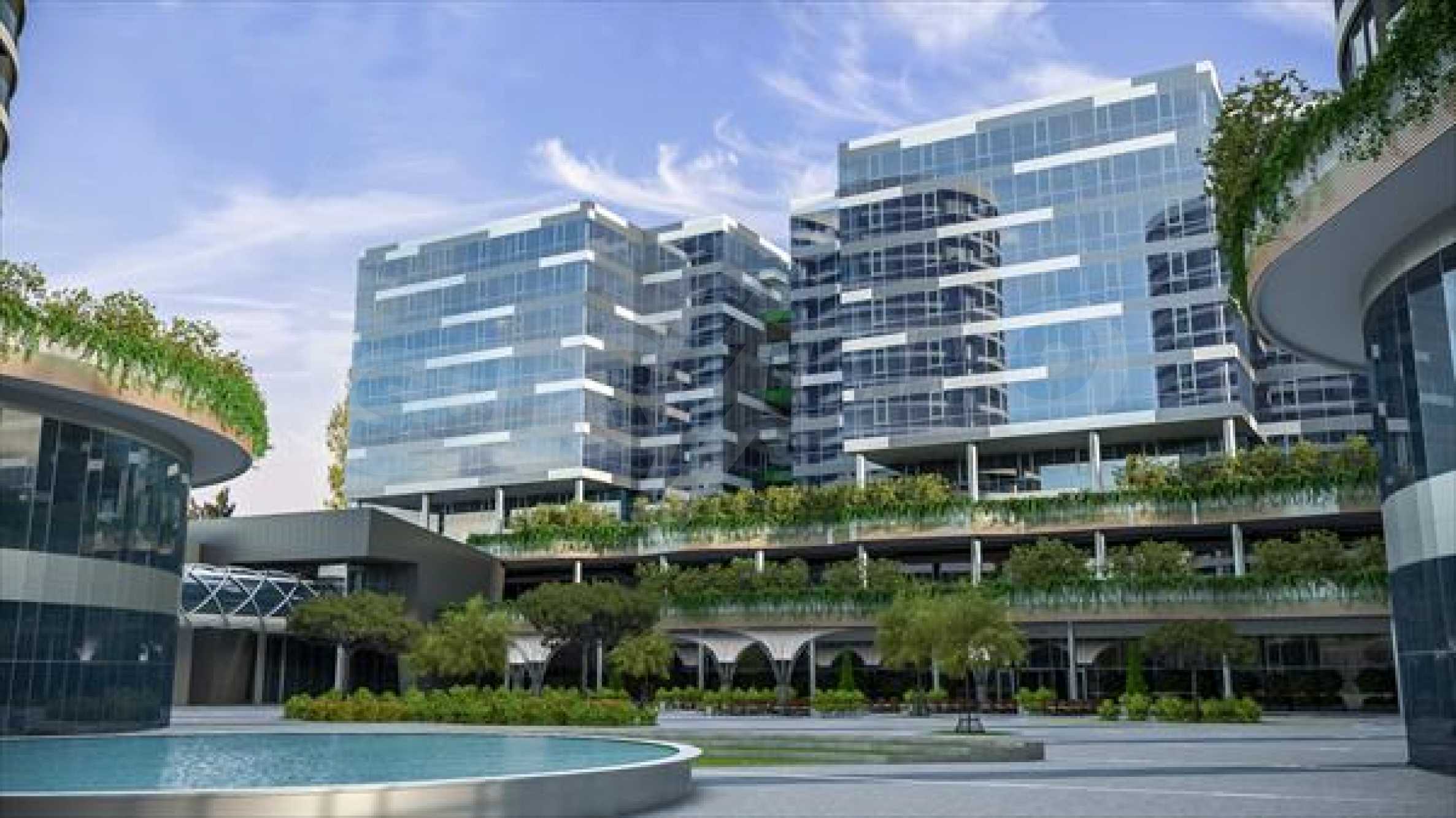 A newly built complex will consist of several residential buildings, 3 office buildings "class A" with a capacity of up to 5,000 jobs, underground parking on 2 levels with 1555 spaces (500 parking spaces adjacent to business buildings, 690 parking spaces to residential buildings, as well as and 360 parking spaces for public use).
