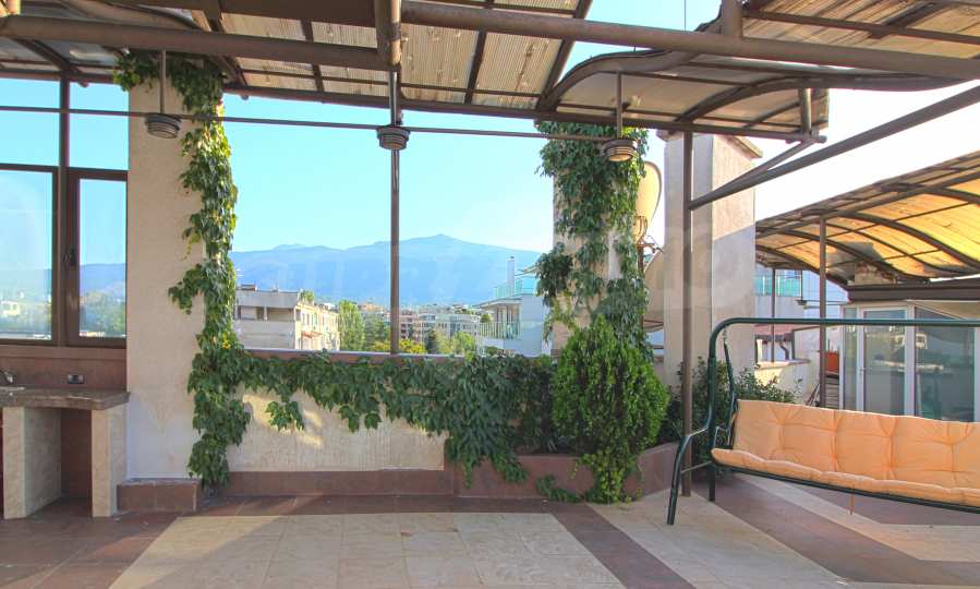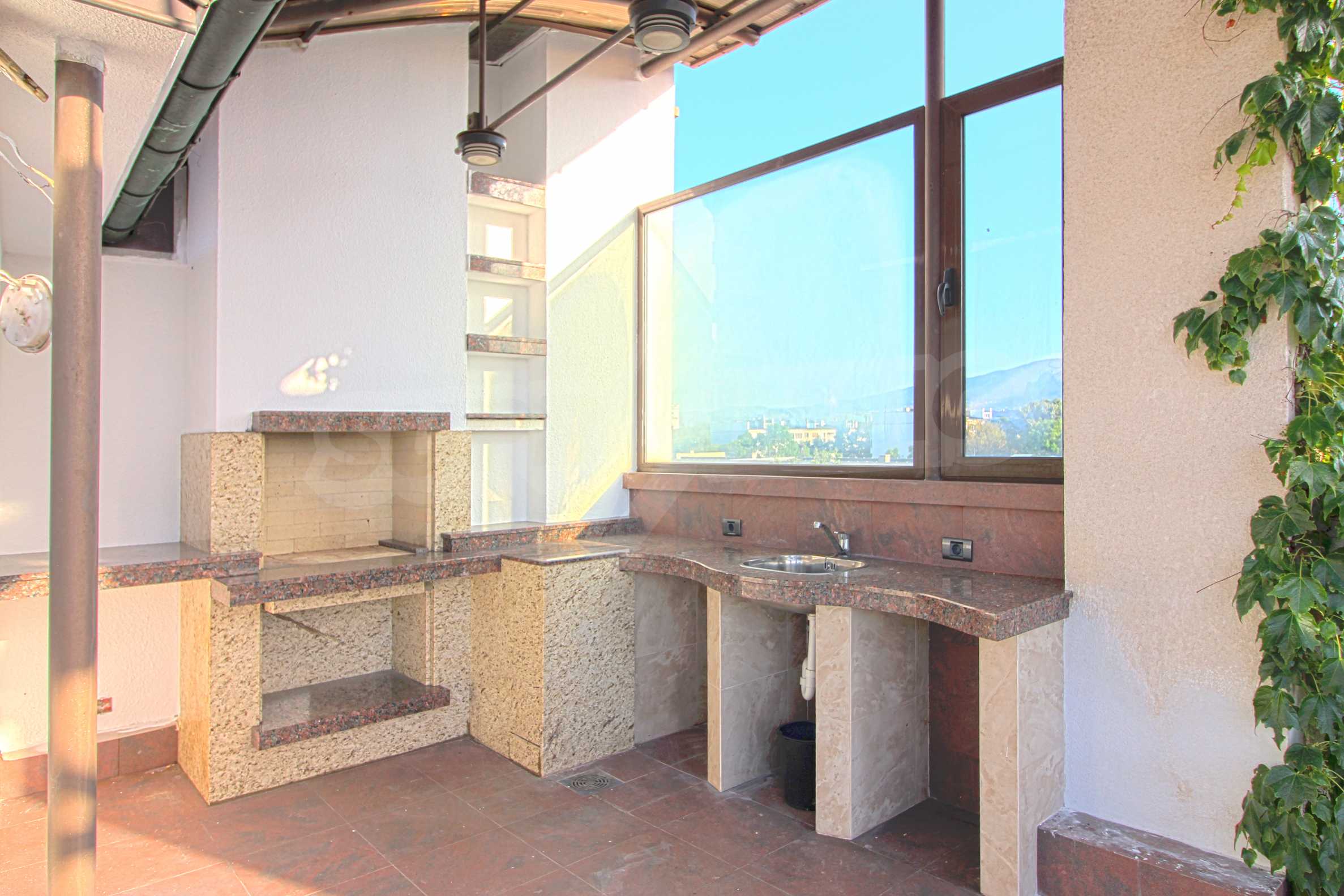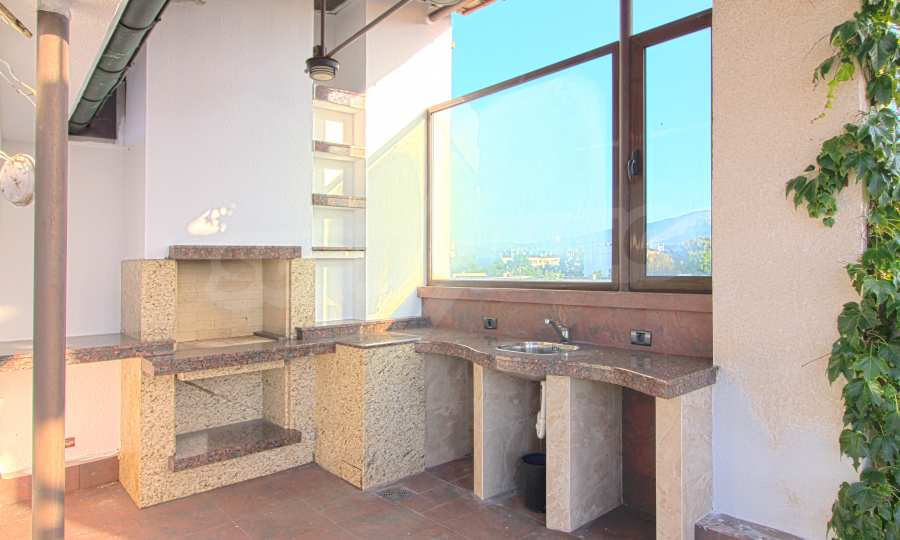 The top floor of the trizone is the roof terrace with incredible views of Vitosha Mountain and the city. The terrace also has a summer kitchen with an oven.