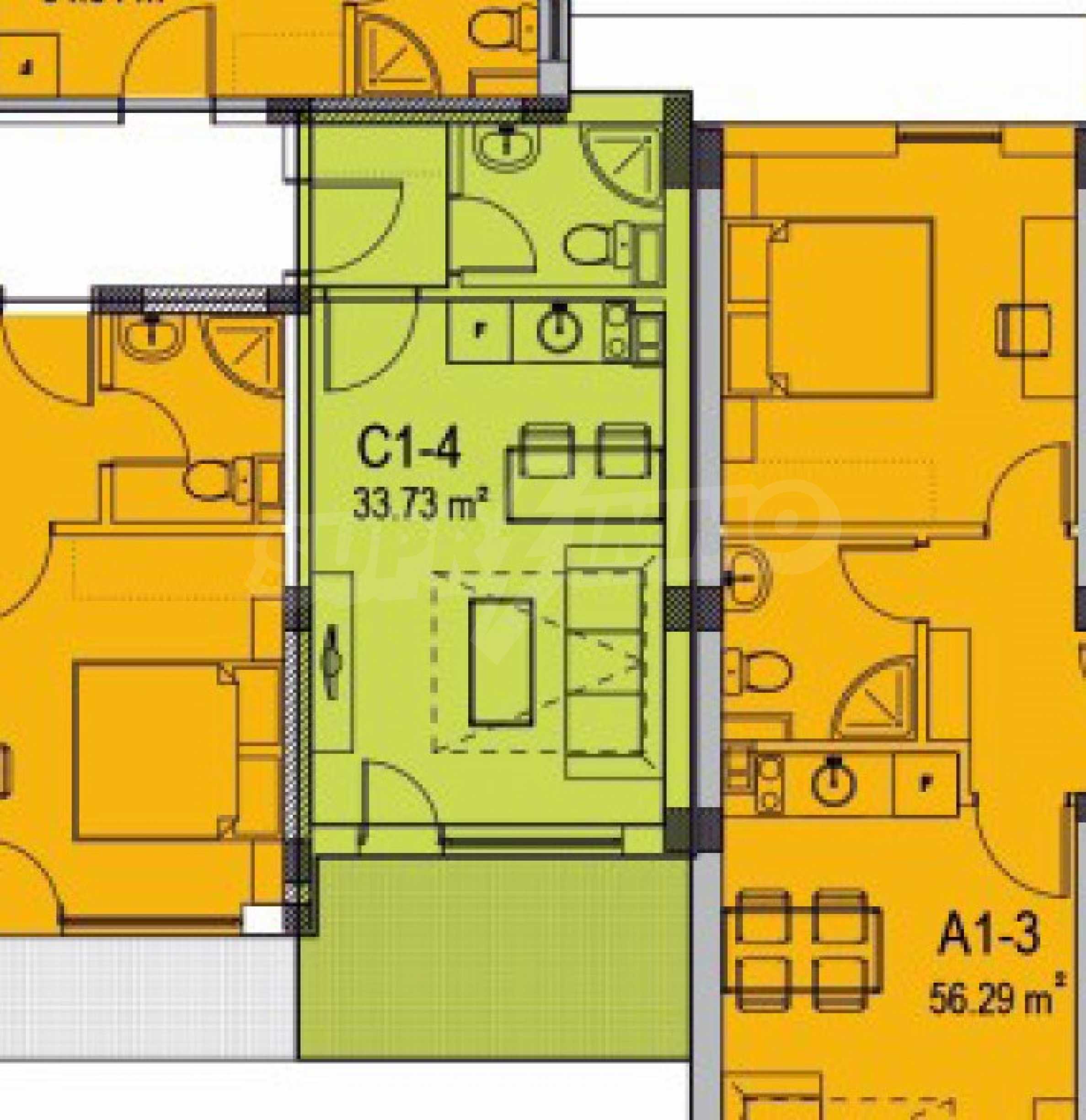 We present studio # C1.4 in a new complex in Sunny Beach with the expected Act 16 - May 2021.