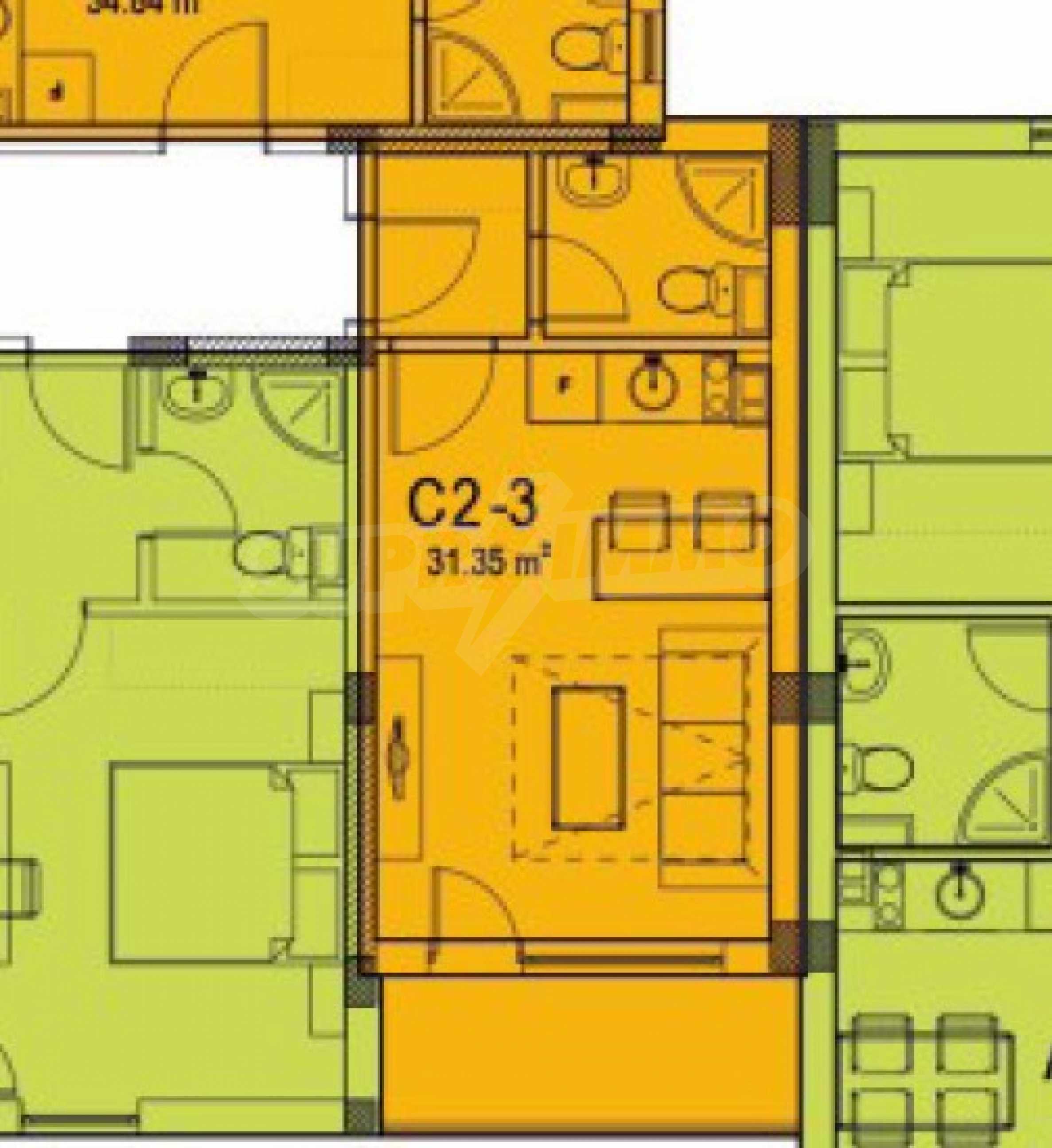 We present studio # C2.3 in a new complex in Sunny Beach with the expected Act 16 - May 2021.