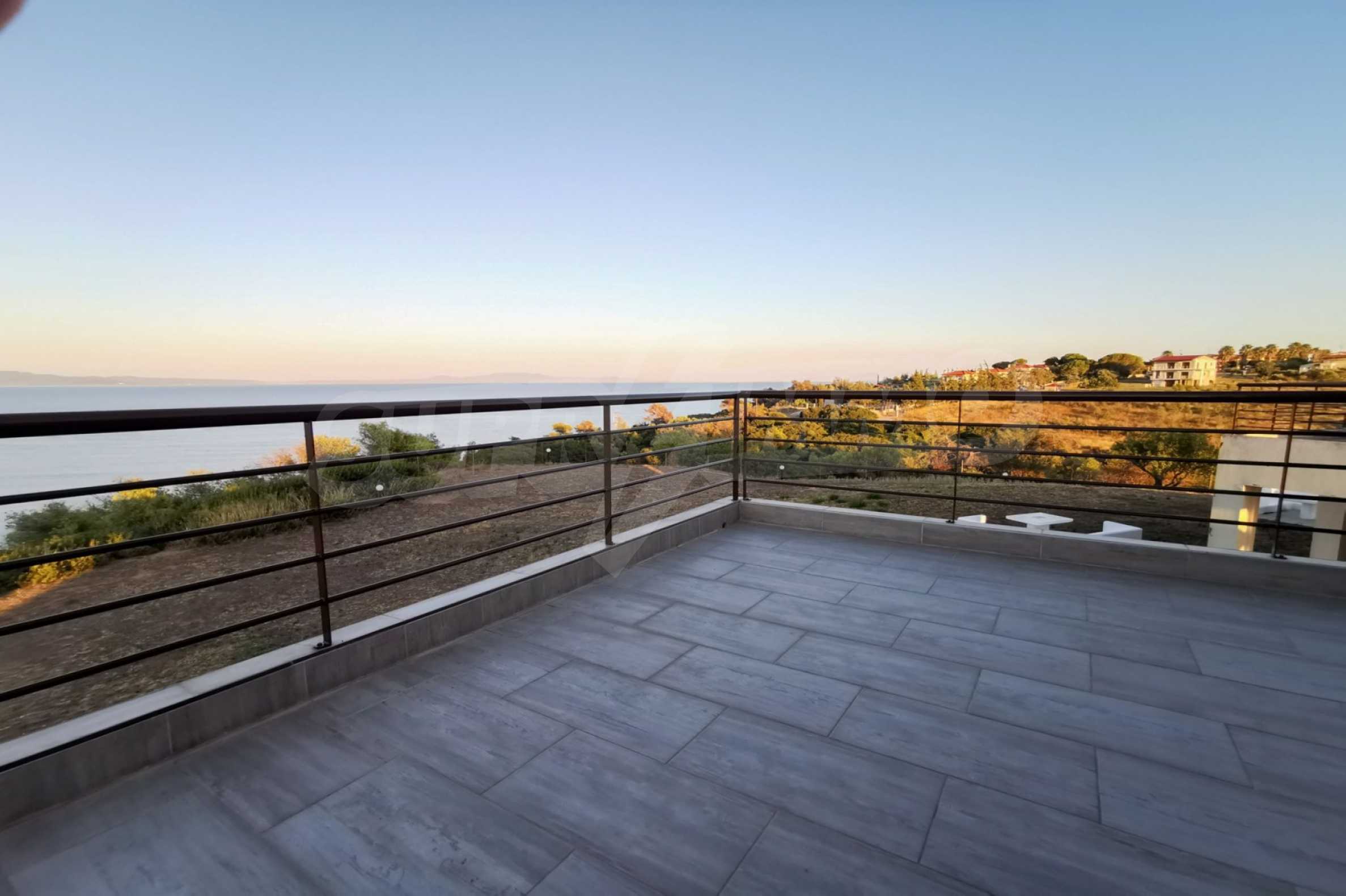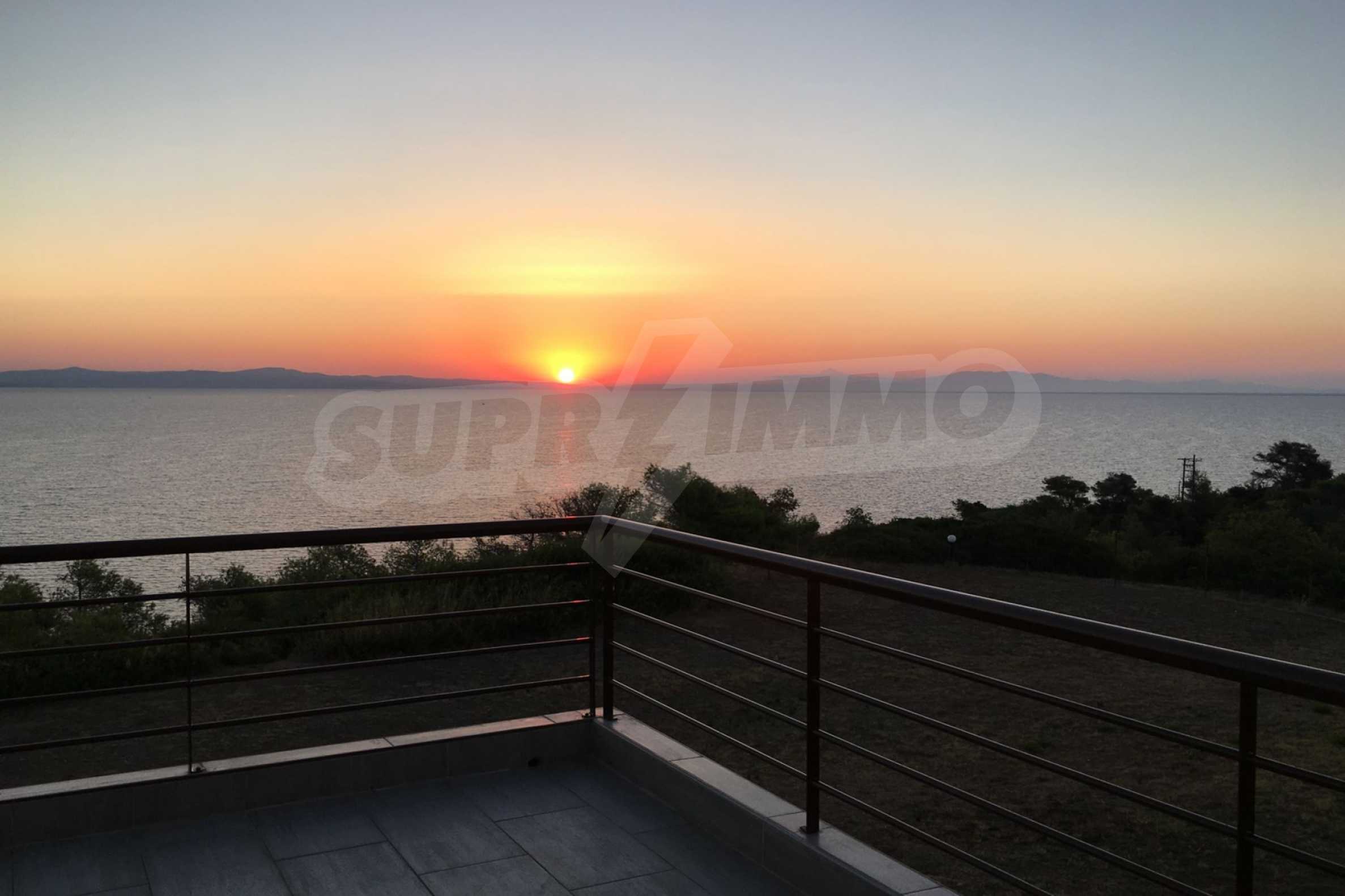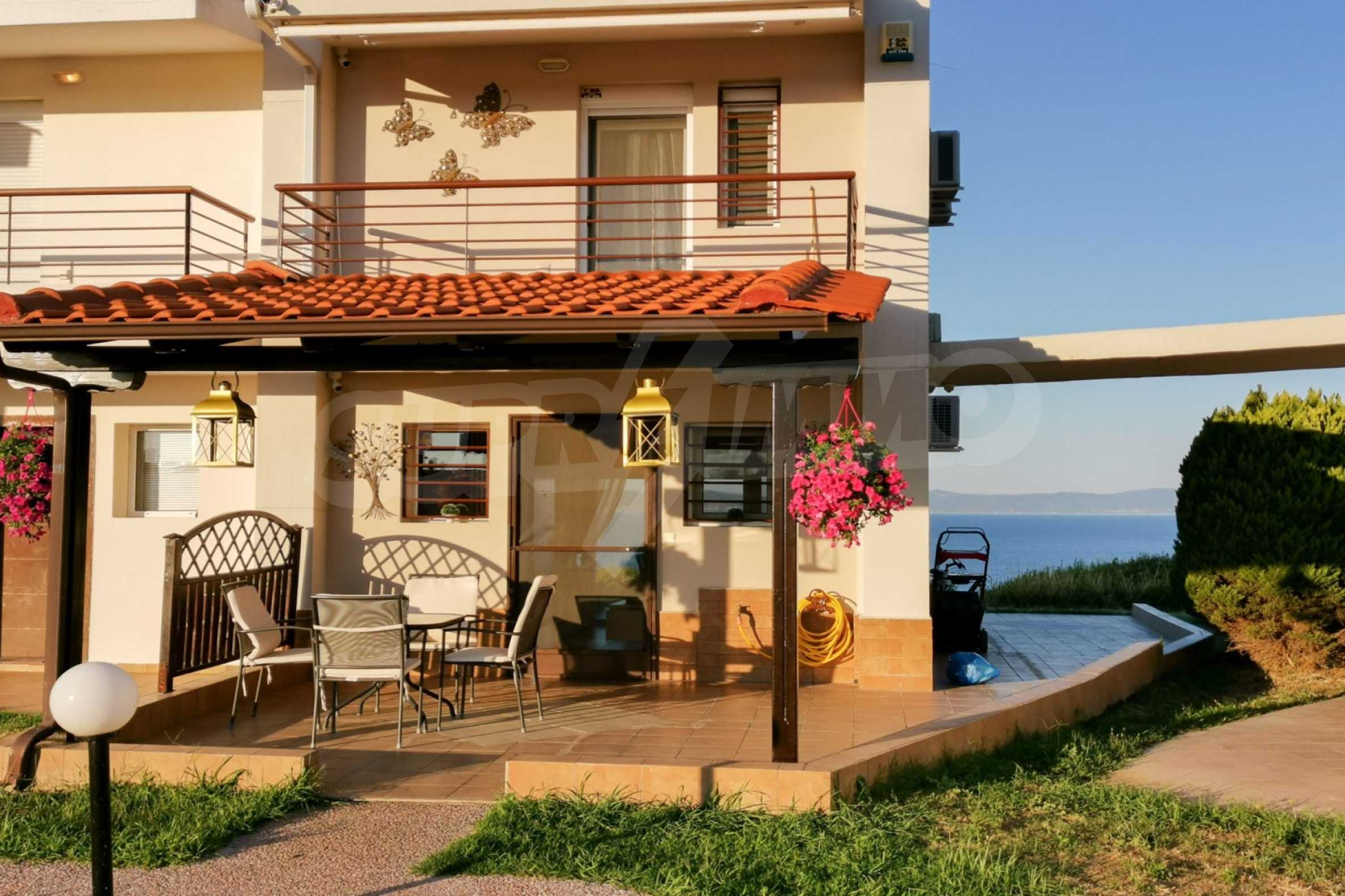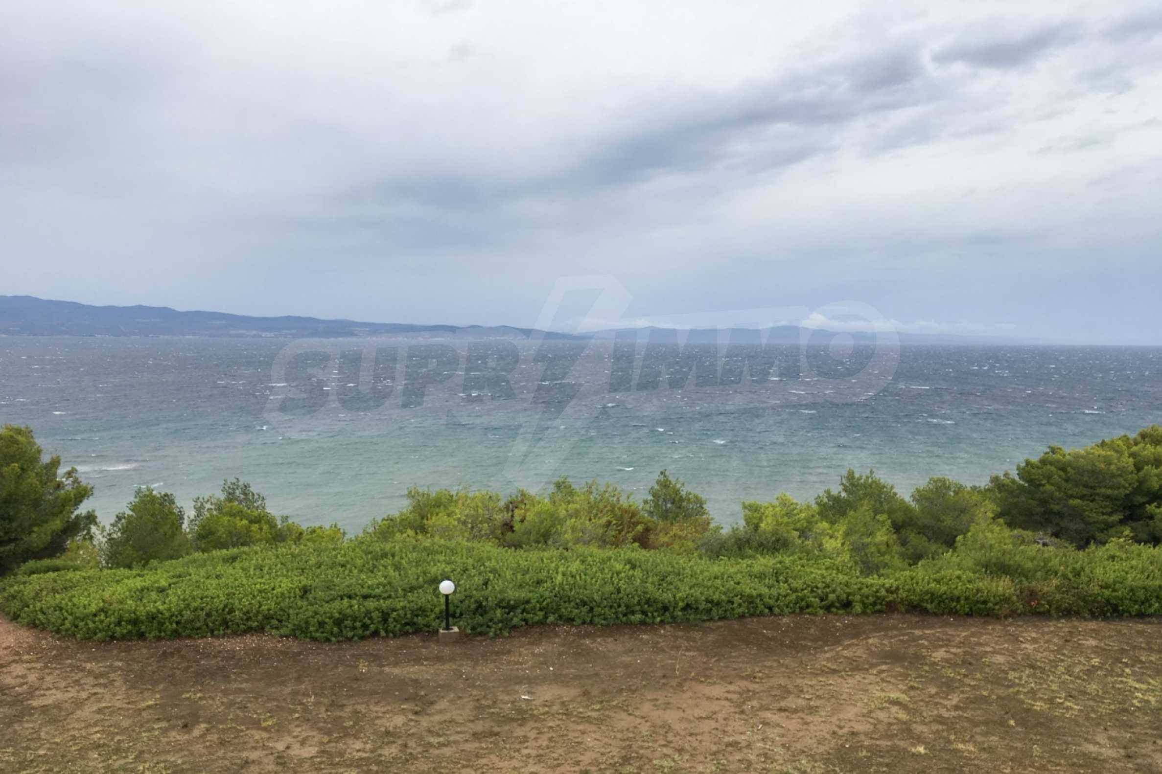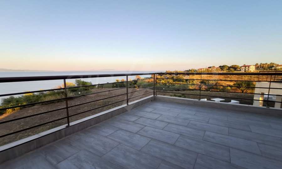 Maisonette, 90 m², first on the sea, built on a hill, with a magical view of Toronaios bay and with an eastern orientation. The property has easy access to the beach and it is 1.500 meters away from the village center. The maisonette is located in a complex of six houses, on a 12 acres plot with a shared pool. It is consisted of a living room connected with the kitchen, three bedrooms, two bathrooms and two storage rooms. It has a large balcony, aluminum joinery, tile floors, security door, alarm system and a shared kiosk.