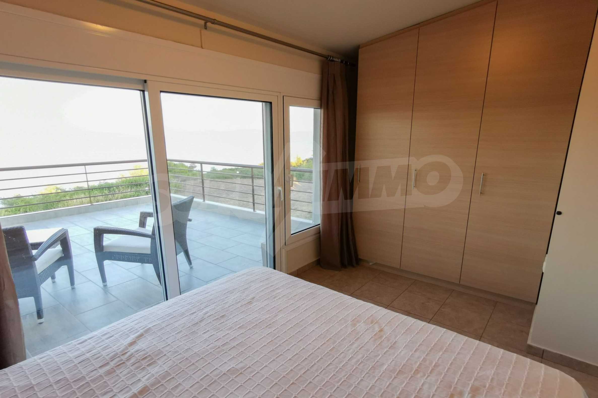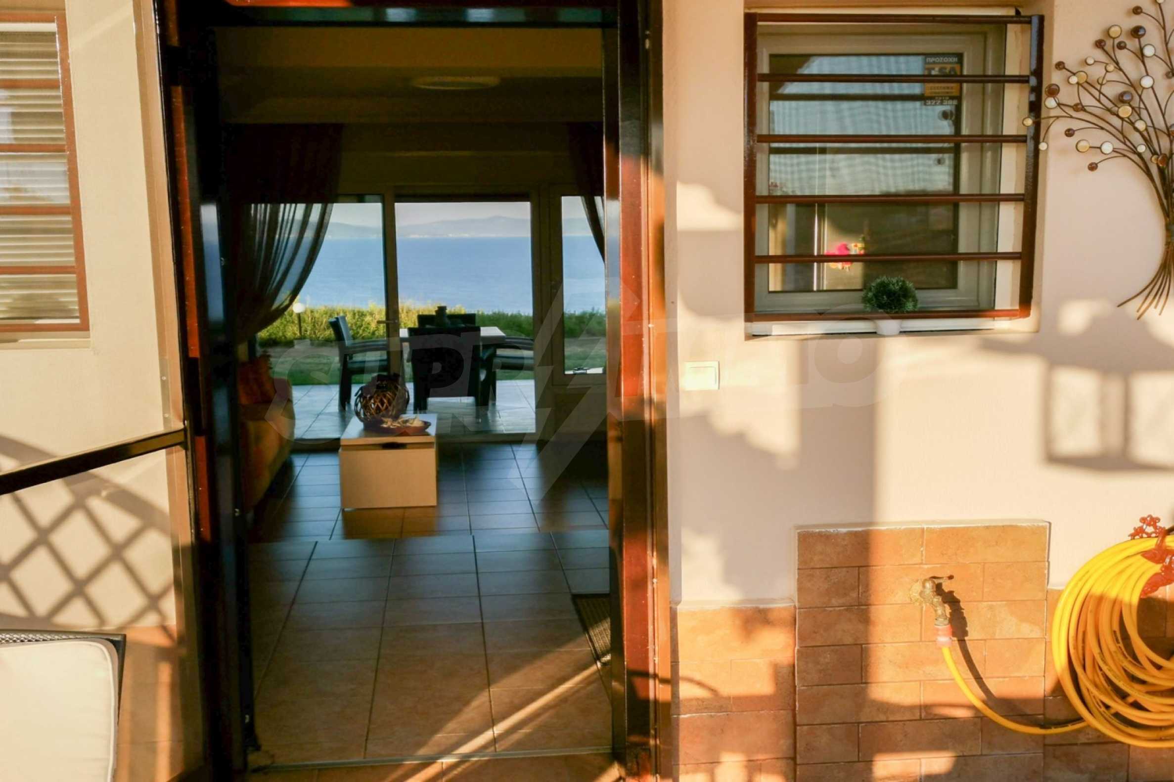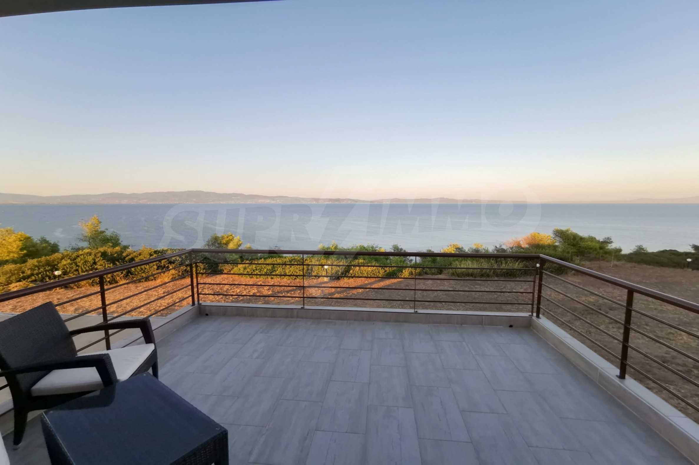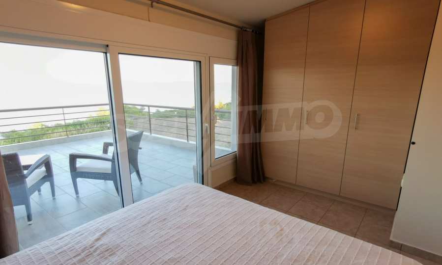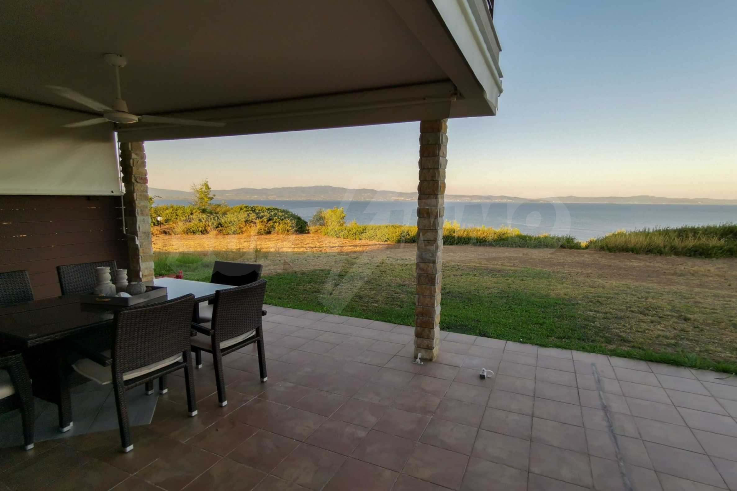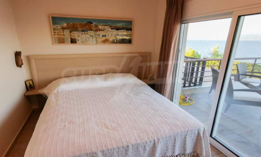 Maisonette, 90 m², first on the sea, built on a hill, with a magical view of Toronaios bay and with an eastern orientation. The property has easy access to the beach and it is 1.500 meters away from the village center. The maisonette is located in a complex of six houses, on a 12 acres plot with a shared pool. It is consisted of a living room connected with the kitchen, three bedrooms, two bathrooms and two storage rooms. It has a large balcony, aluminum joinery, tile floors, security door, alarm system and a shared kiosk.