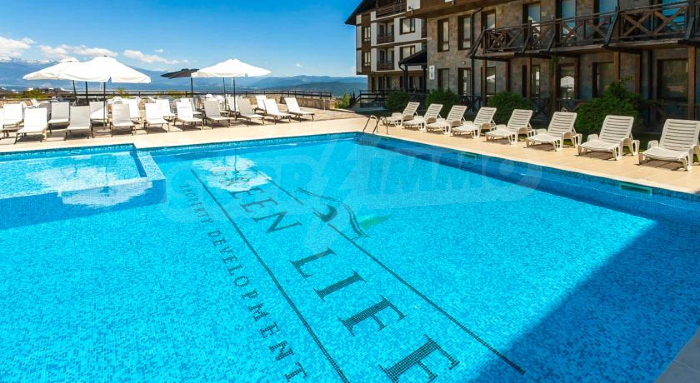 Two-bedroom apartment in a gated complex "Green Life Ski & SPA Resort" Bansko, built in a picturesque nature on the border of Pirin Park, along the ski road from the ski area and near the starting station of the gondola lift in the popular mountain resort Bansko.