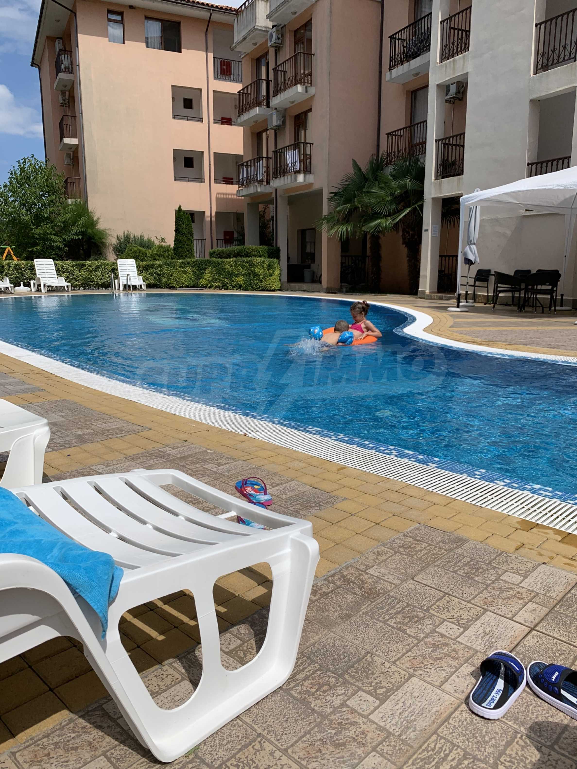 The fully furnished one-bedroom apartment with a total area of 81 m2, which we present for sale, is part of the popular complex with pool and amenities in the town of Primorsko.