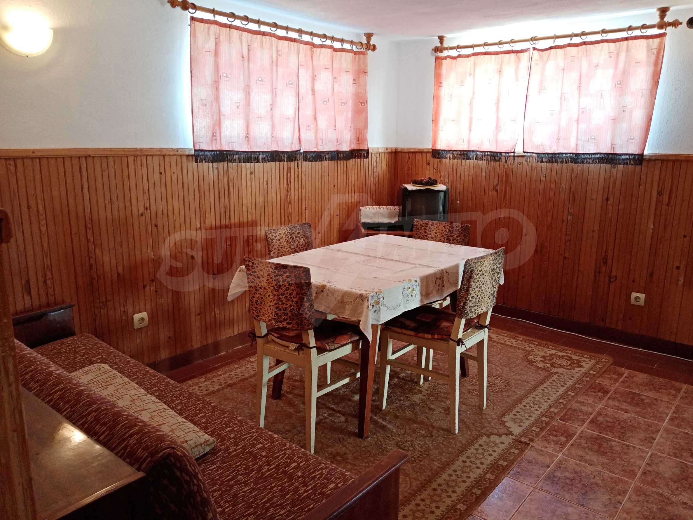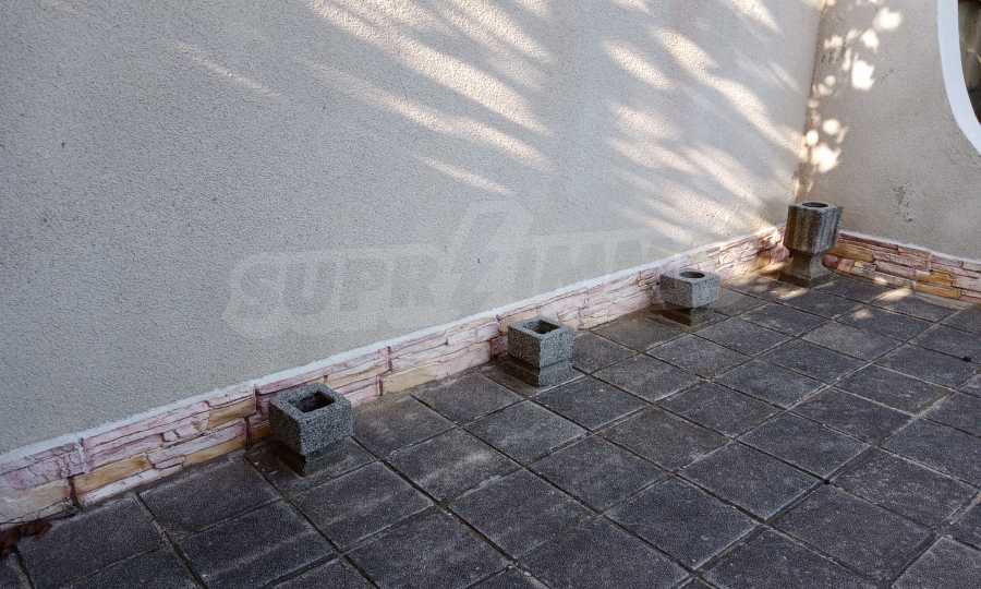 The house has two entrances, which makes it suitable for one family or two. There is an open parking space in the yard, which can be separated for two cars, as well as to close and make a garage. The yard is terraced, with beautifully molded steps. There is outdoor lighting installed. The septic tank is built in such a way that it is cleaned every 10 years. The house has an alarm system installed.