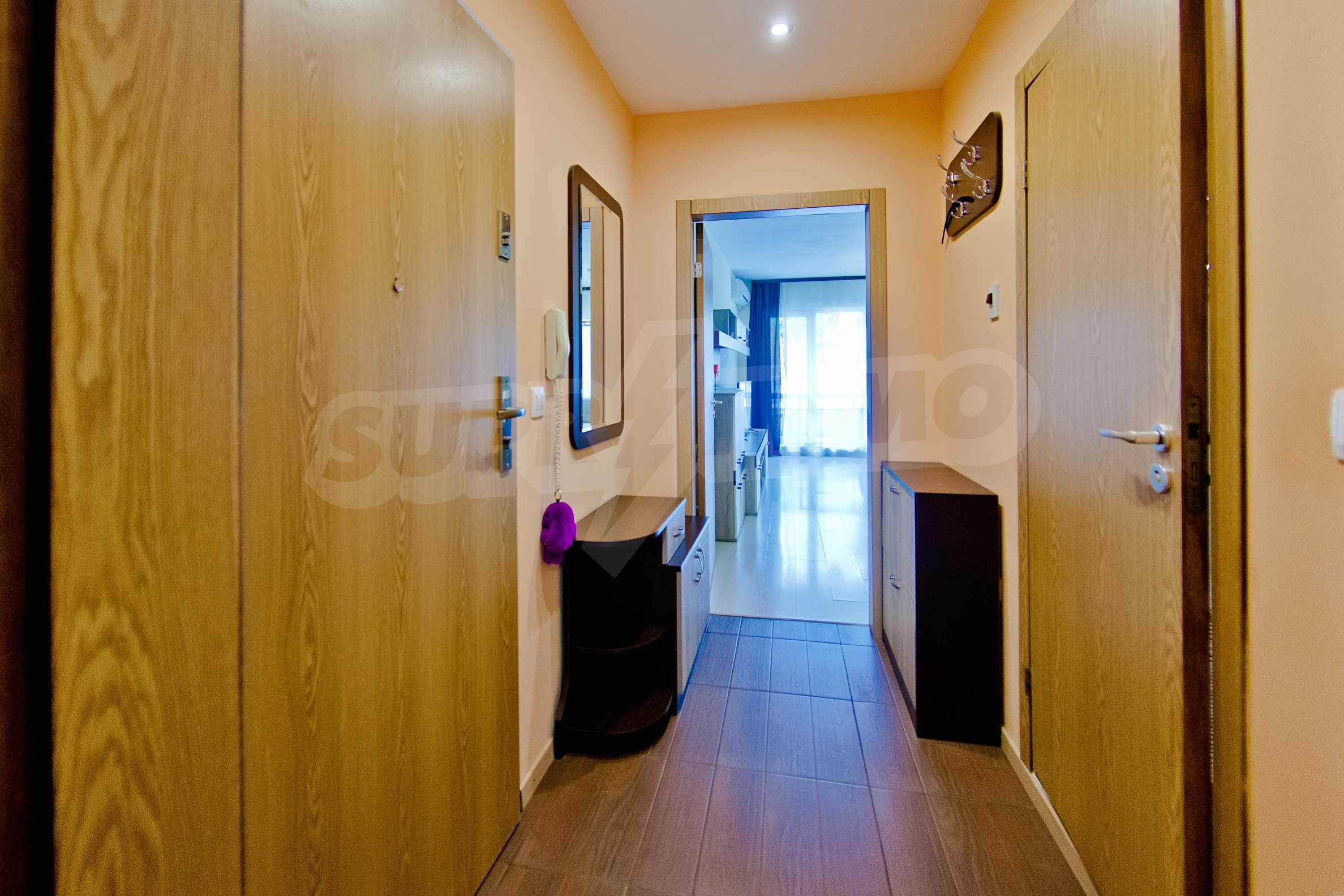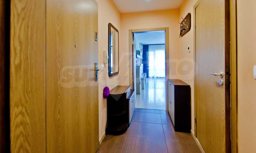 The apartment is fully furnished and equipped with all amenities for permanent living. It consists of an entrance hall, a bedroom with a wardrobe, a bathroom with a toilet, a living room with a kitchen and a terrace. The apartment is heated by air conditioners and has extremely low heating costs.