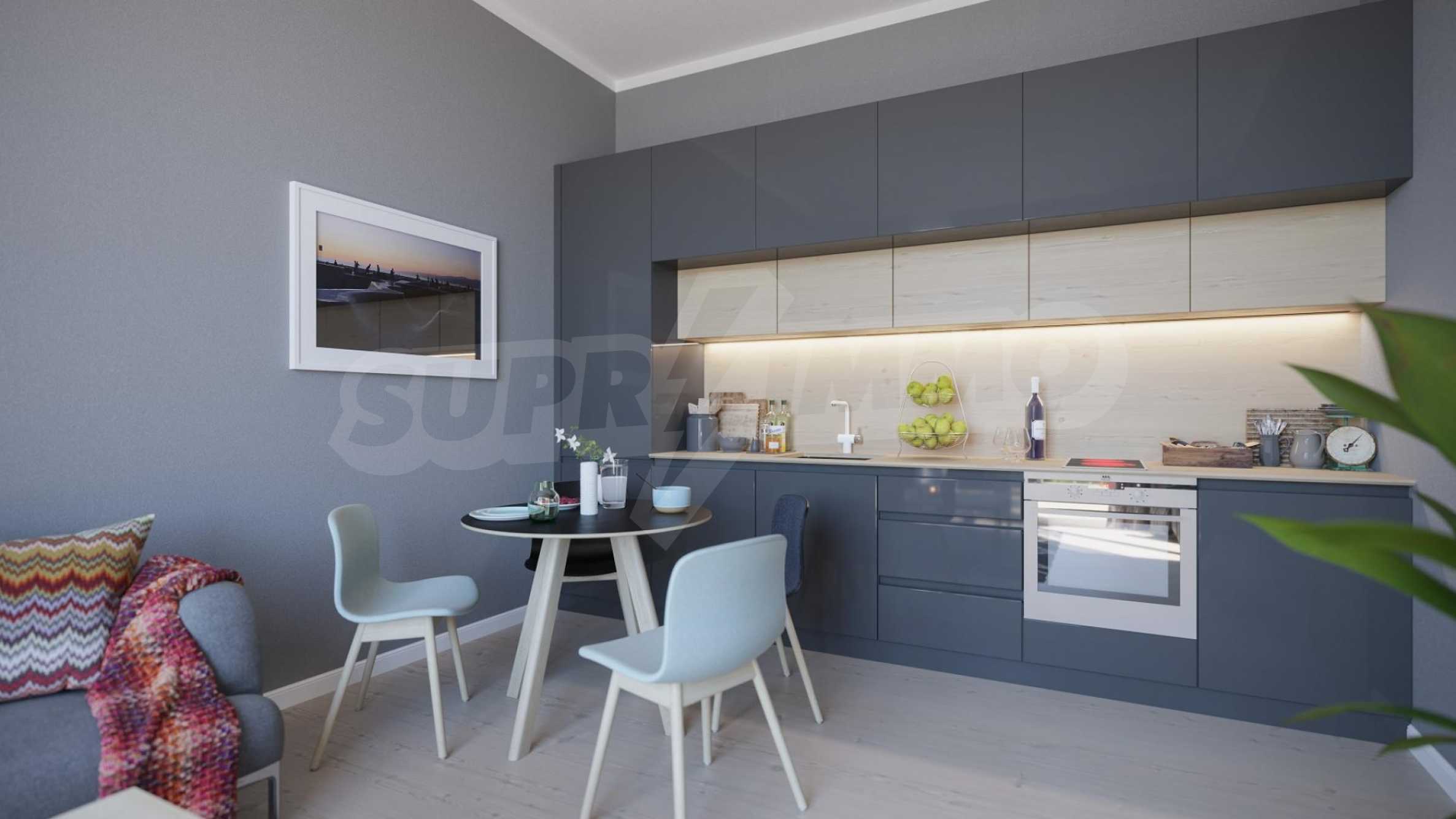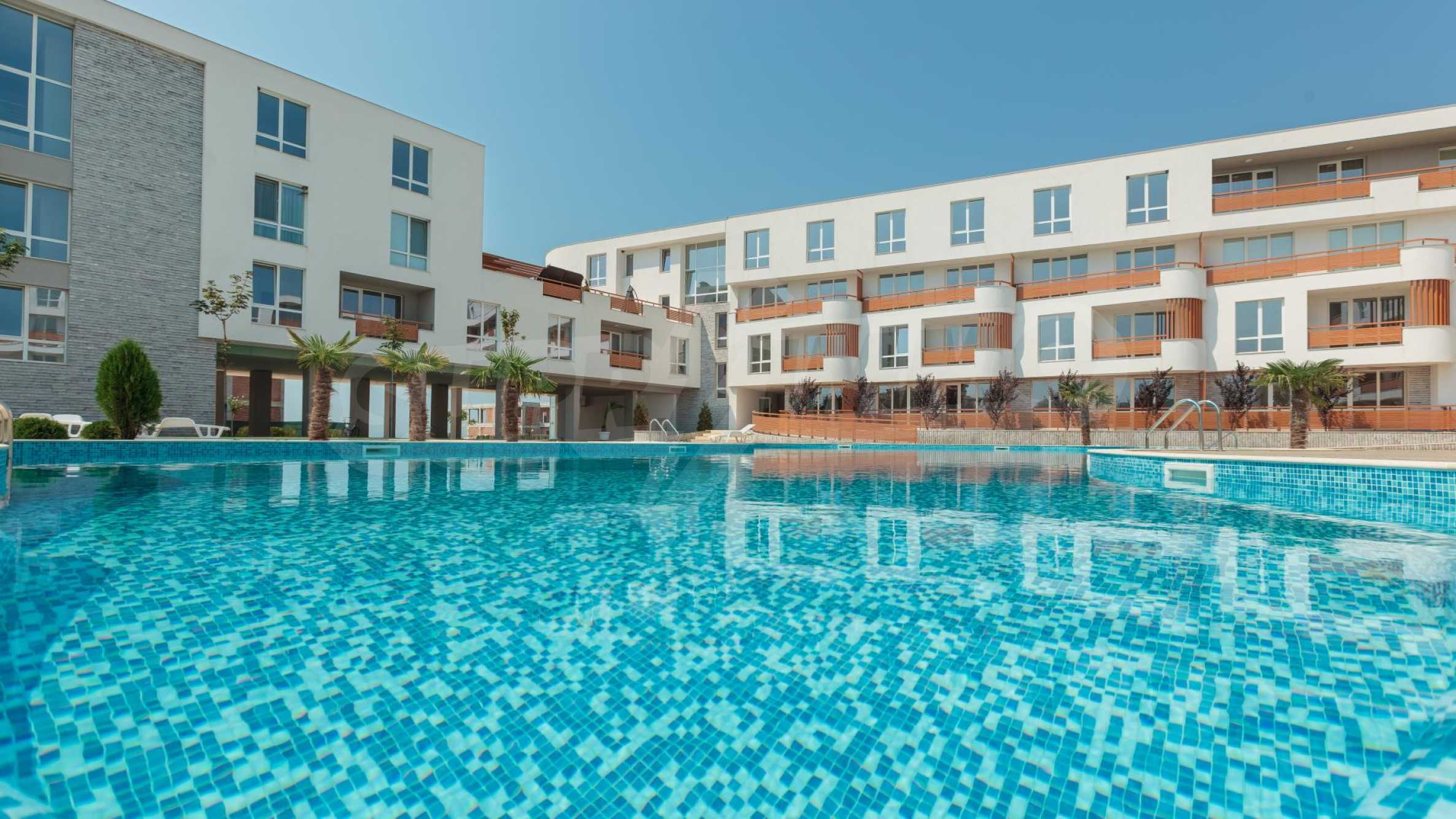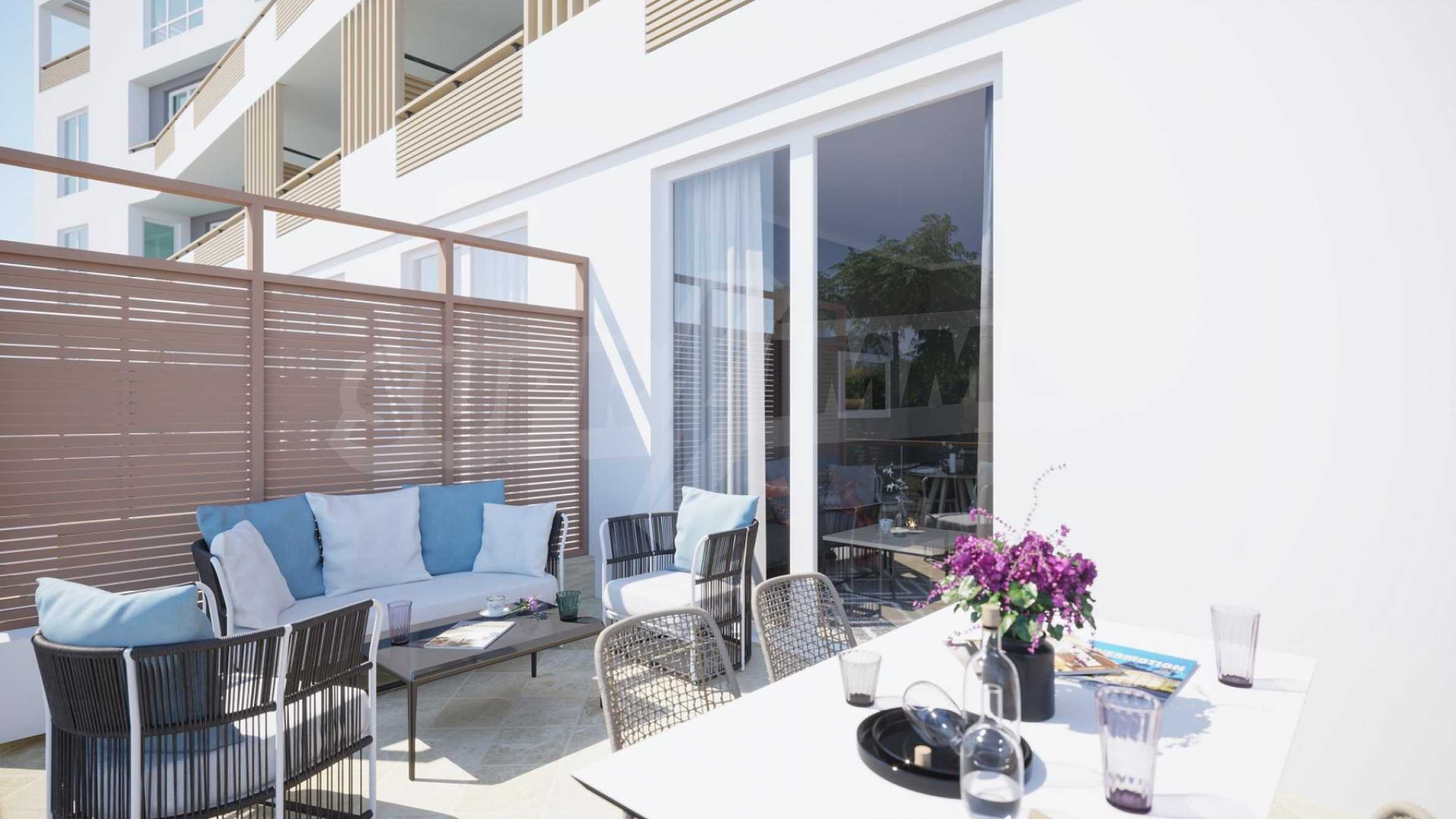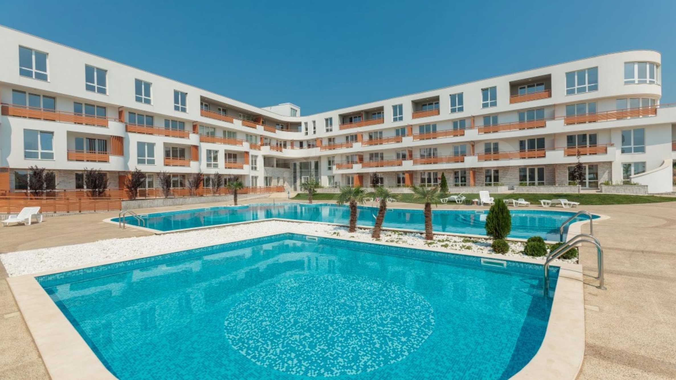 The apartment we present to you has a total area of 108.70 m2 and is located on the first floor of a newly built building, part of an elite complex, only 50 meters from the sea.